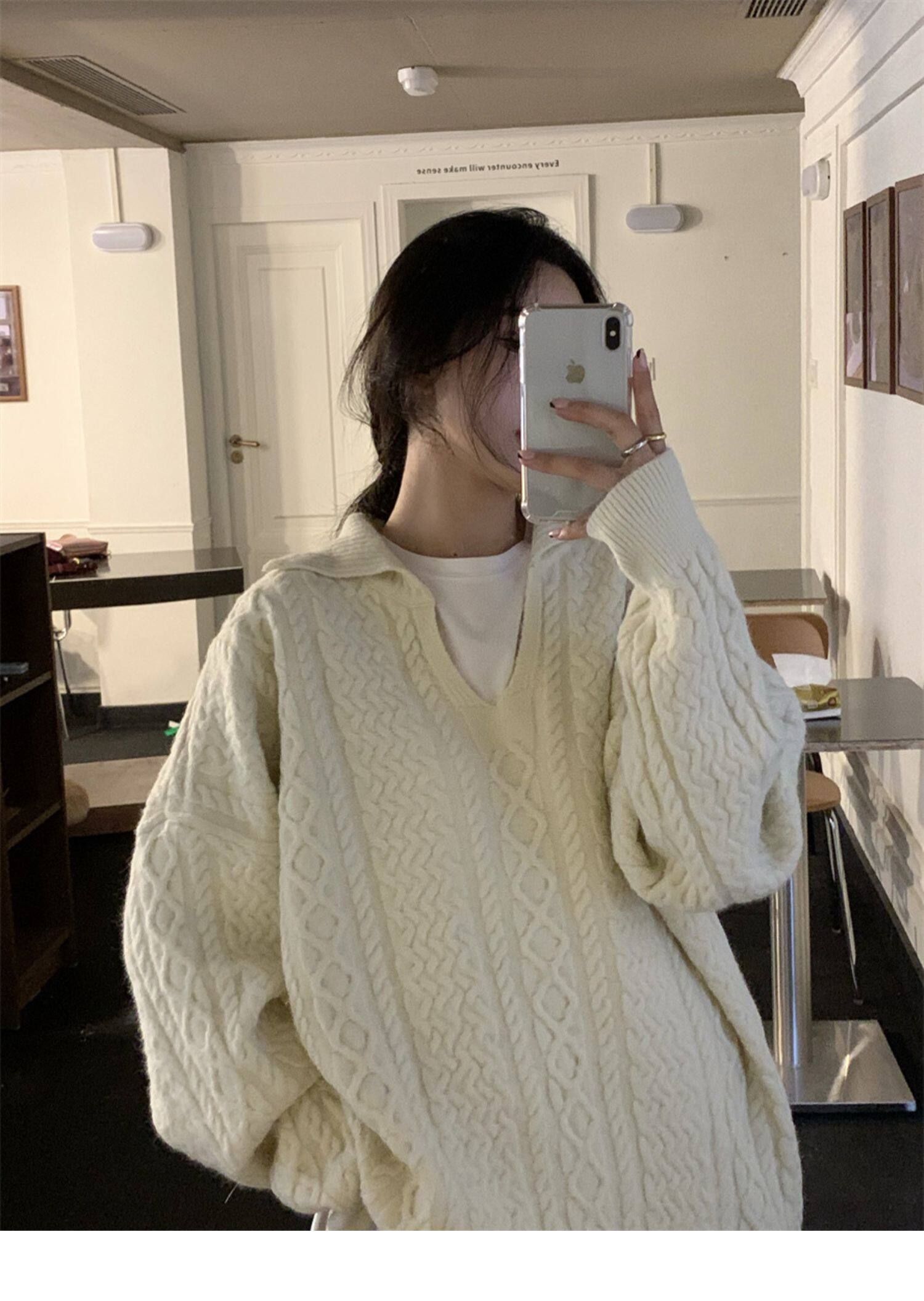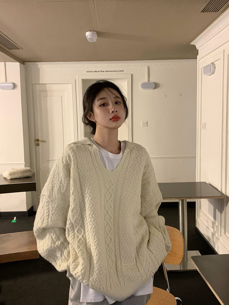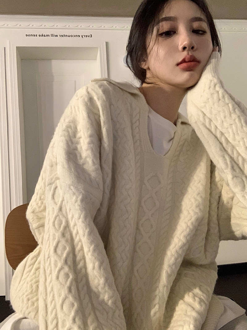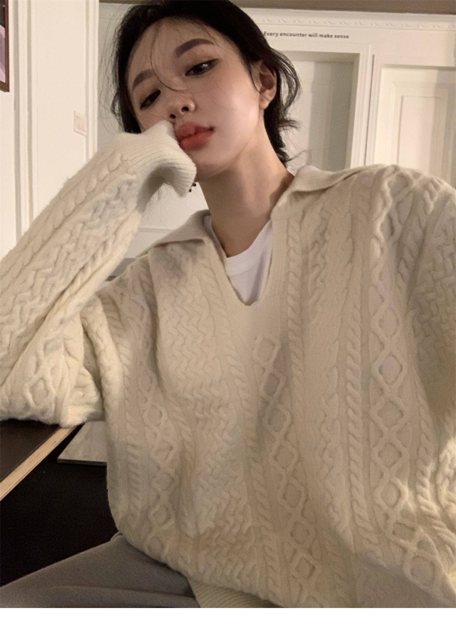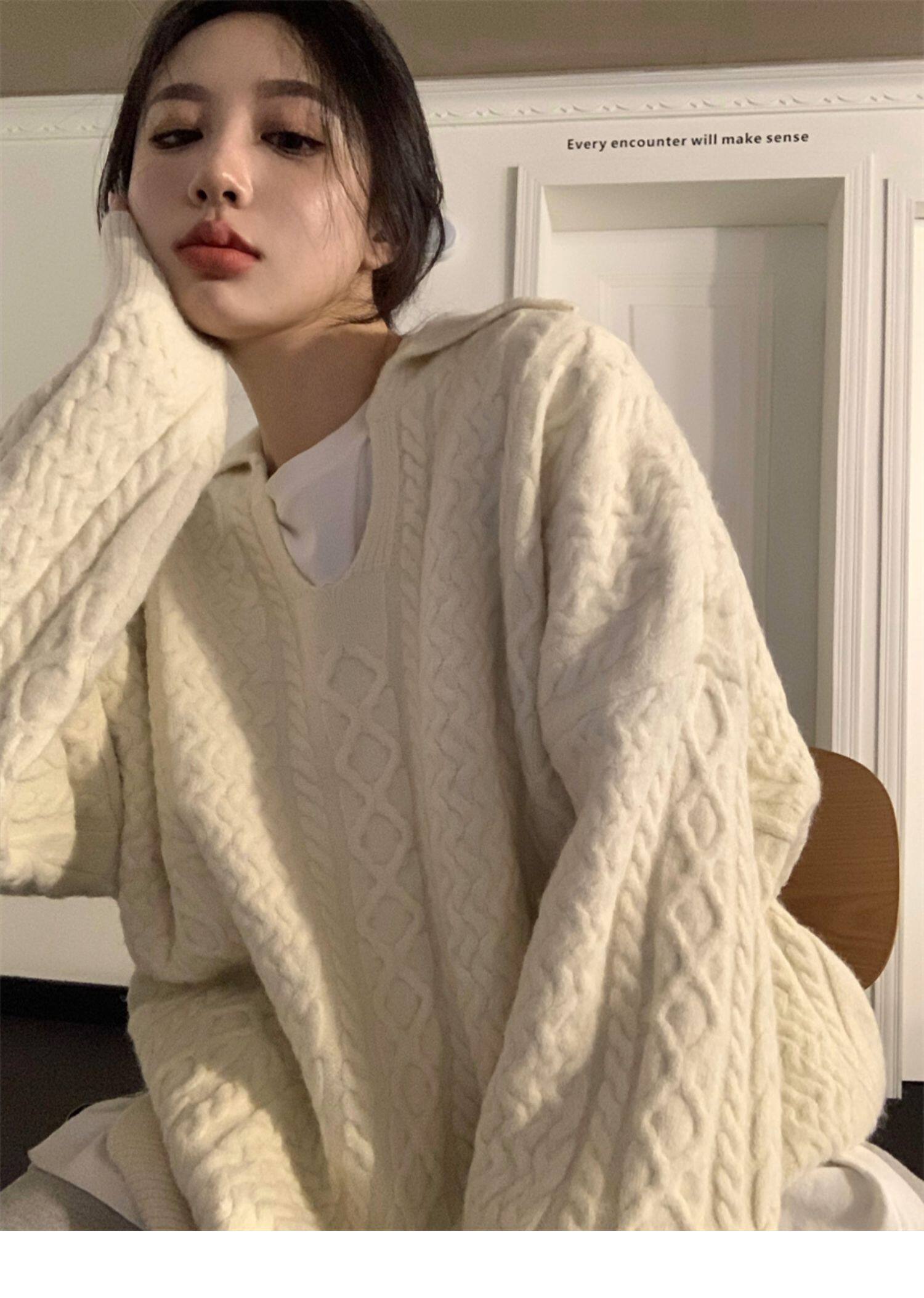 Дизайнерский белый демисезонный трикотажный свитер для отдыха, тренд сезона, в корейском стиле, увеличенная толщина