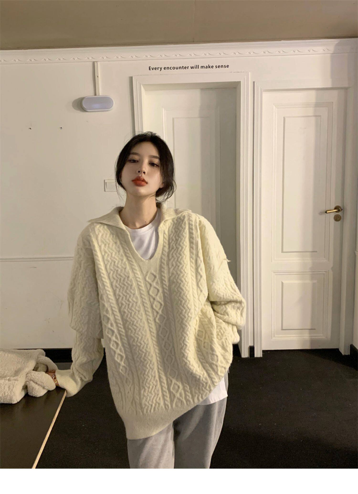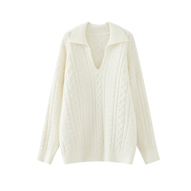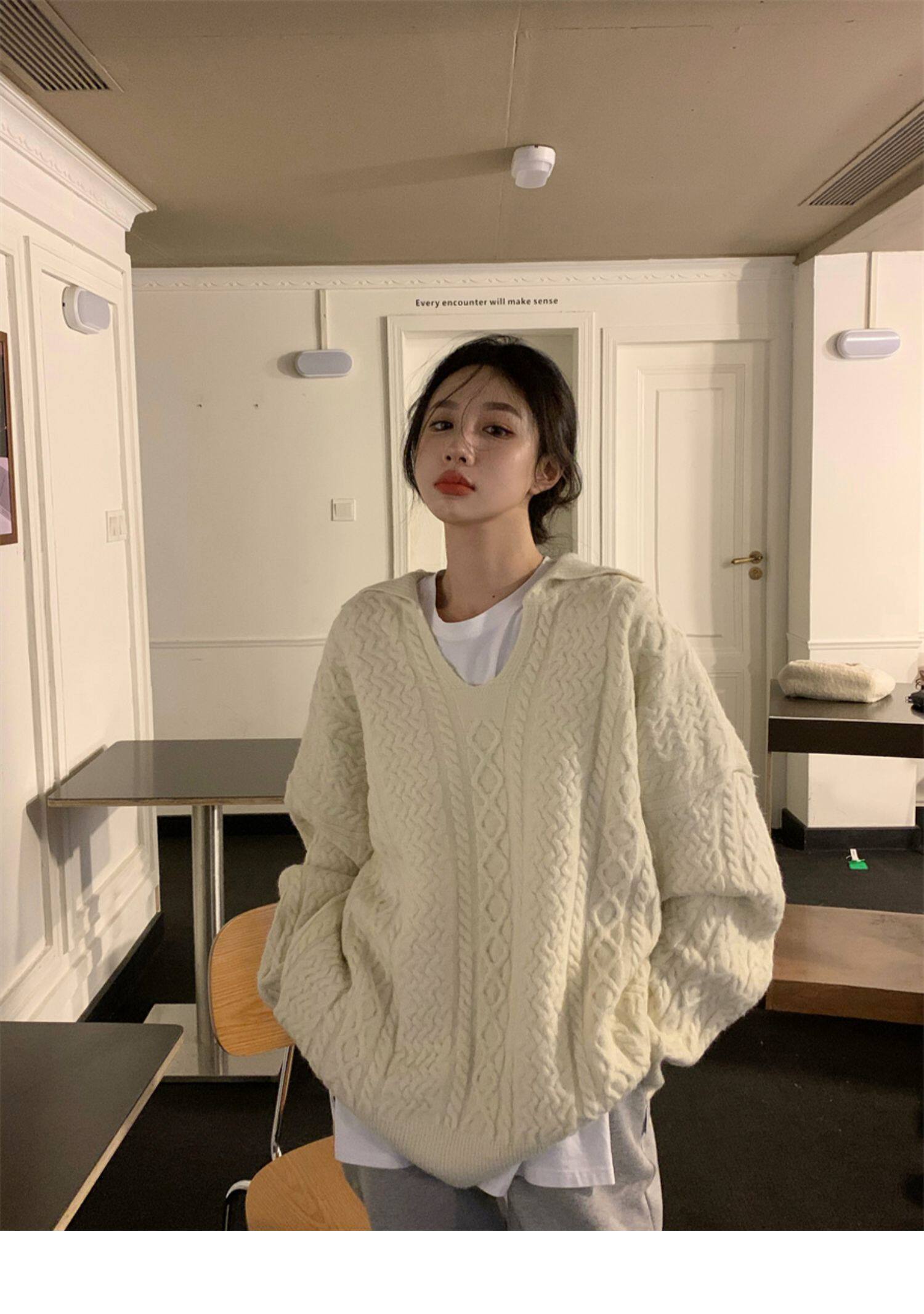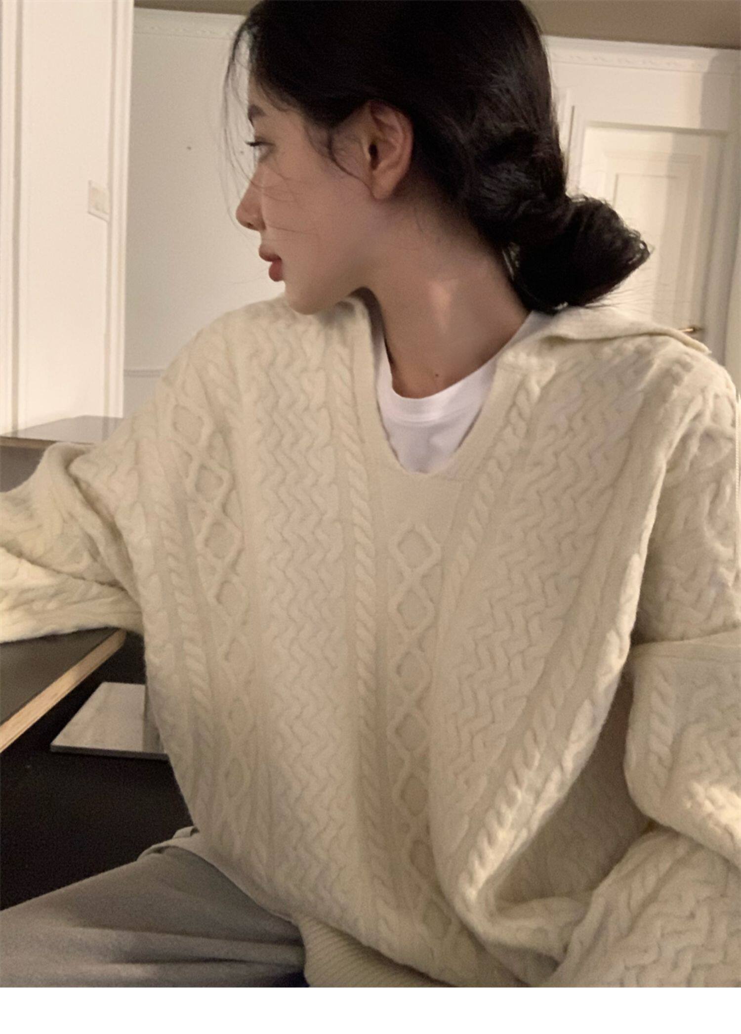 Дизайнерский белый демисезонный трикотажный свитер для отдыха, тренд сезона, в корейском стиле, увеличенная толщина