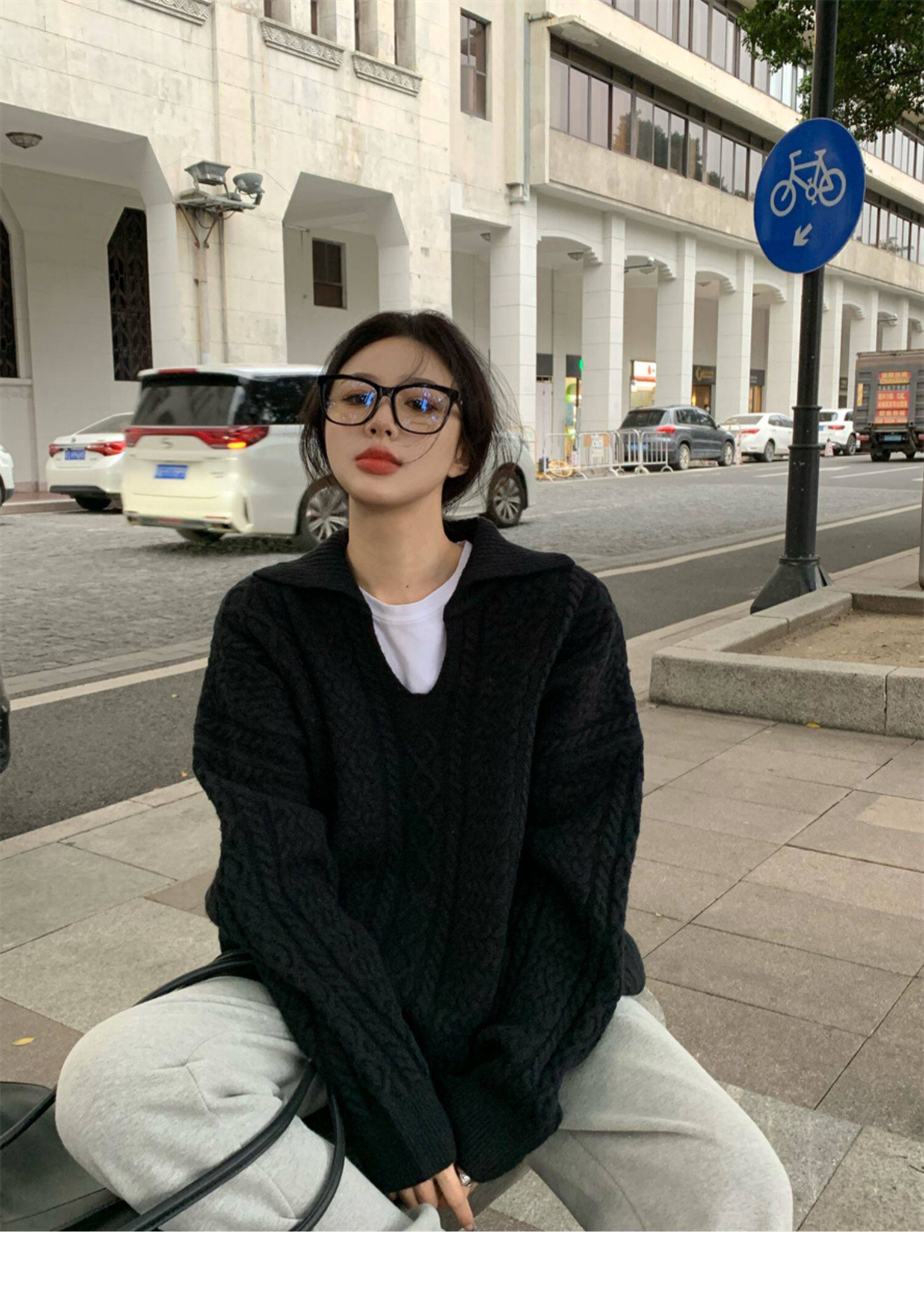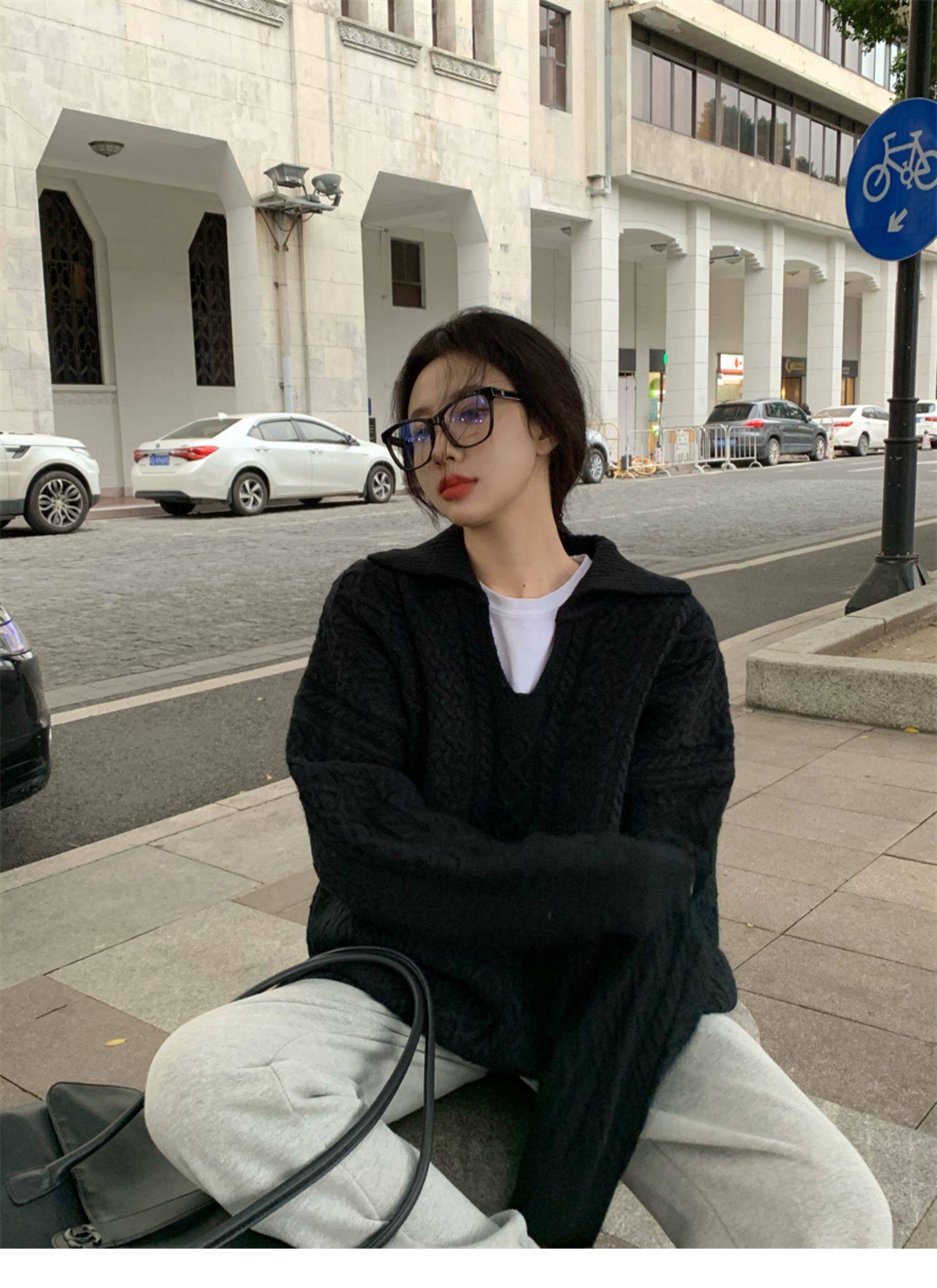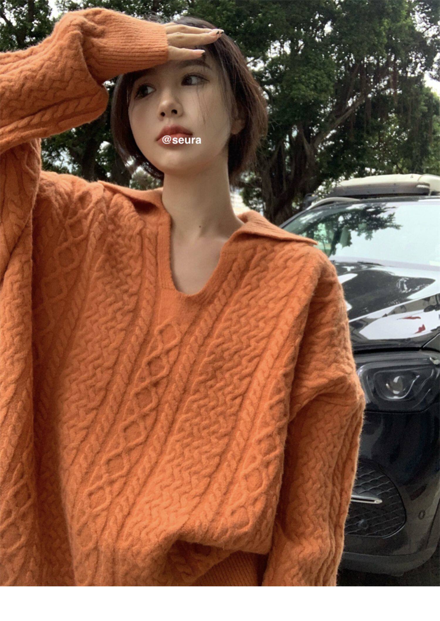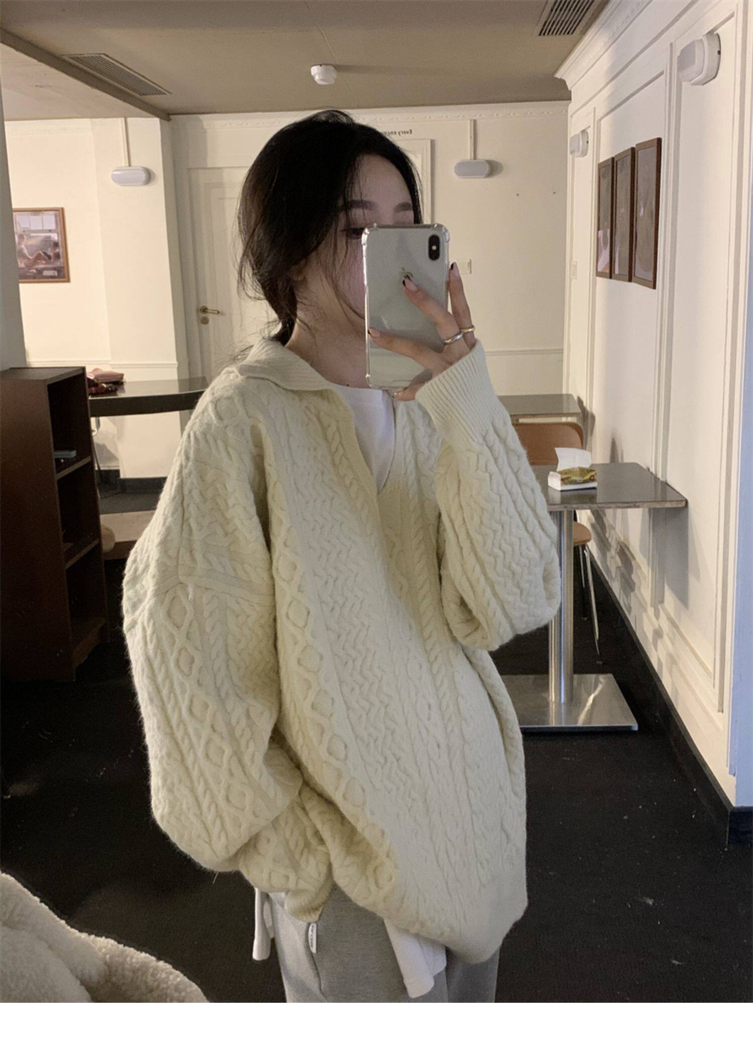 Дизайнерский белый демисезонный трикотажный свитер для отдыха, тренд сезона, в корейском стиле, увеличенная толщина