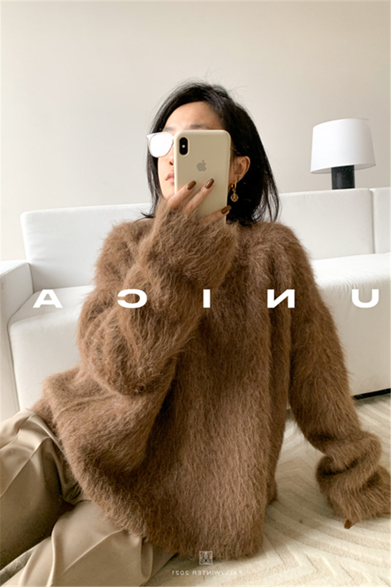 Высококачественный осенне-зимний свободный и ленивый толстый свитер, мягкий и восковой верхний пуловер, стройняющий и шикарный, норковый бархат, который приятно носить на улице.