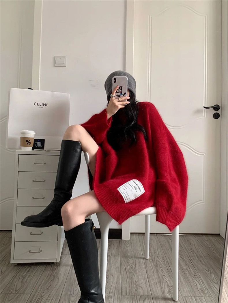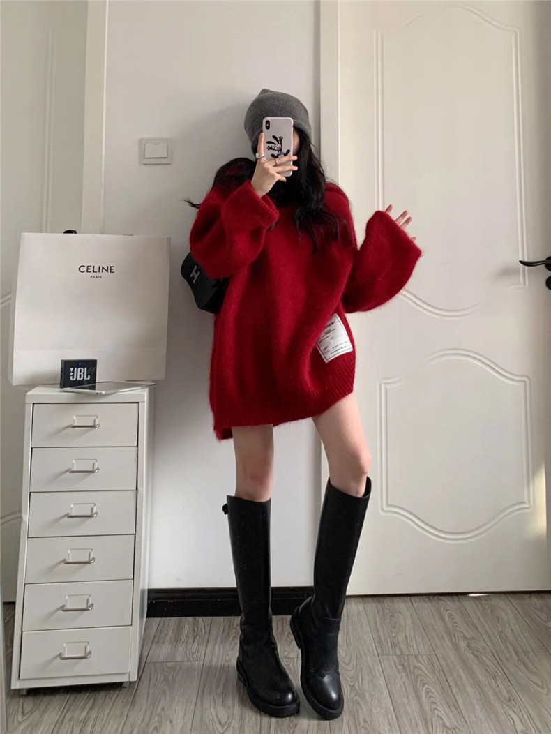 Красный осенний длинный свитер, оберег на день рождения, оверсайз, средней длины