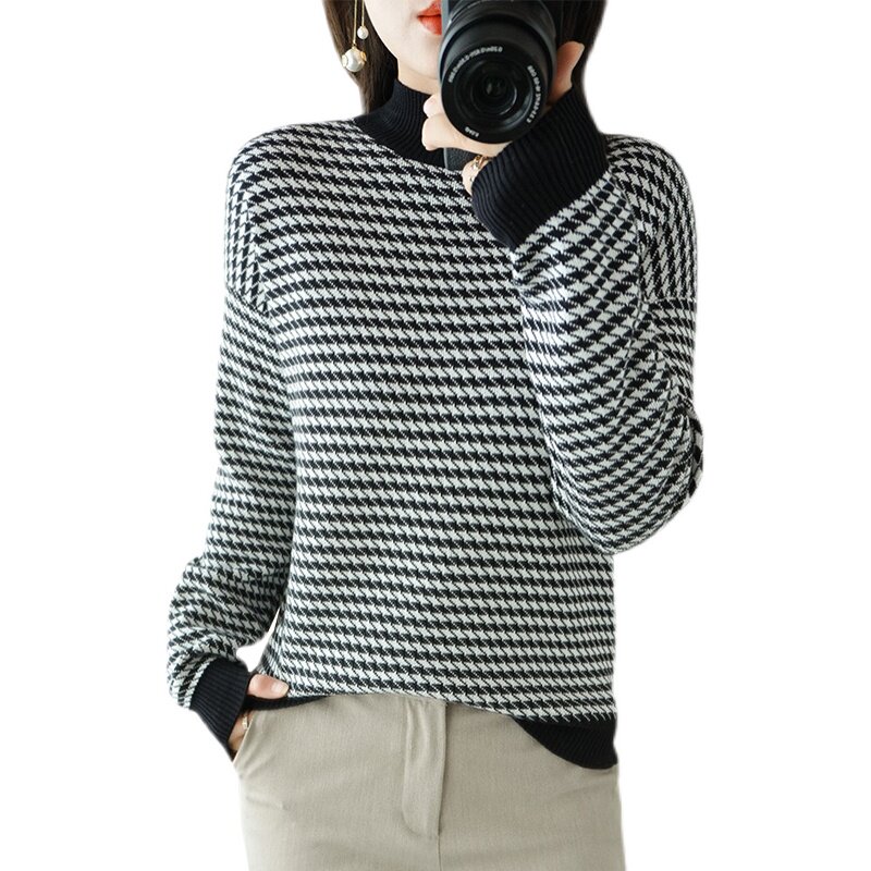 Зимний хлопковый трикотажный модный дизайнерский свитер, 2021 года, 100% хлопок, высокий воротник, увеличенная толщина, тренд сезона