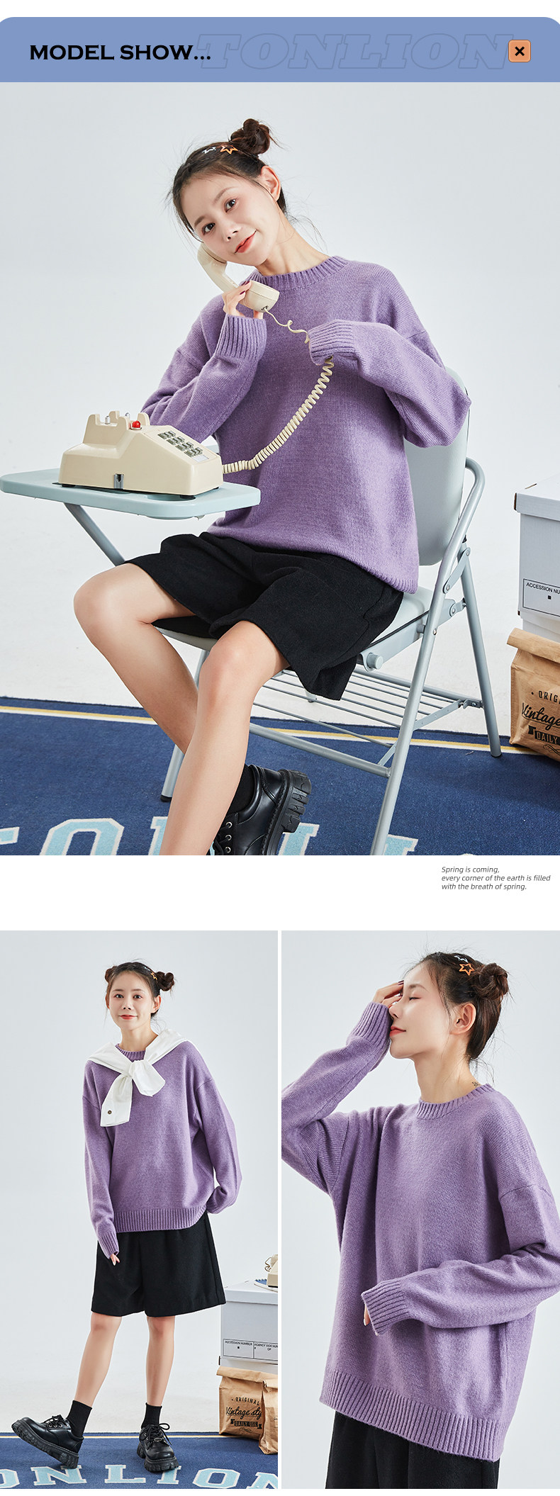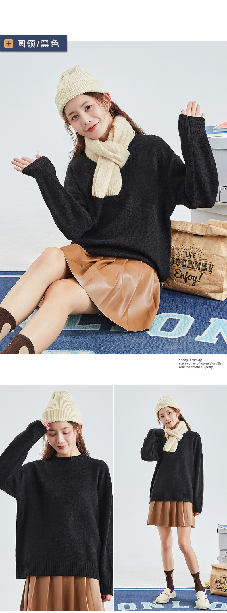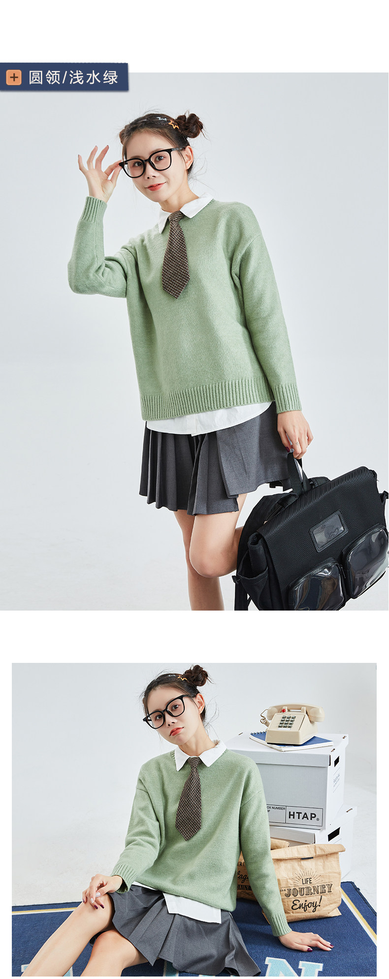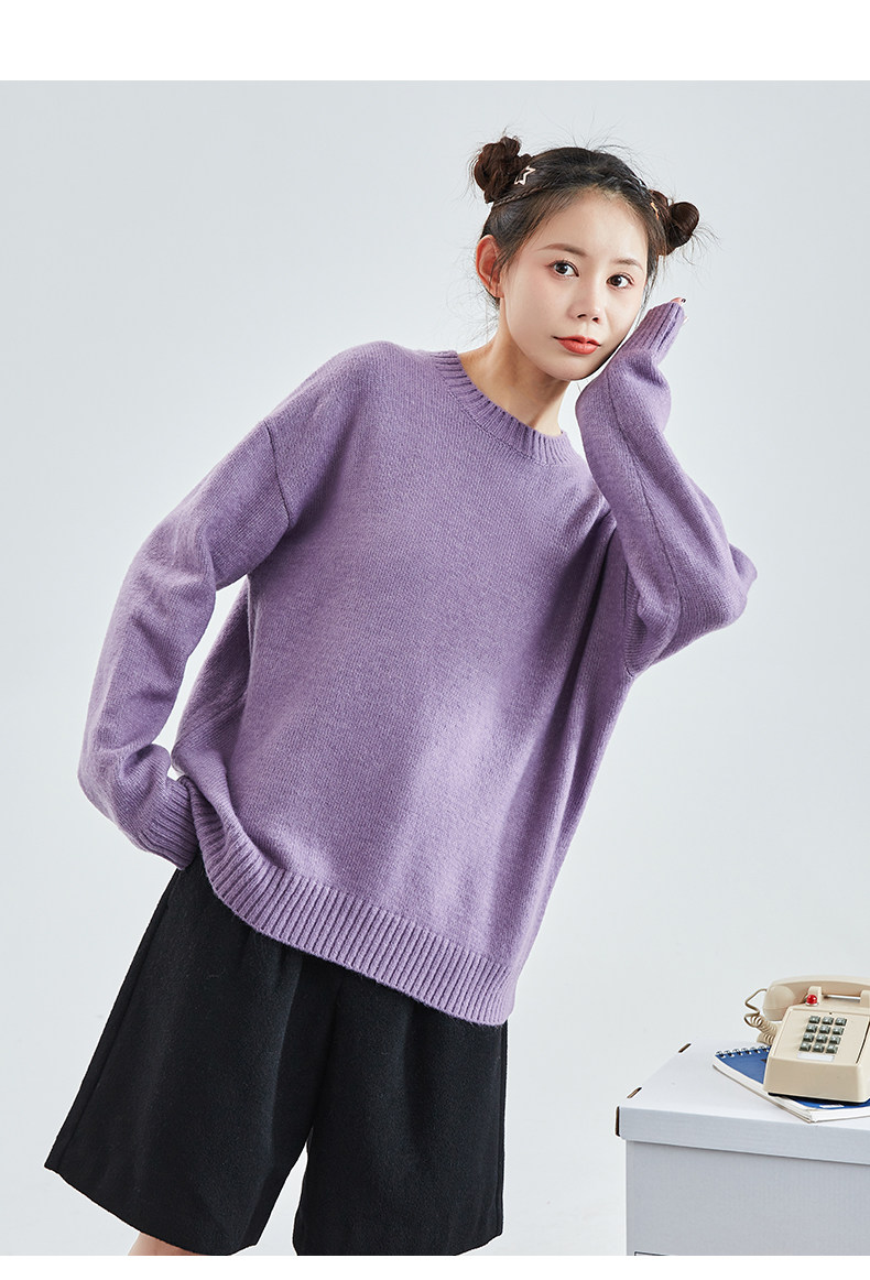 Демисезонный ретро свитер с круглым воротником, трикотажная шерстяная футболка