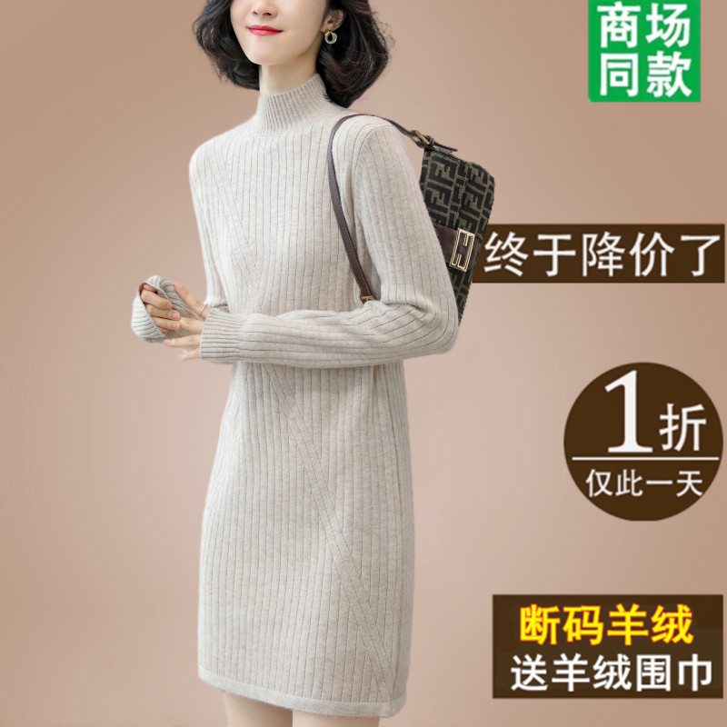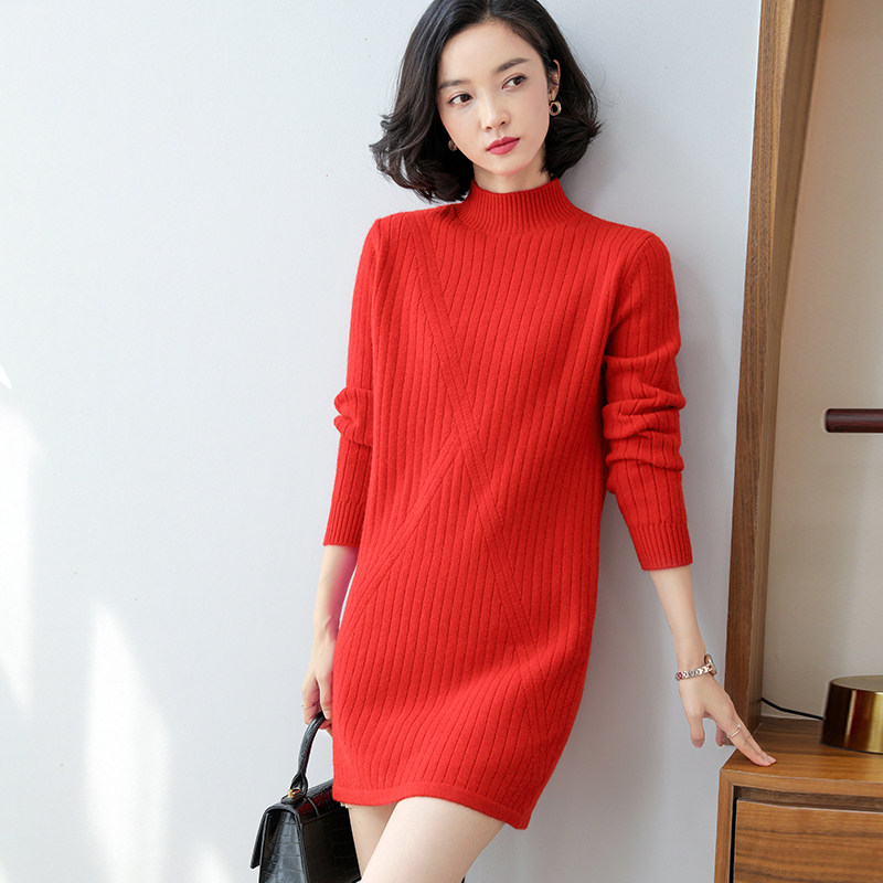 Кашемировое длинное платье, трикотажная юбка, трикотажный шерстяной свитер, средней длины, увеличенная толщина