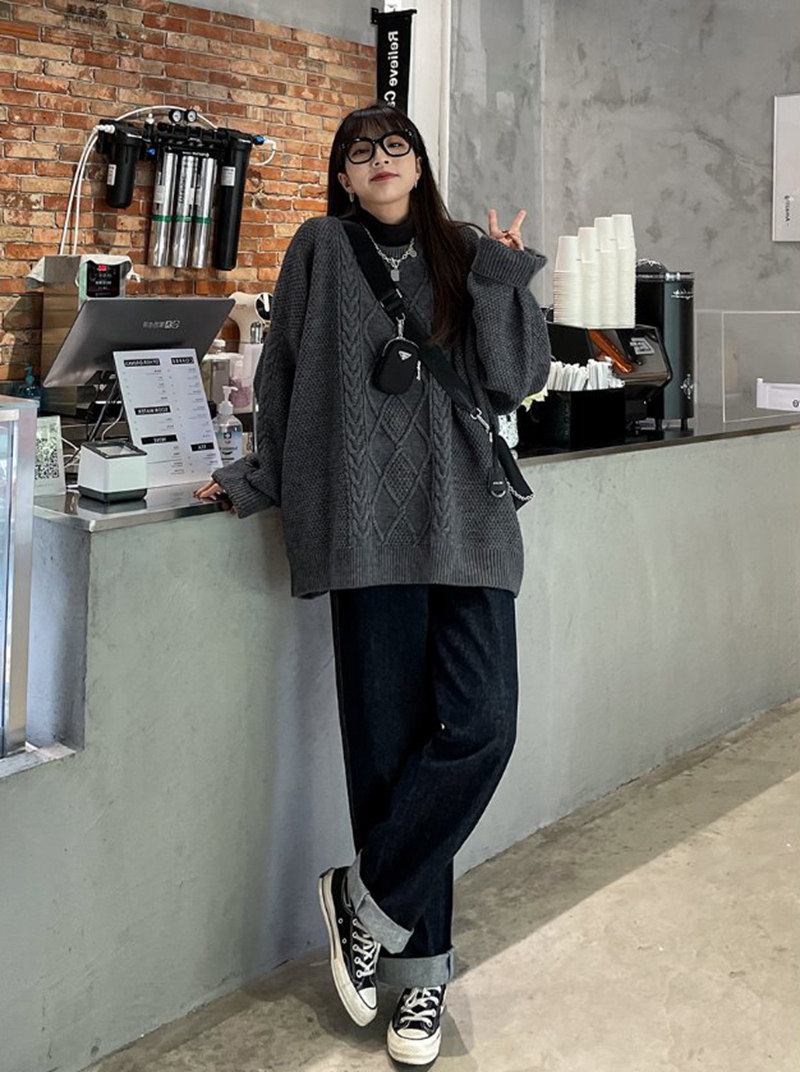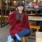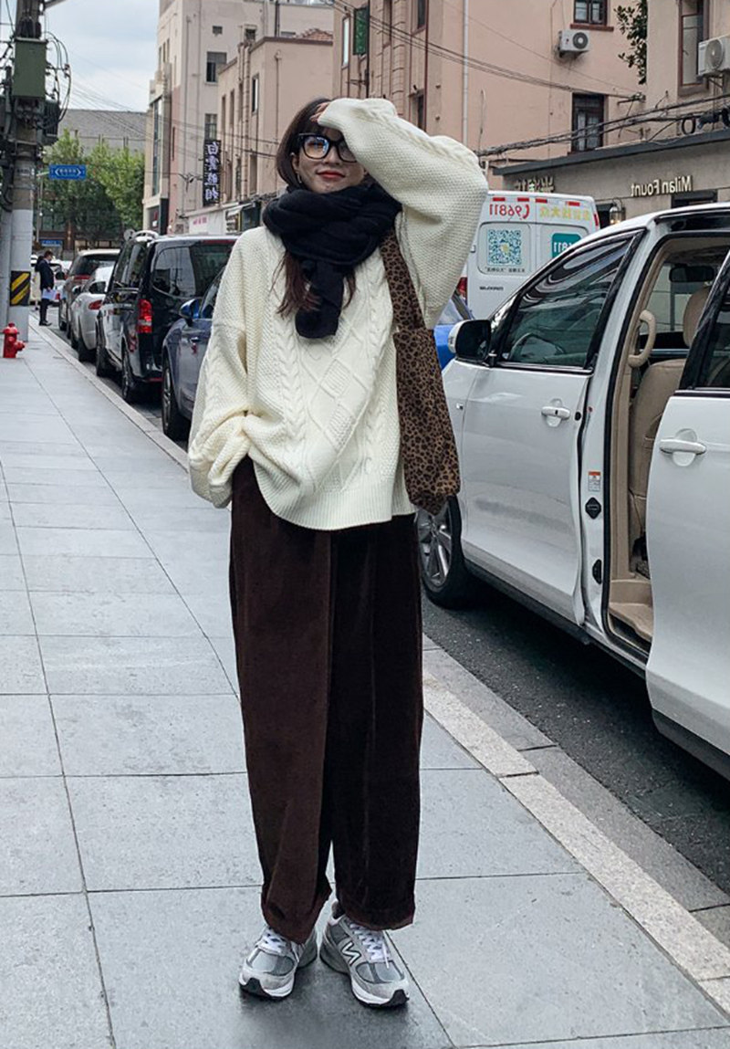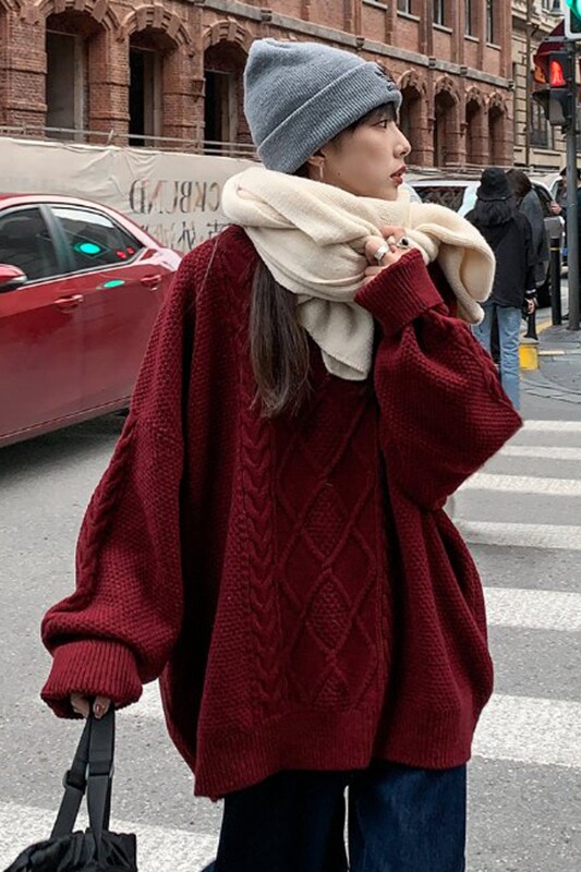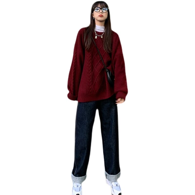 Ретро красный свитер, длинные демисезонные джинсы с начесом, в западном стиле, средней длины, 2021 года
