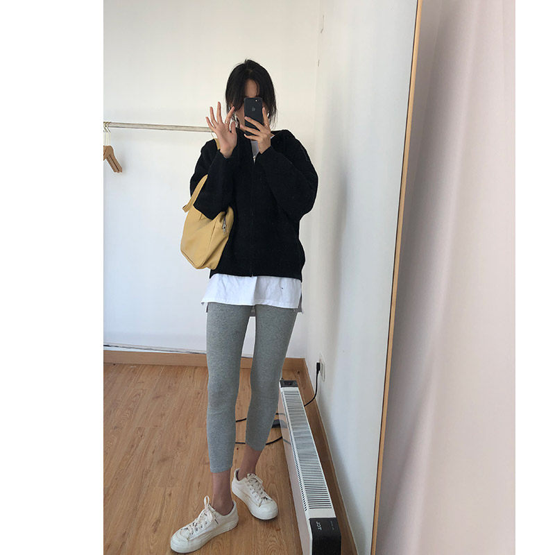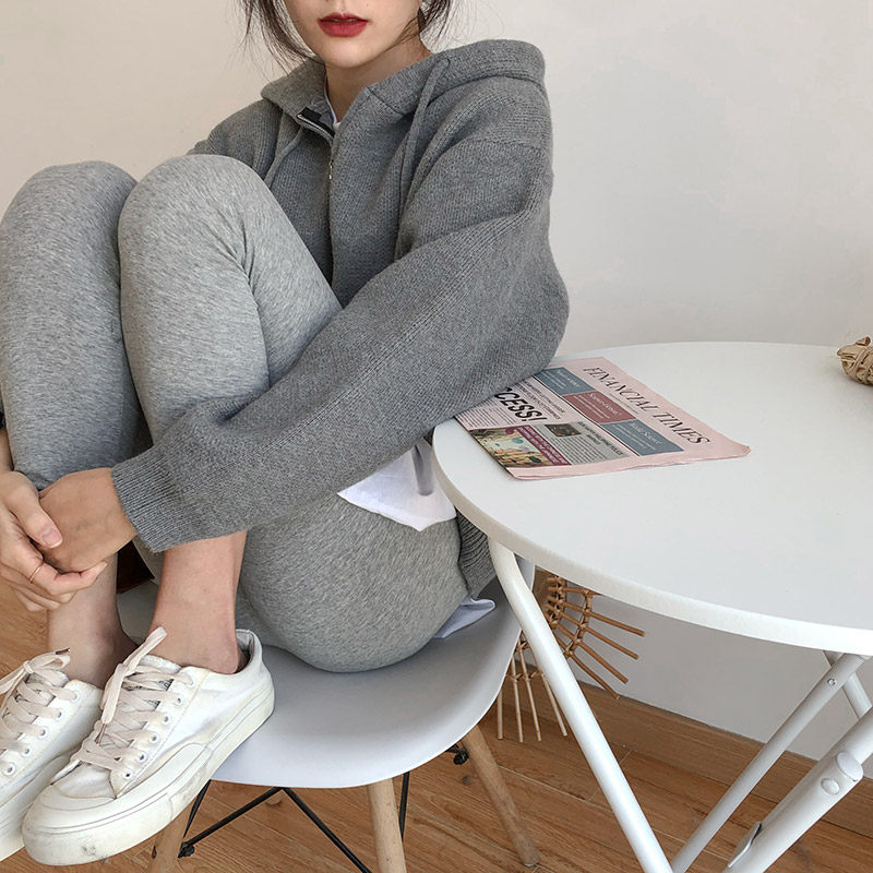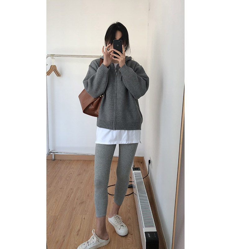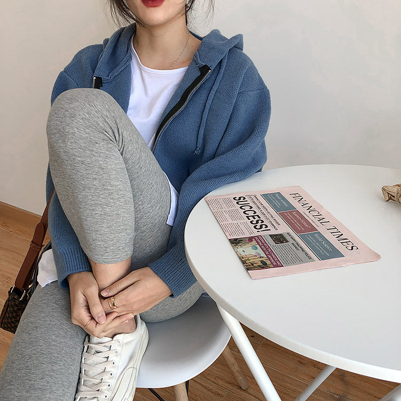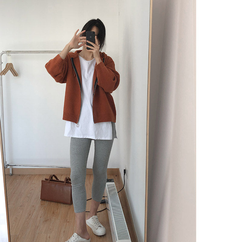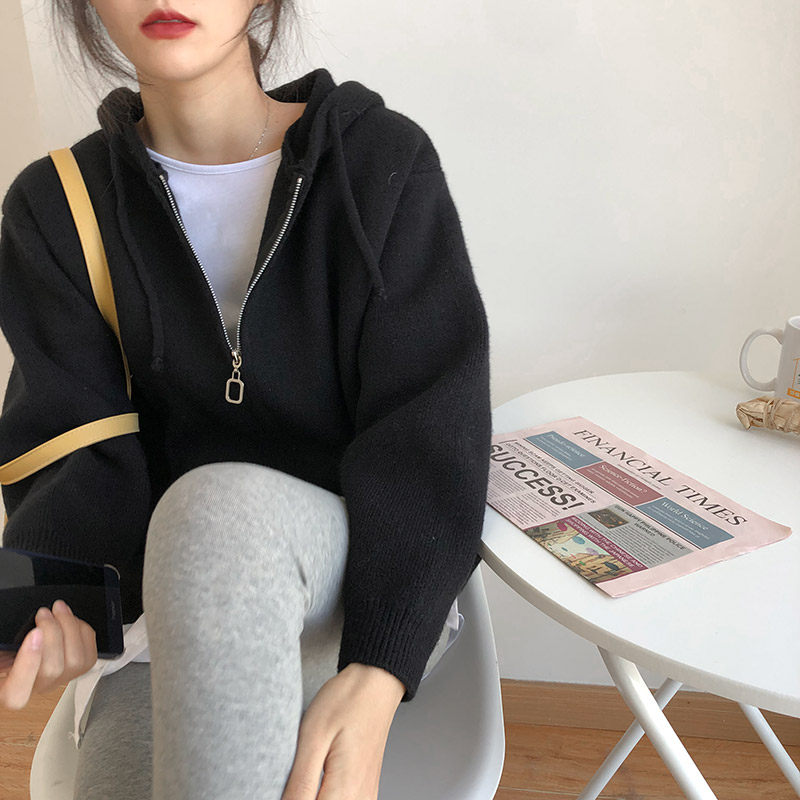 Кардиган с молнией с капюшоном, демисезонный однотонный свитер, куртка, в корейском стиле, коллекция 2021, оверсайз