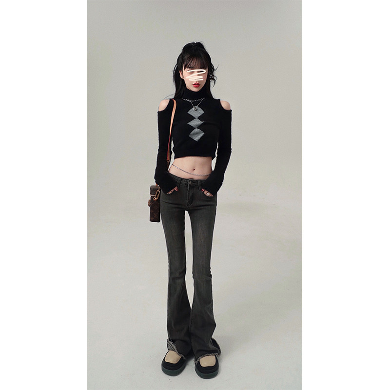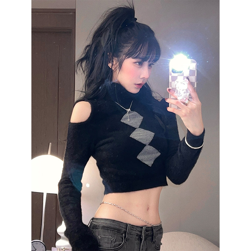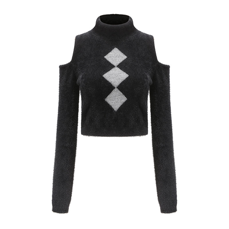 Трикотажный приятный телу осенний короткий свитер с ромбовидным узором