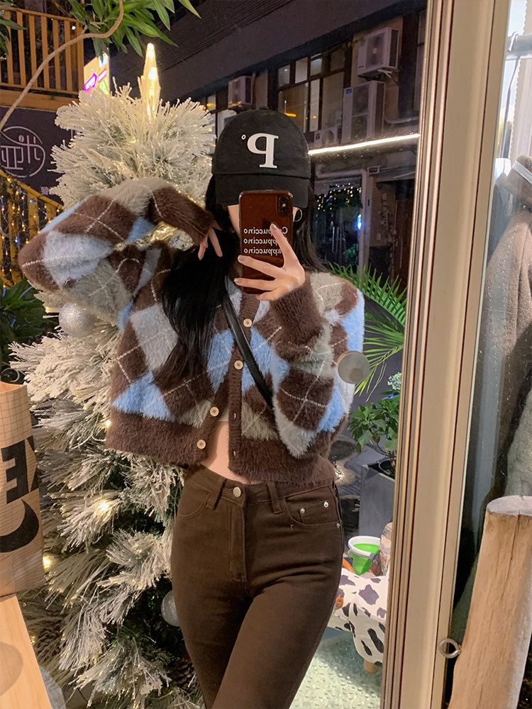 杨泡泡 Осенний кардиган, свитер, куртка, оверсайз, в корейском стиле