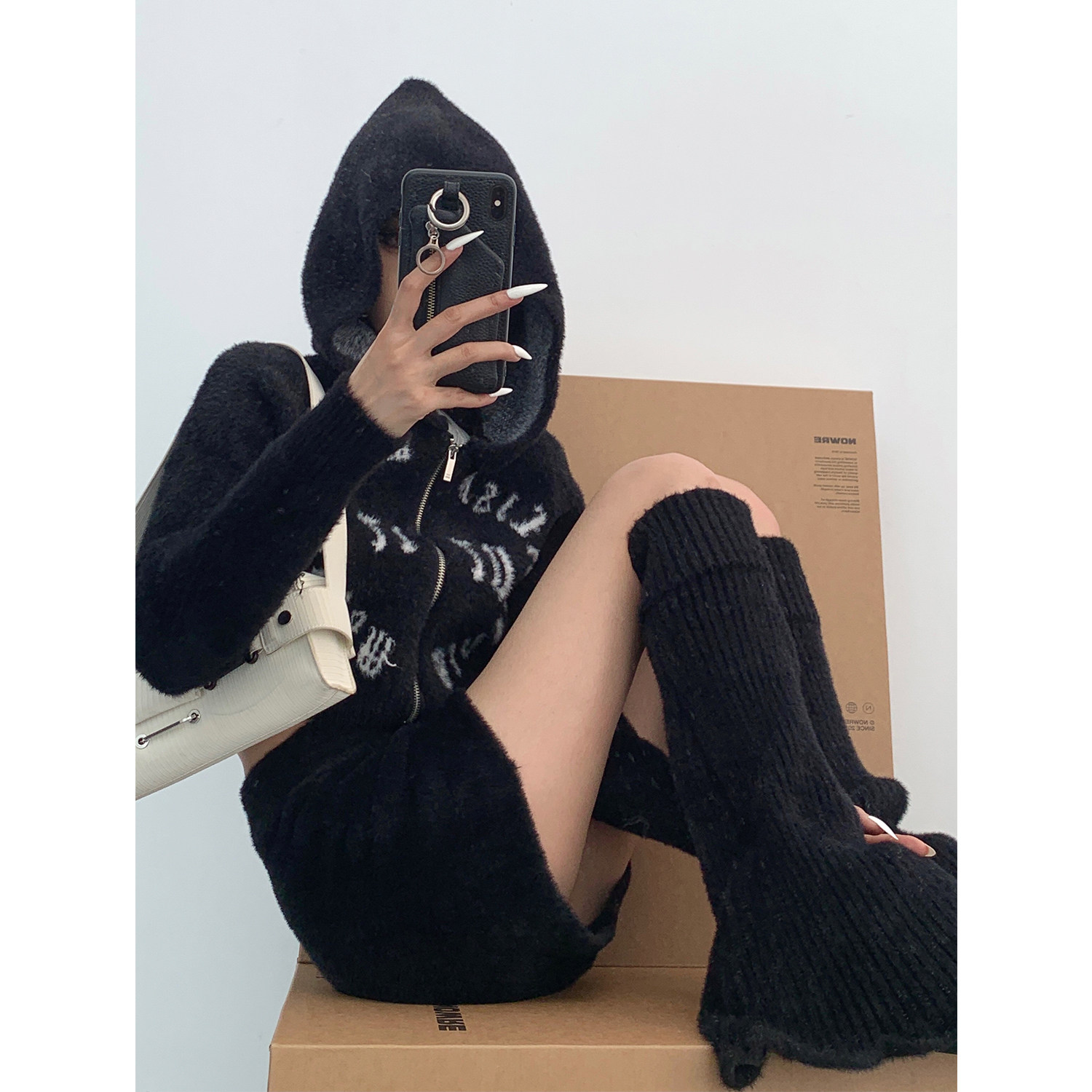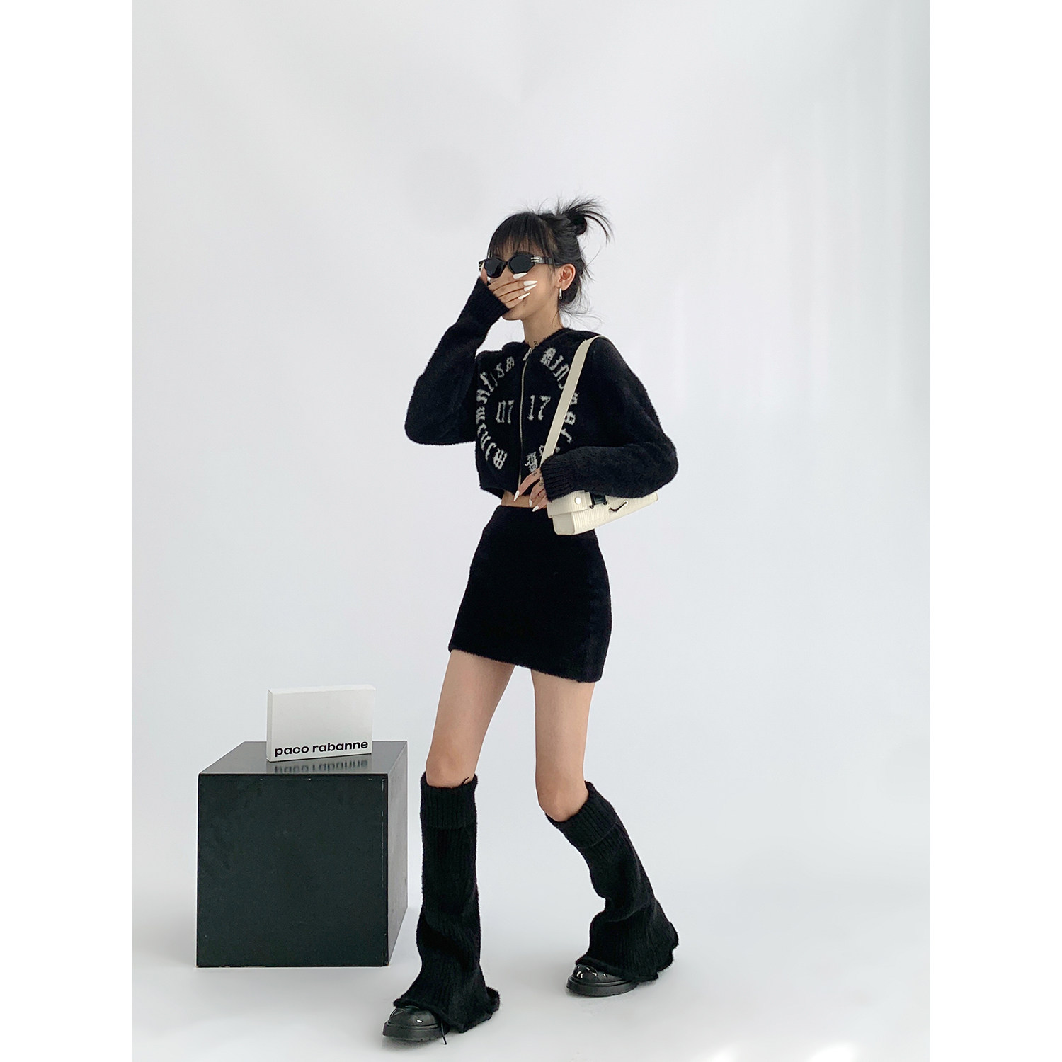 Модный комплект, свитер, кардиган, мини-юбка, гетры, А-силуэт, 3 предмета