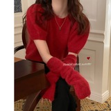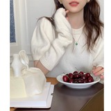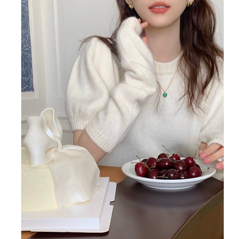 Короткие нарукавники, весенний дизайнерский короткий базовый трикотажный свитер, коллекция 2022, тренд сезона, рукава фонарики