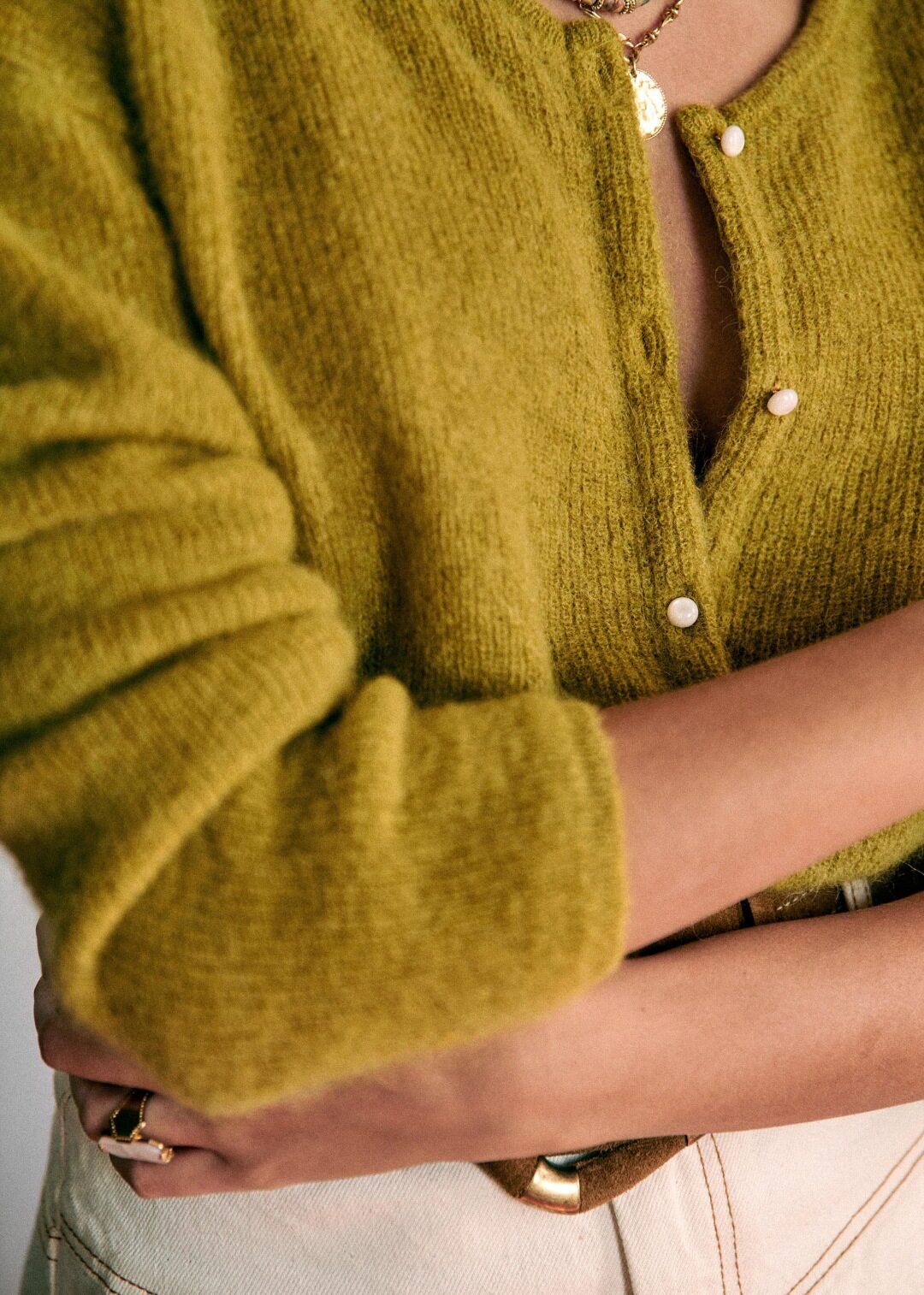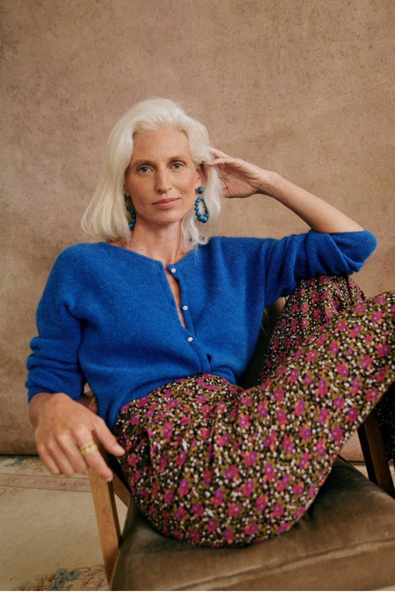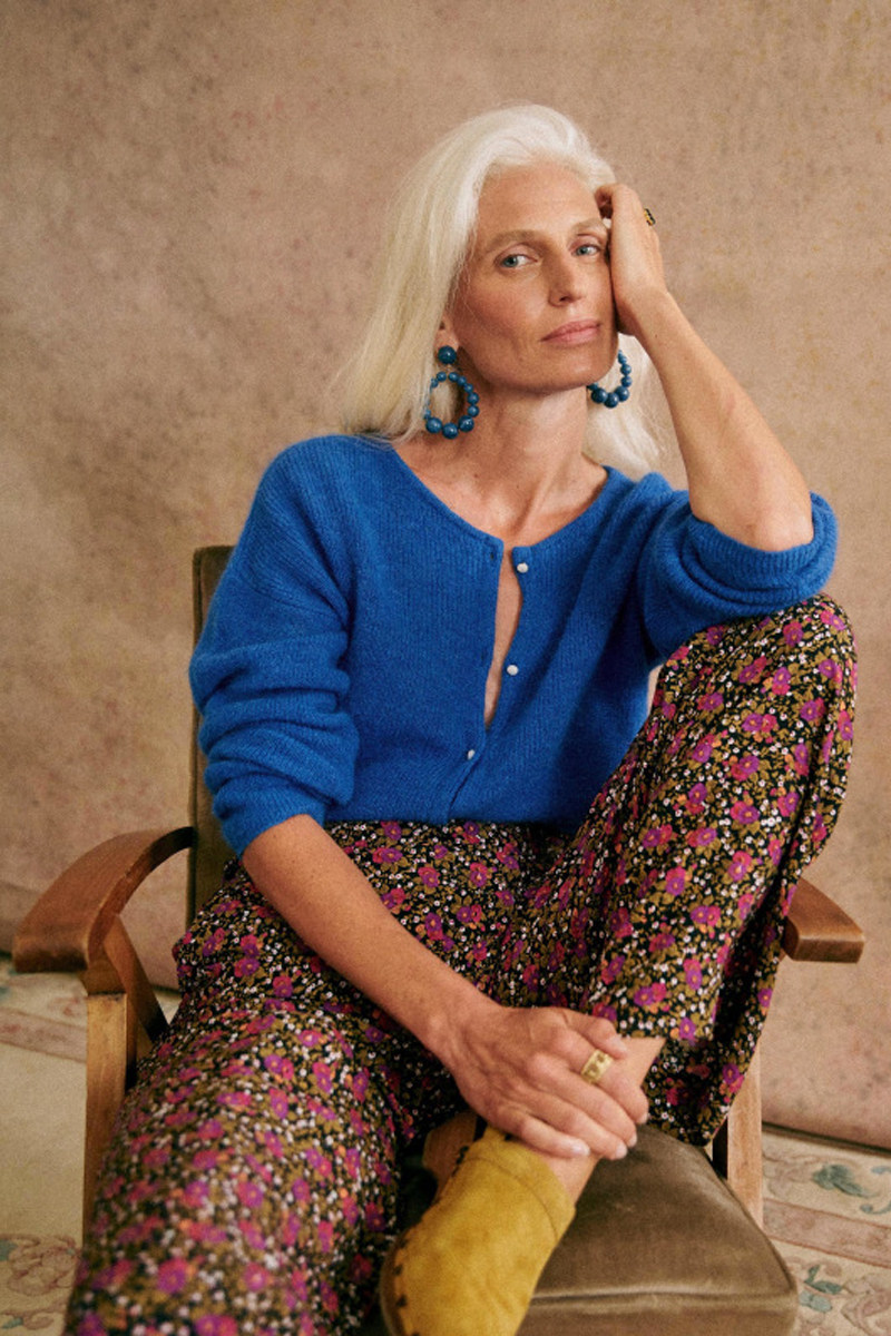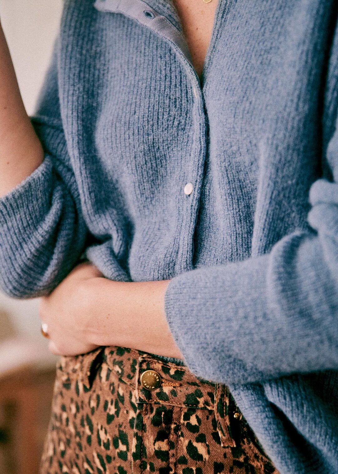 Синий трикотажный свитер с круглым воротником, кардиган, французский стиль