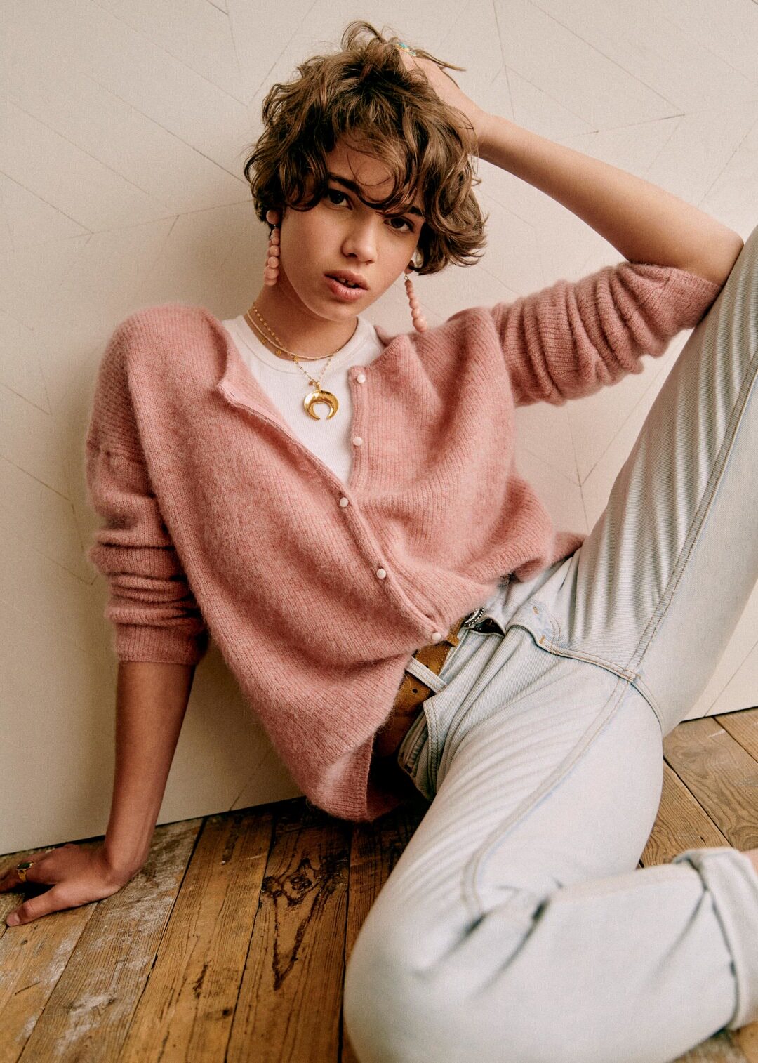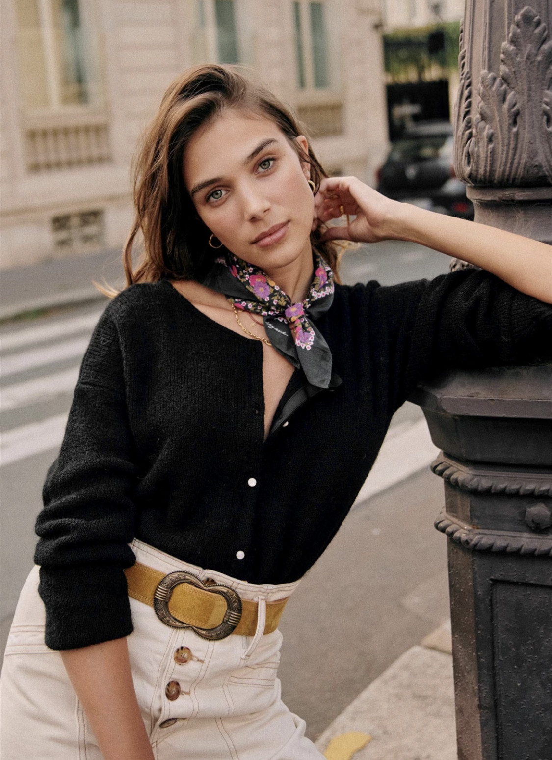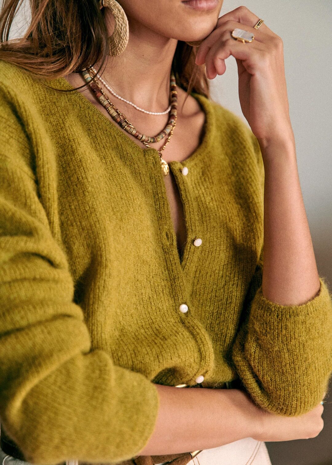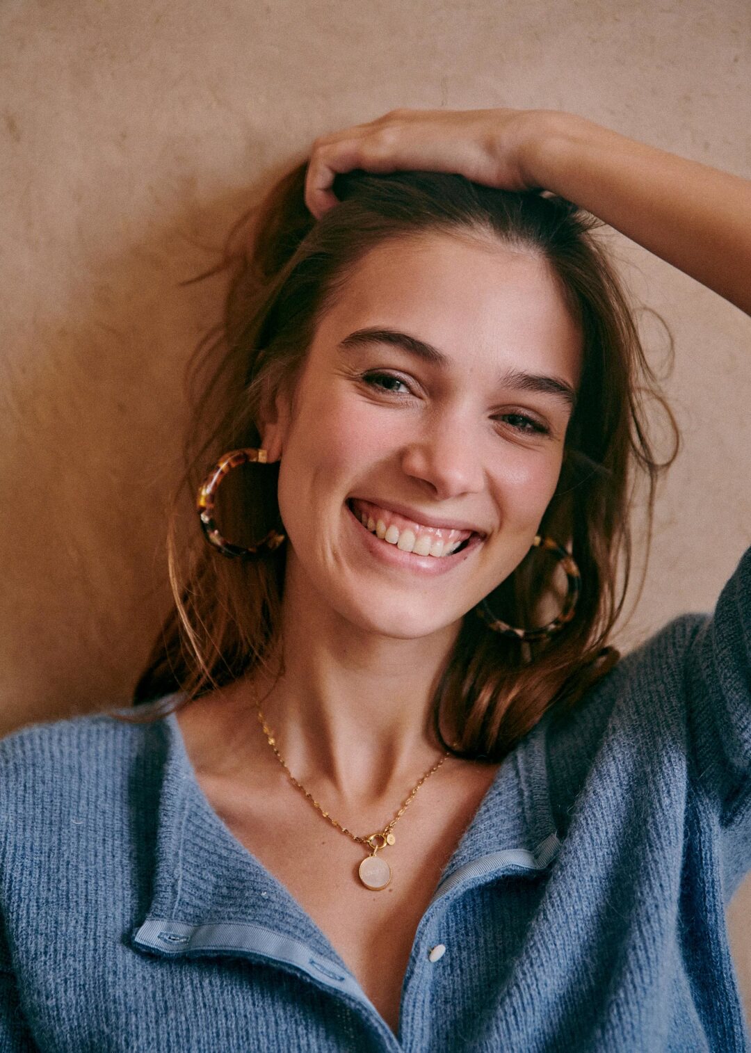 Синий трикотажный свитер с круглым воротником, кардиган, французский стиль