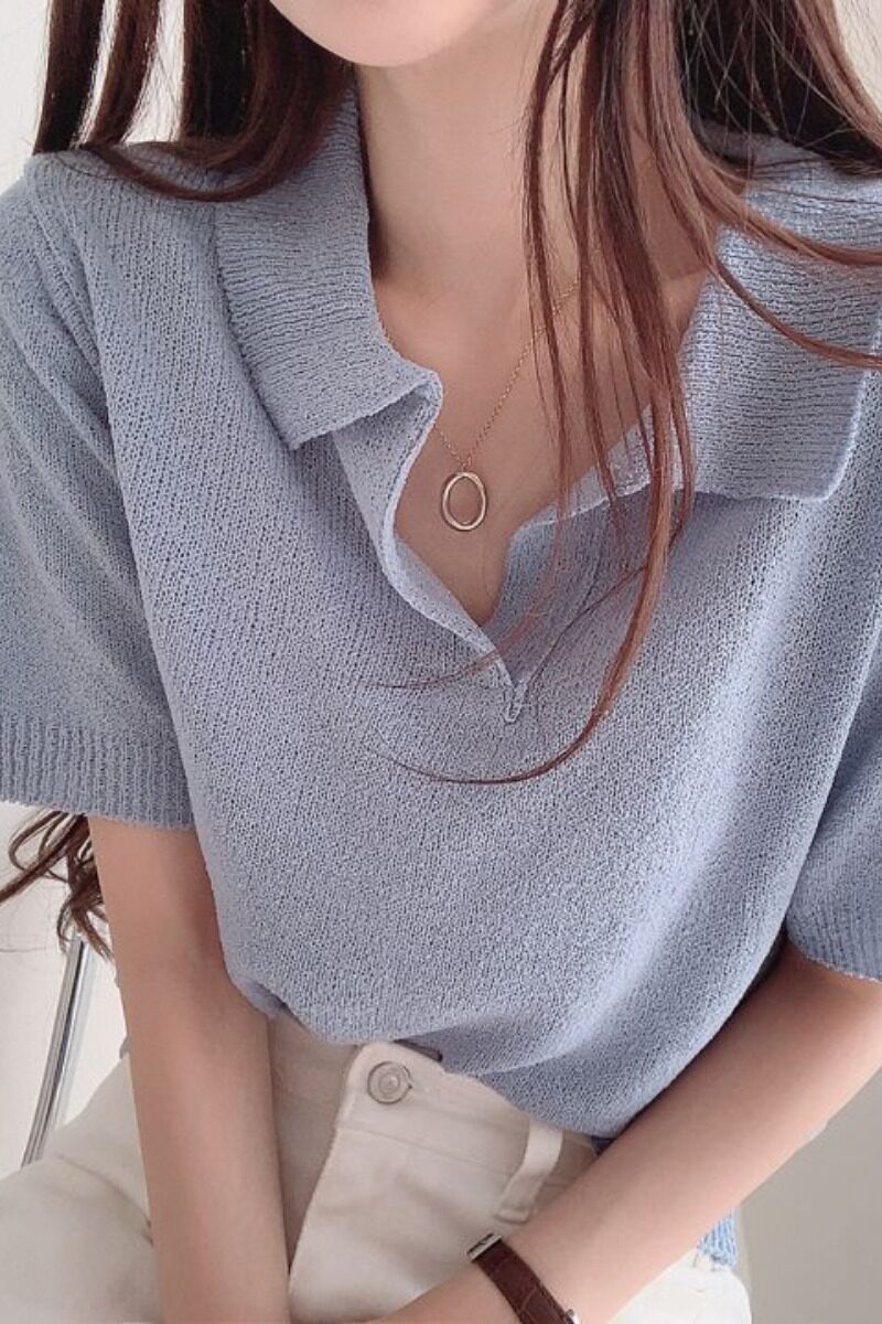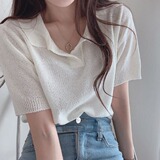 Трикотажный летний свитер, тонкий комплект, футболка, короткий рукав