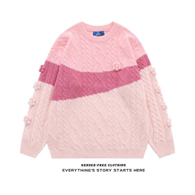 Трикотажный базовый шерстяной свитер с круглым воротником, свободный крой