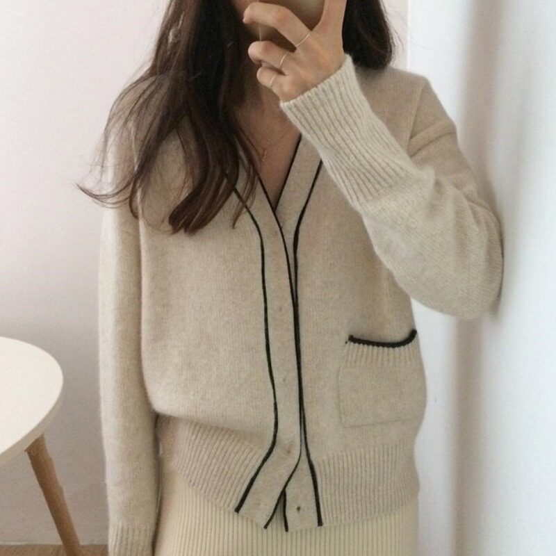 Свитер, демисезонная куртка, дизайнерский кардиган, в корейском стиле, V-образный вырез