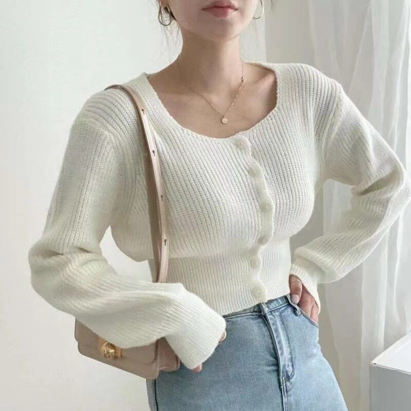 Приталенный корсет, осенний свитер, осенняя куртка, кардиган, в корейском стиле, квадратный вырез, премиум класс, яркий броский стиль