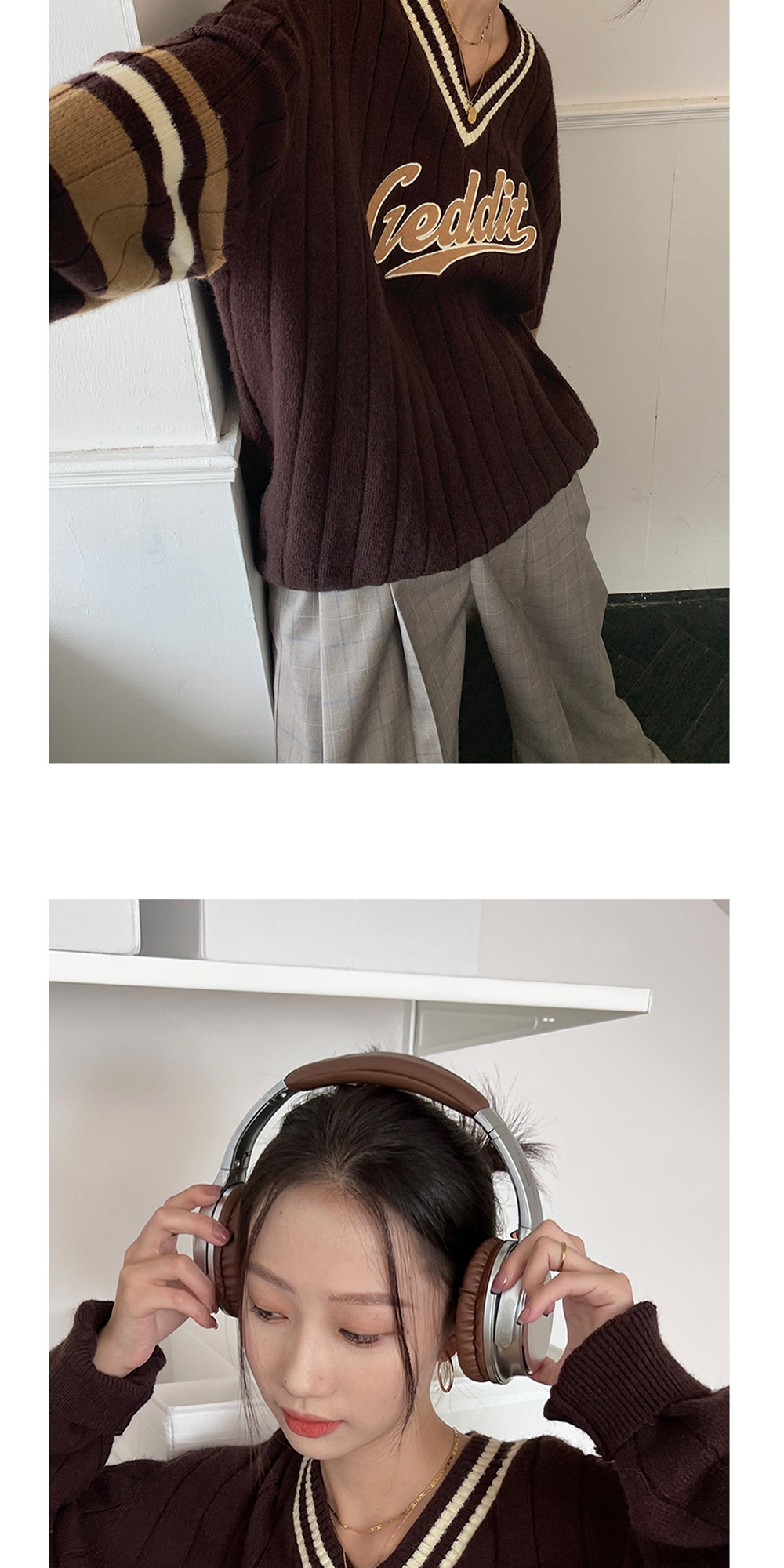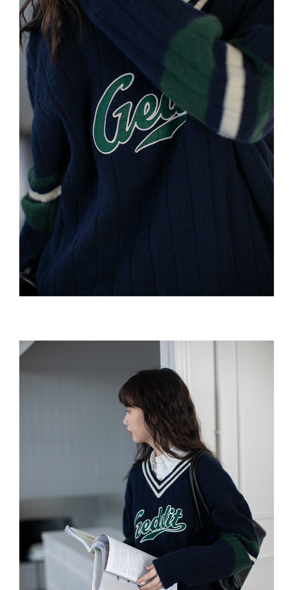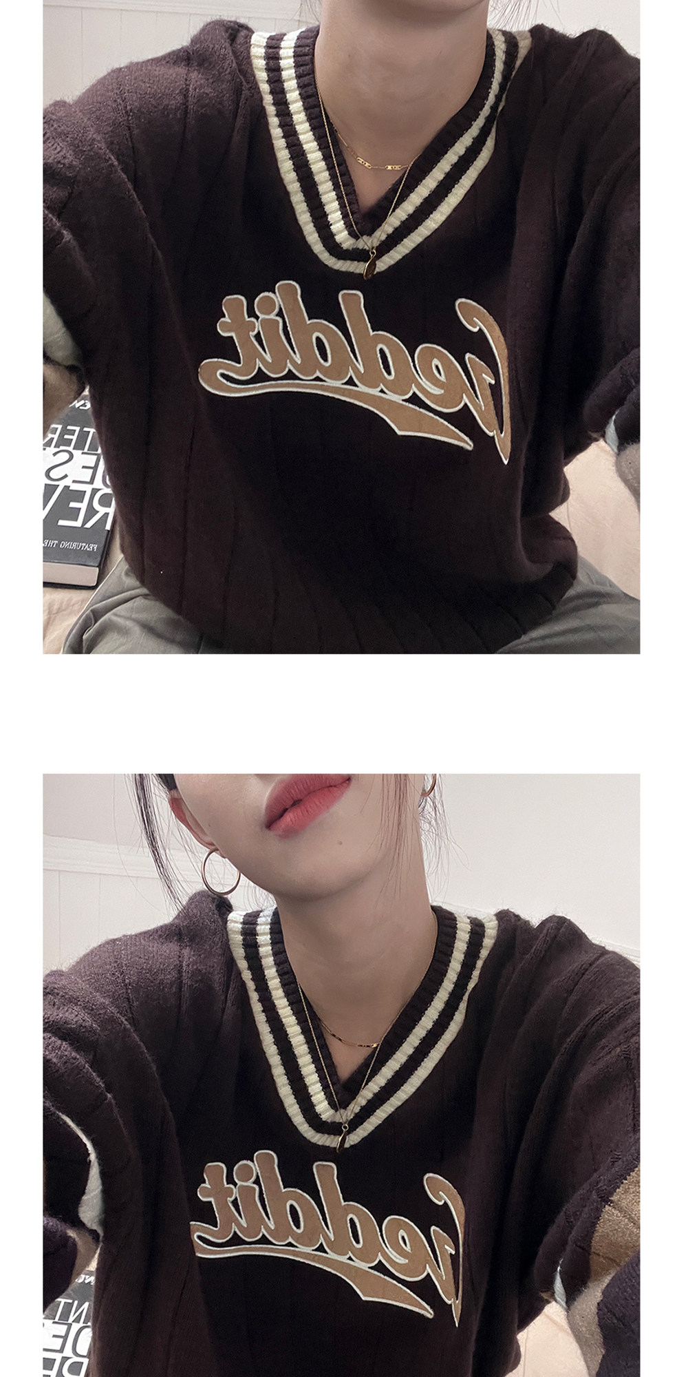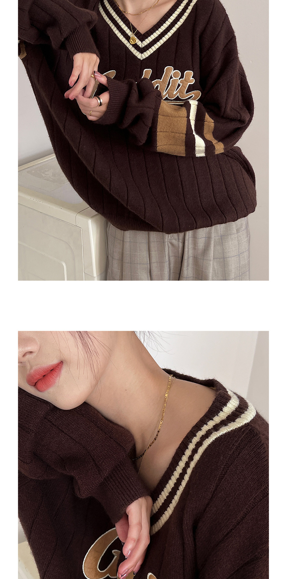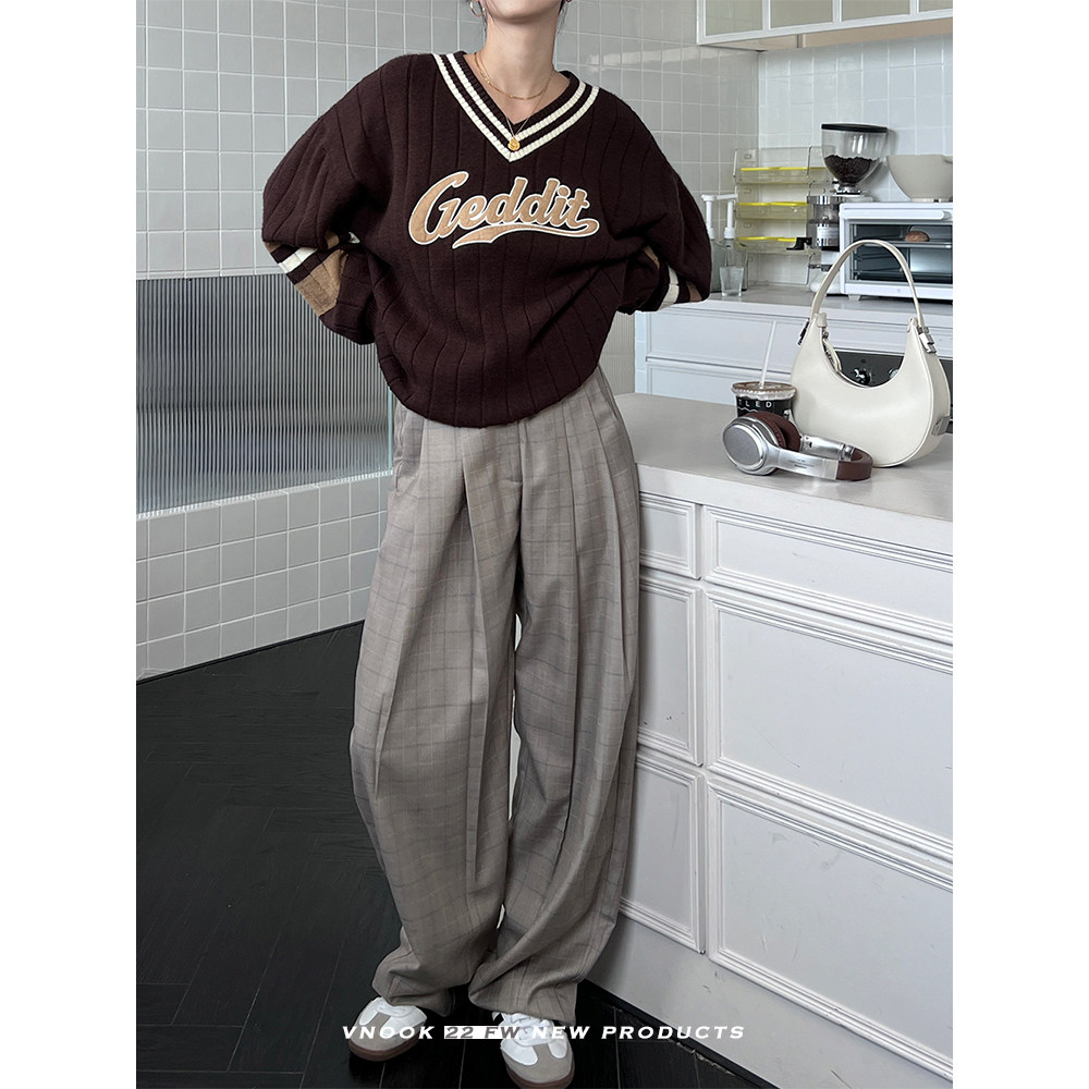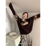 Осенний ретро дизайнерский свитер, V-образный вырез, тренд сезона