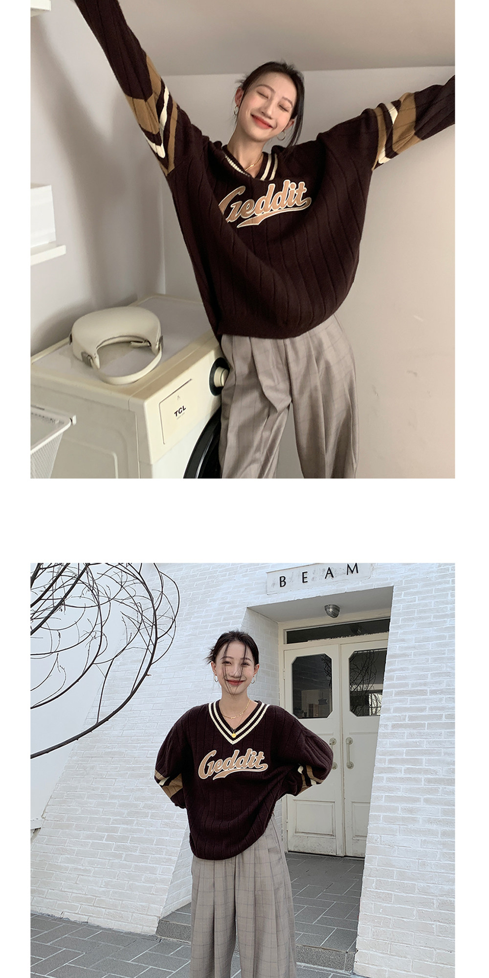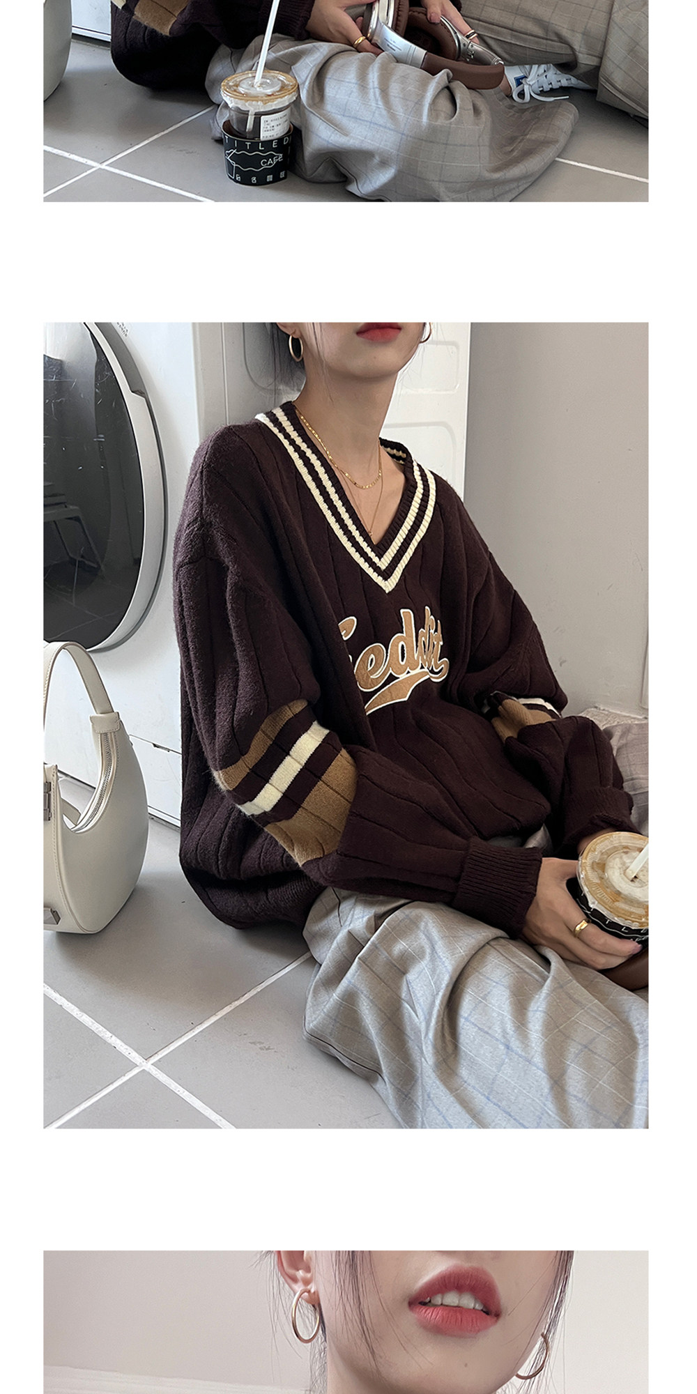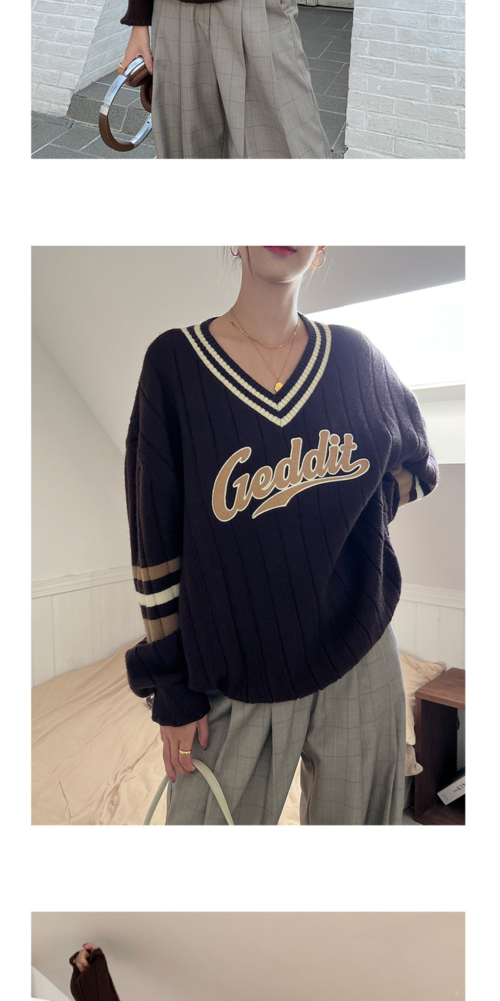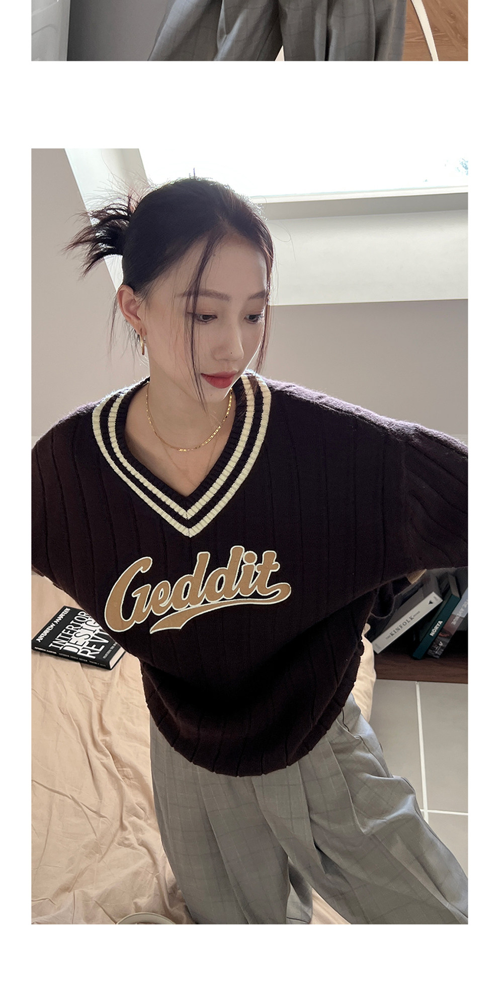 Осенний ретро дизайнерский свитер, V-образный вырез, тренд сезона