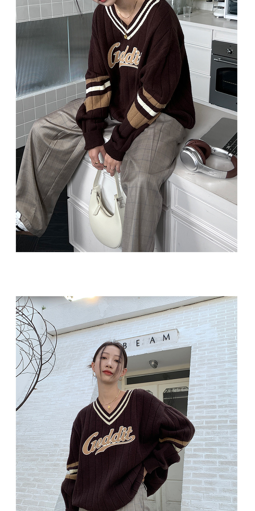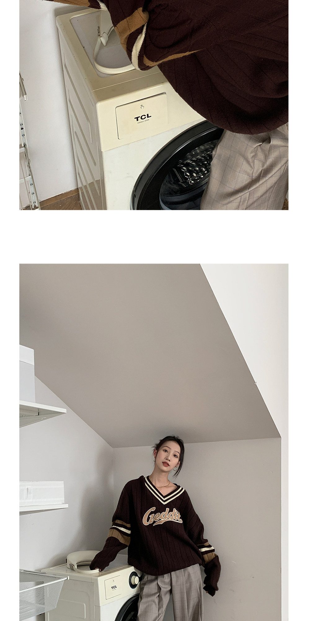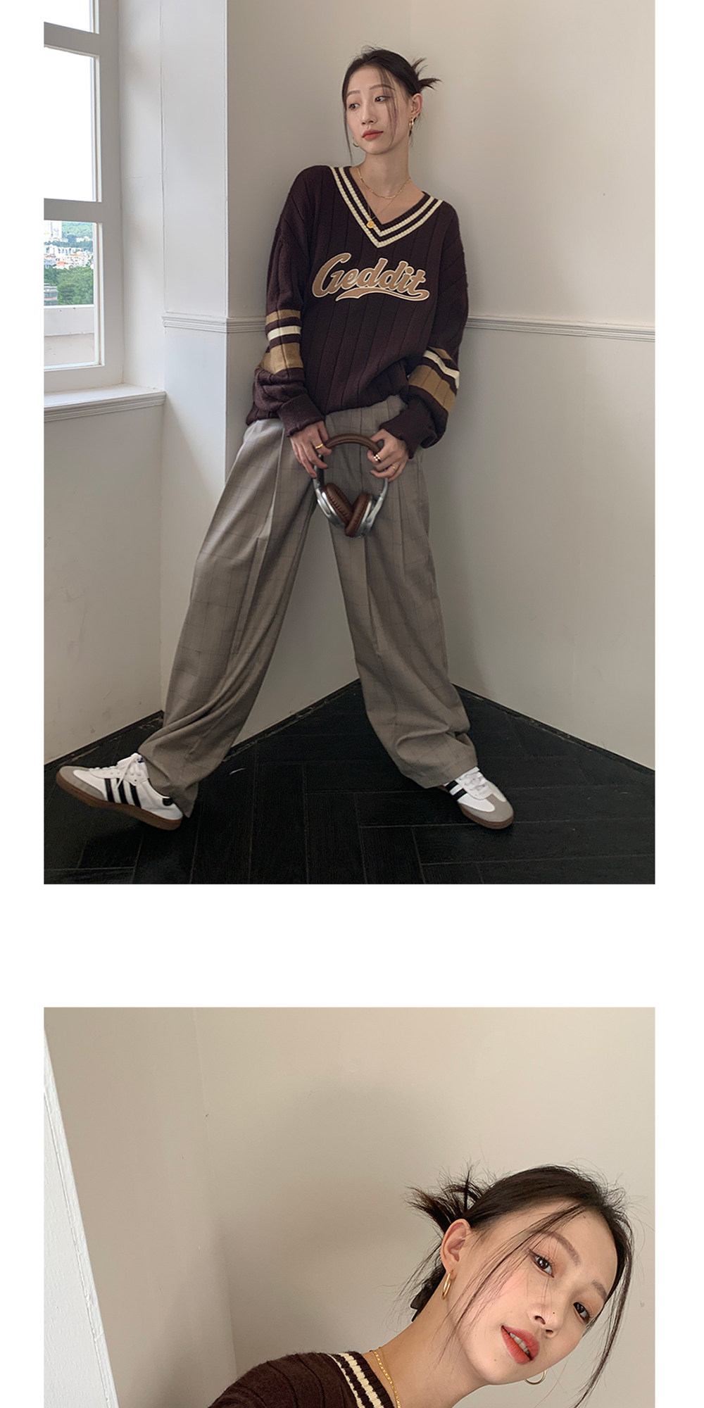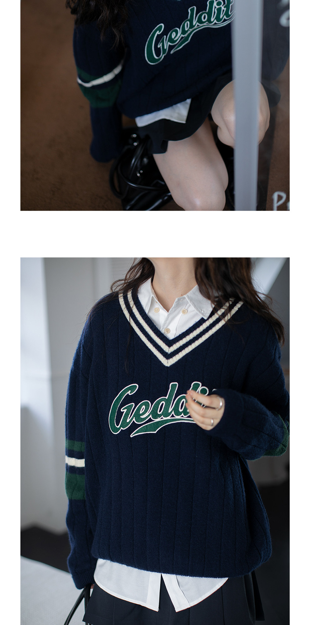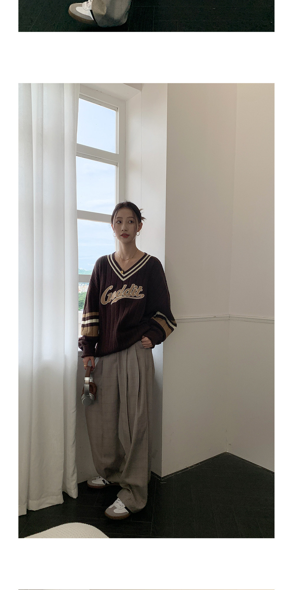 Осенний ретро дизайнерский свитер, V-образный вырез, тренд сезона