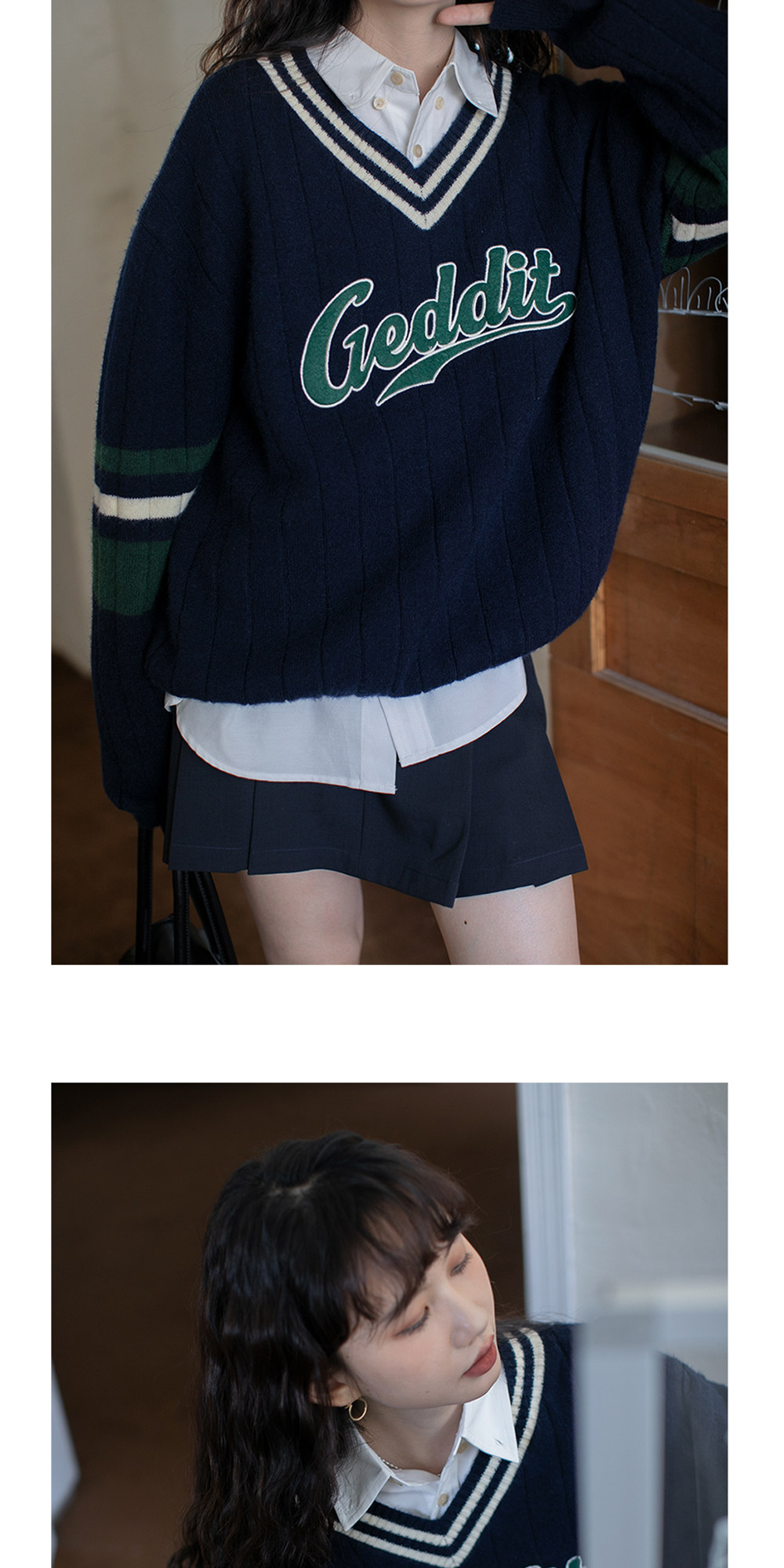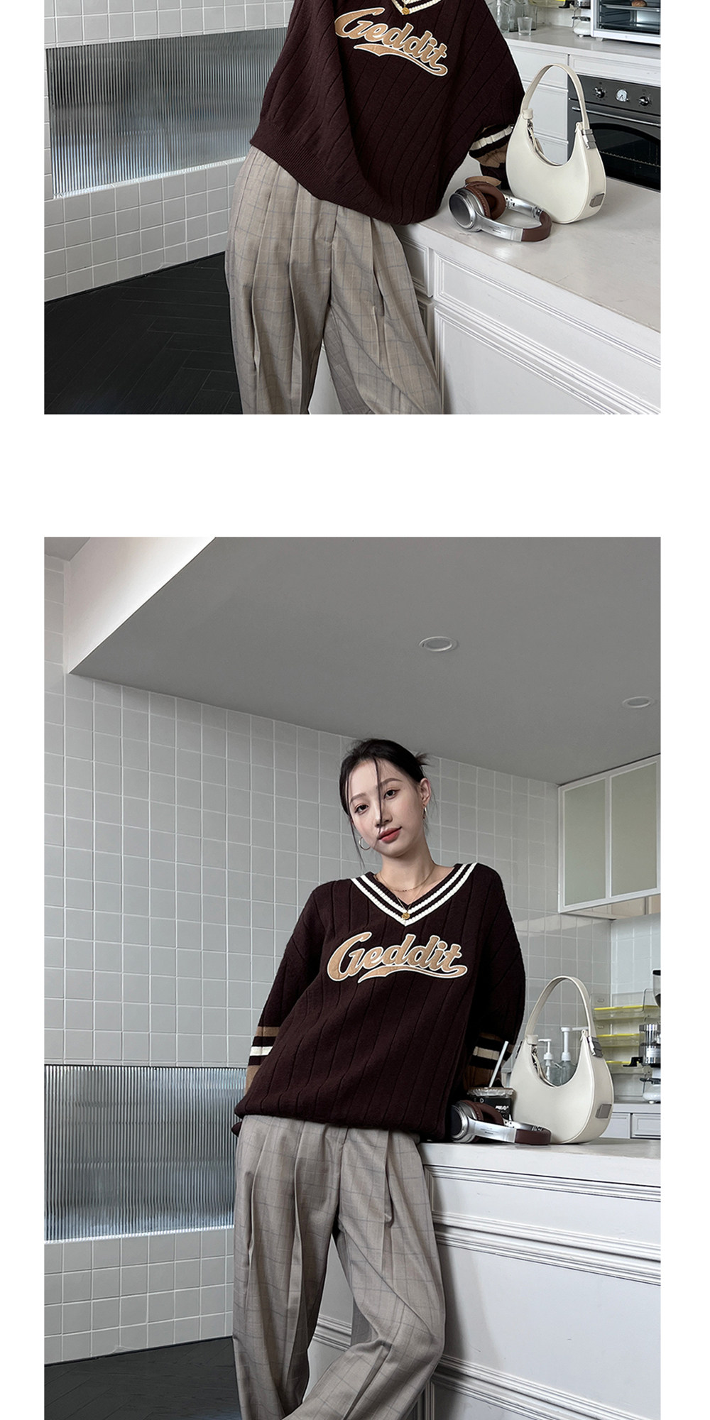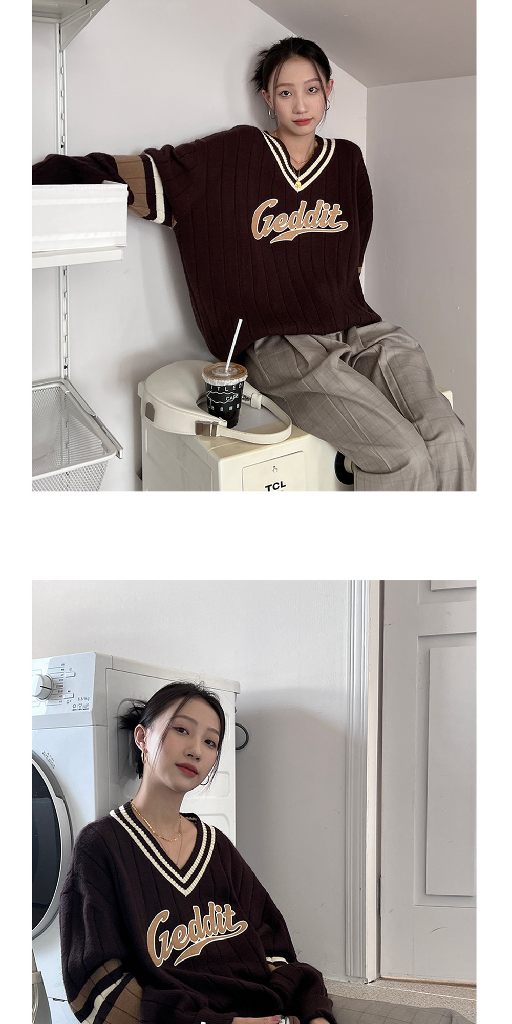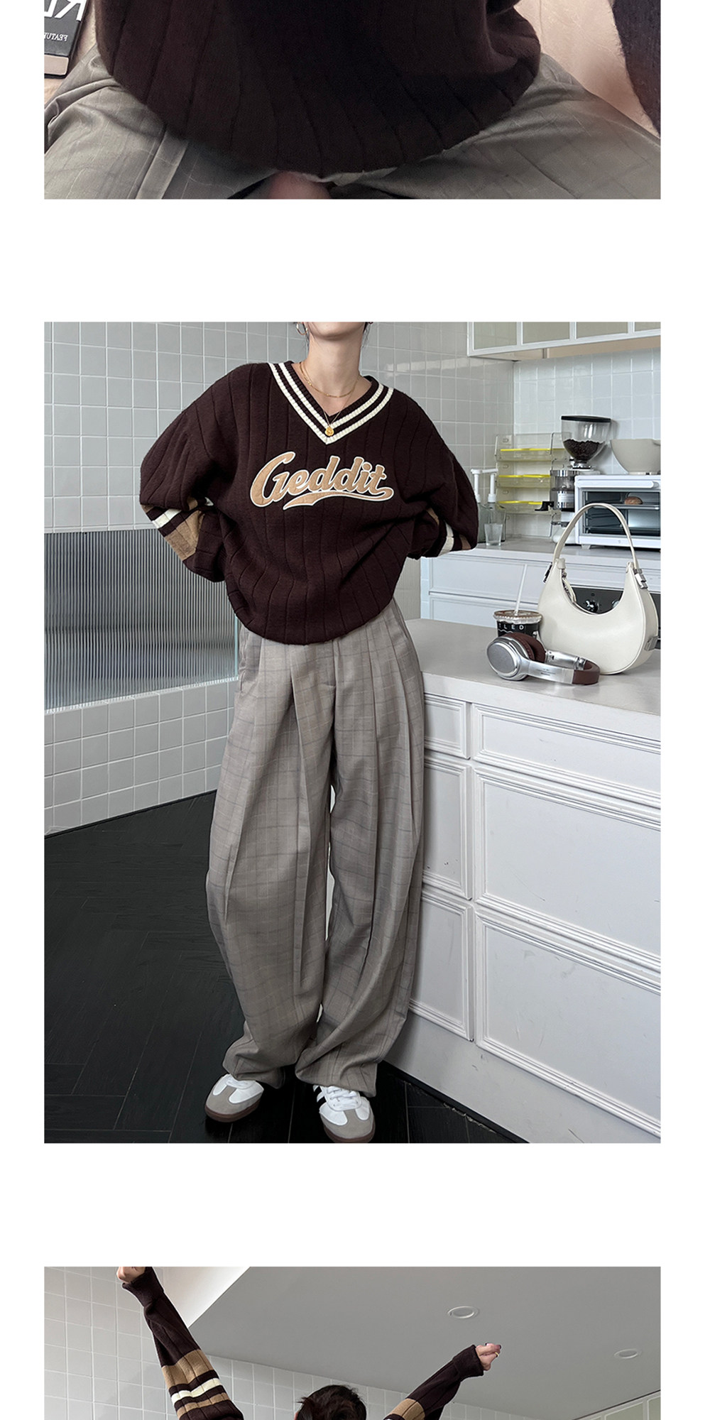 Осенний ретро дизайнерский свитер, V-образный вырез, тренд сезона