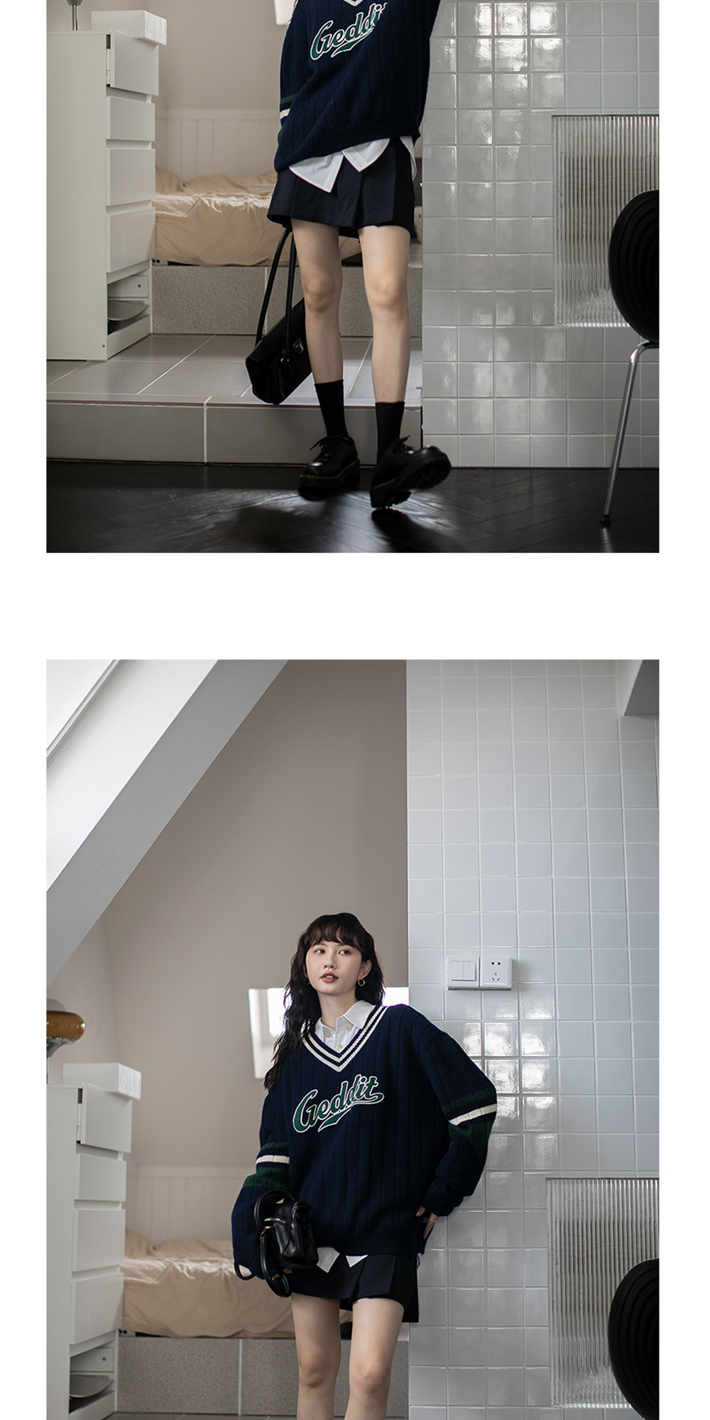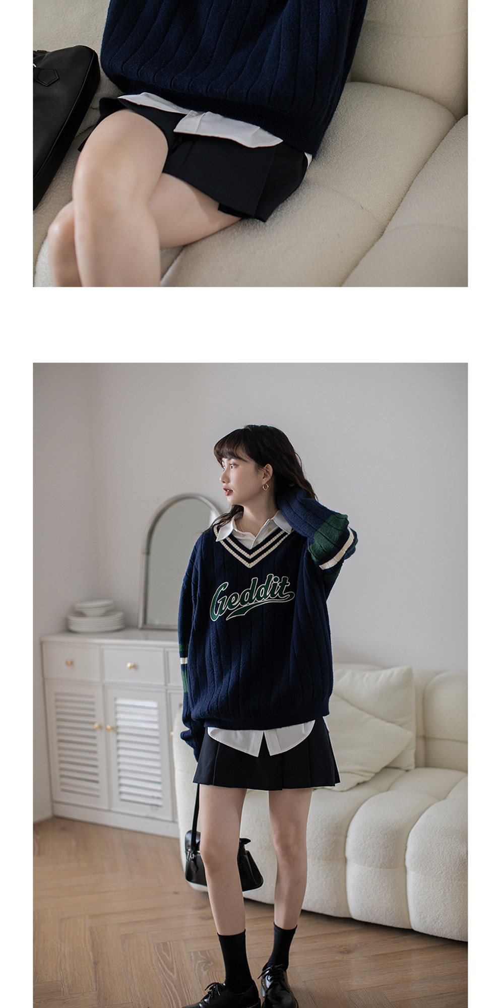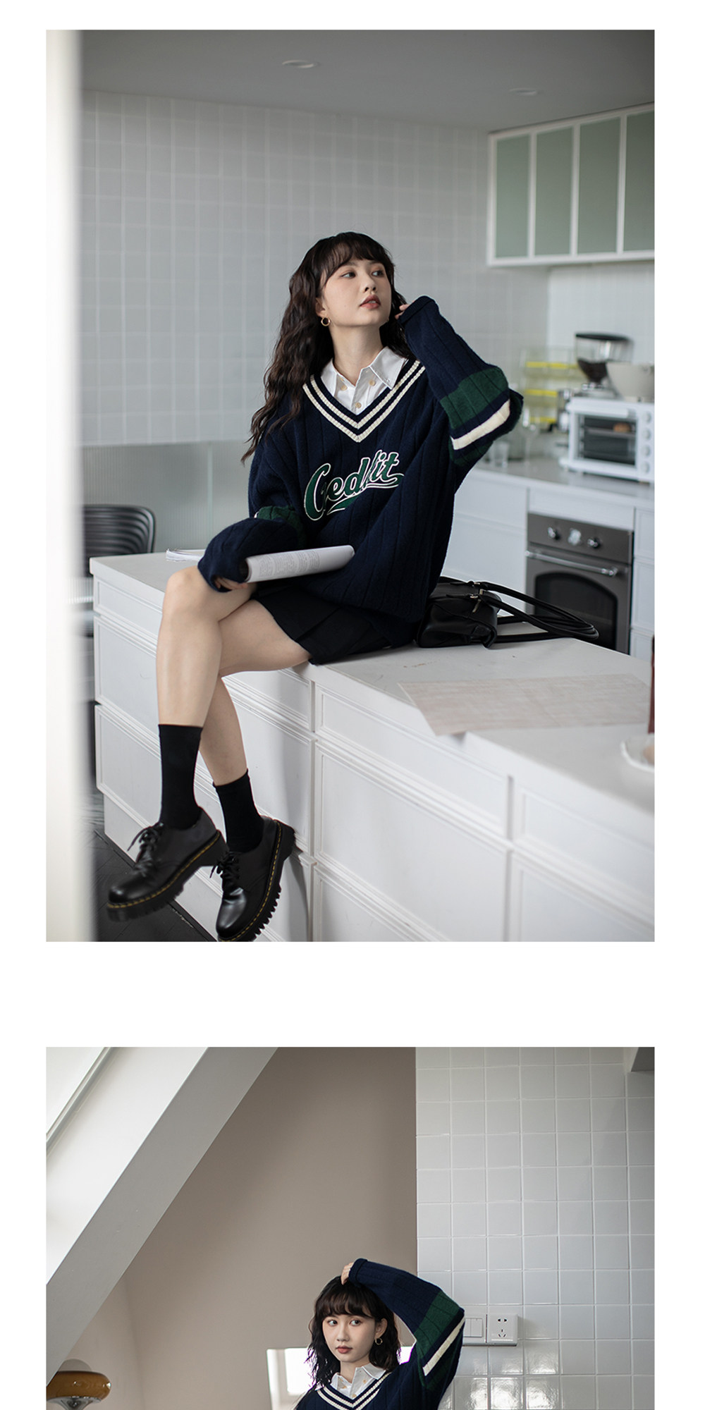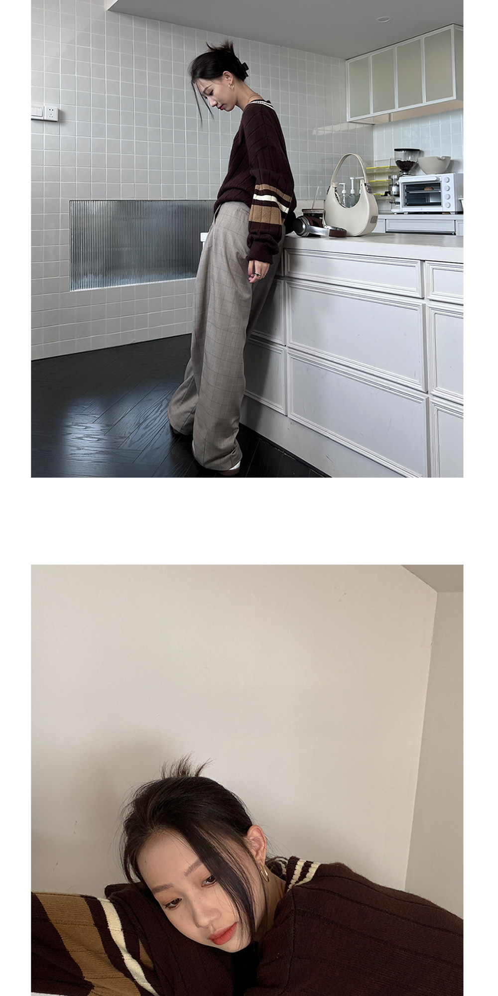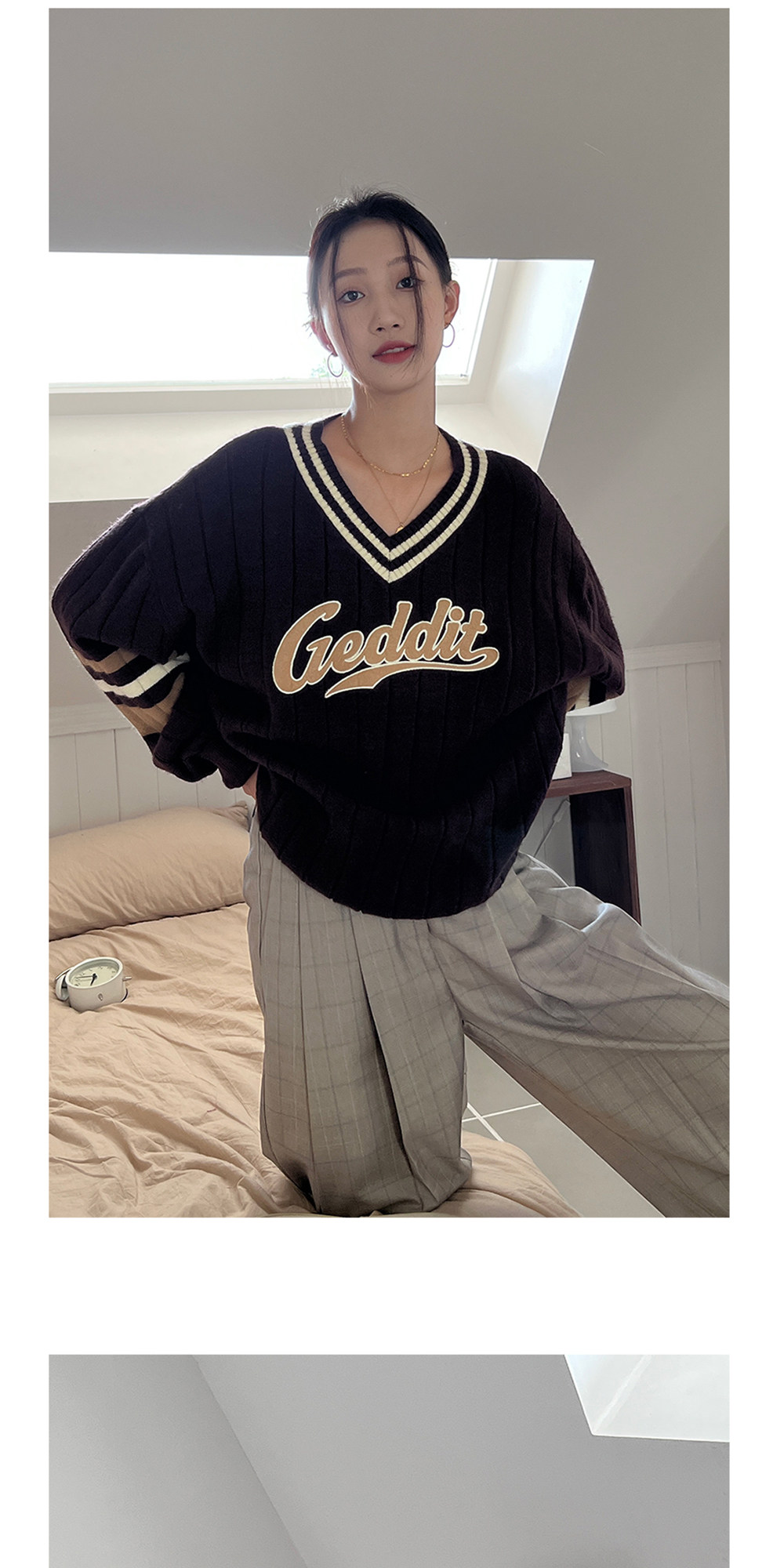 Осенний ретро дизайнерский свитер, V-образный вырез, тренд сезона