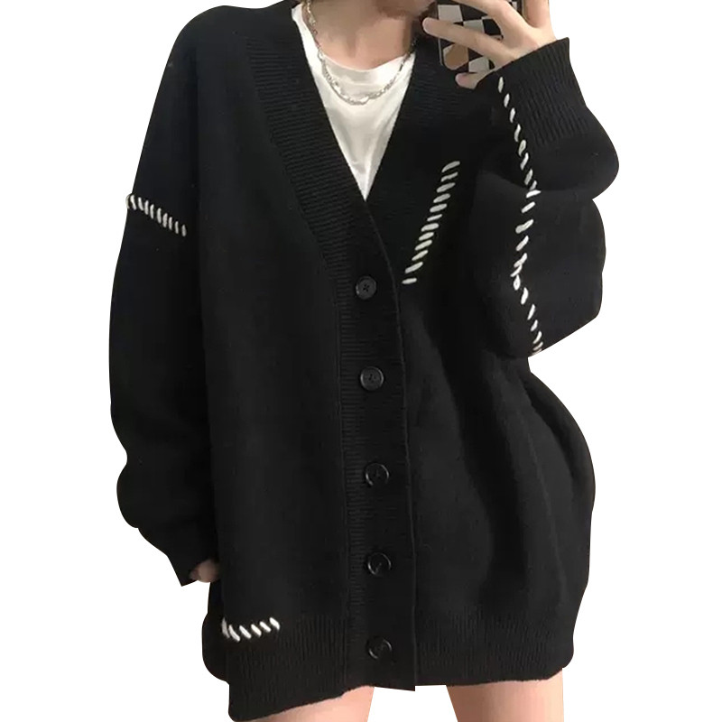 Черный свитер, куртка, кардиган, осенний, в американском стиле