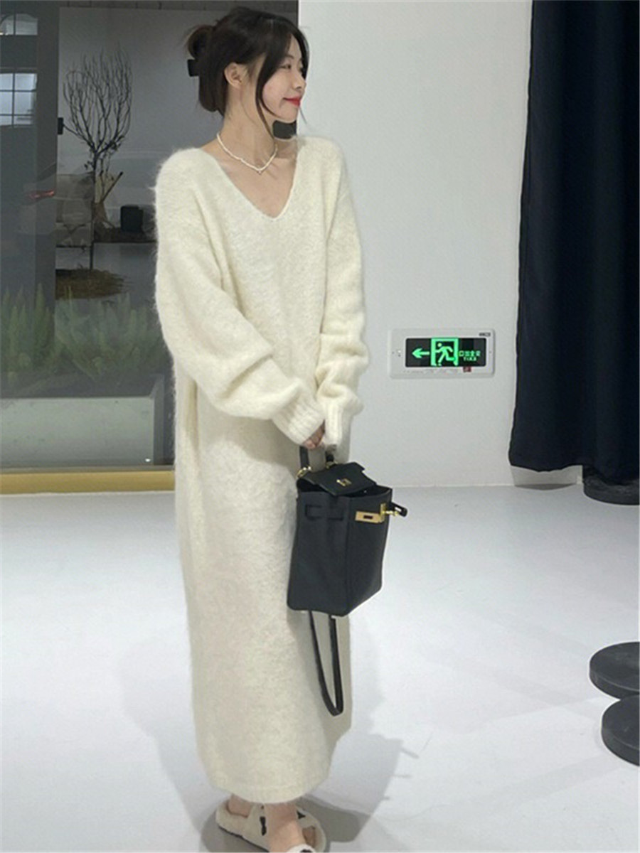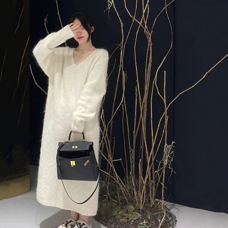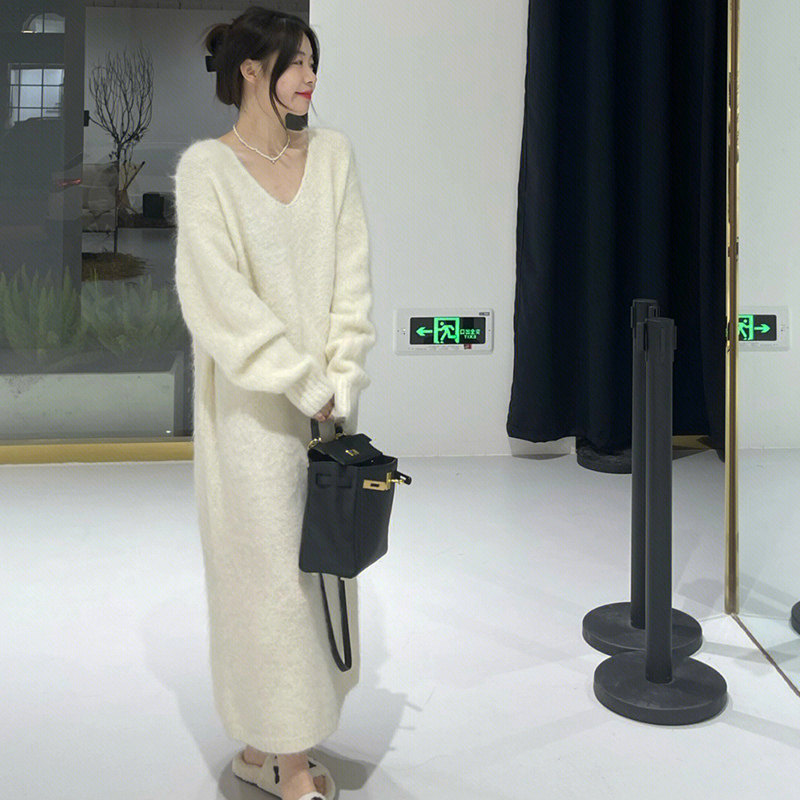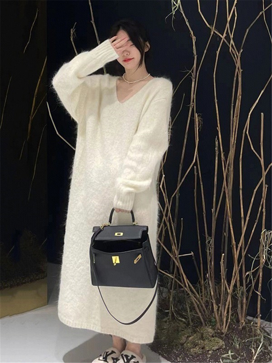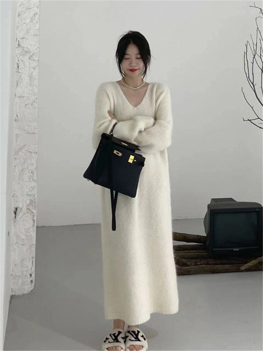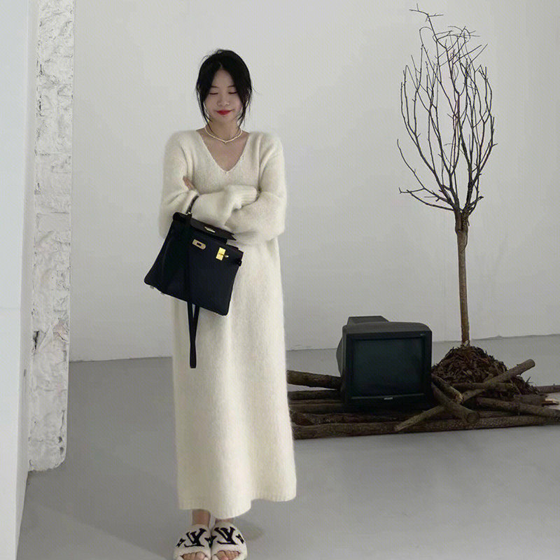 Белый цветной свитер, мягкое трикотажное платье, базовая длинная юбка, французский стиль