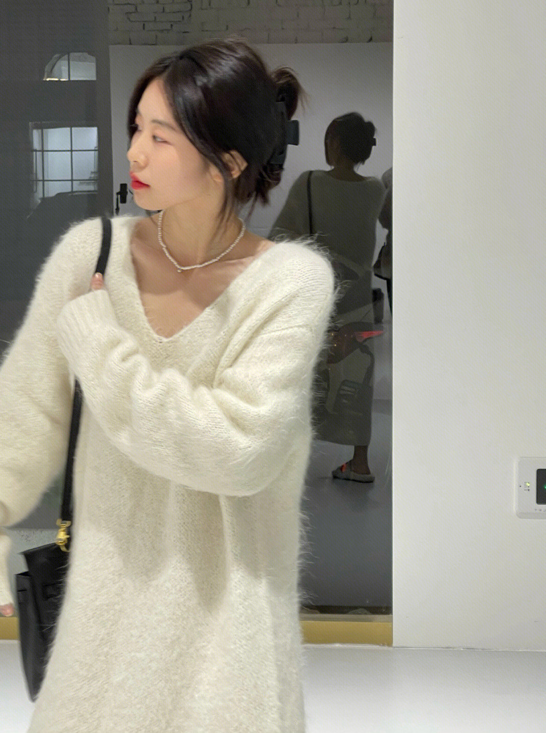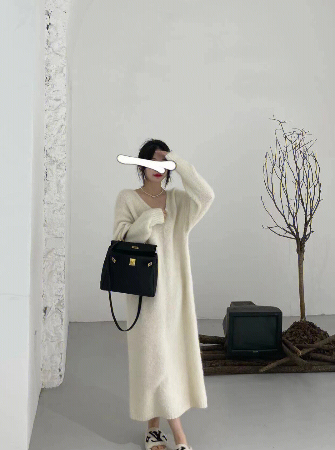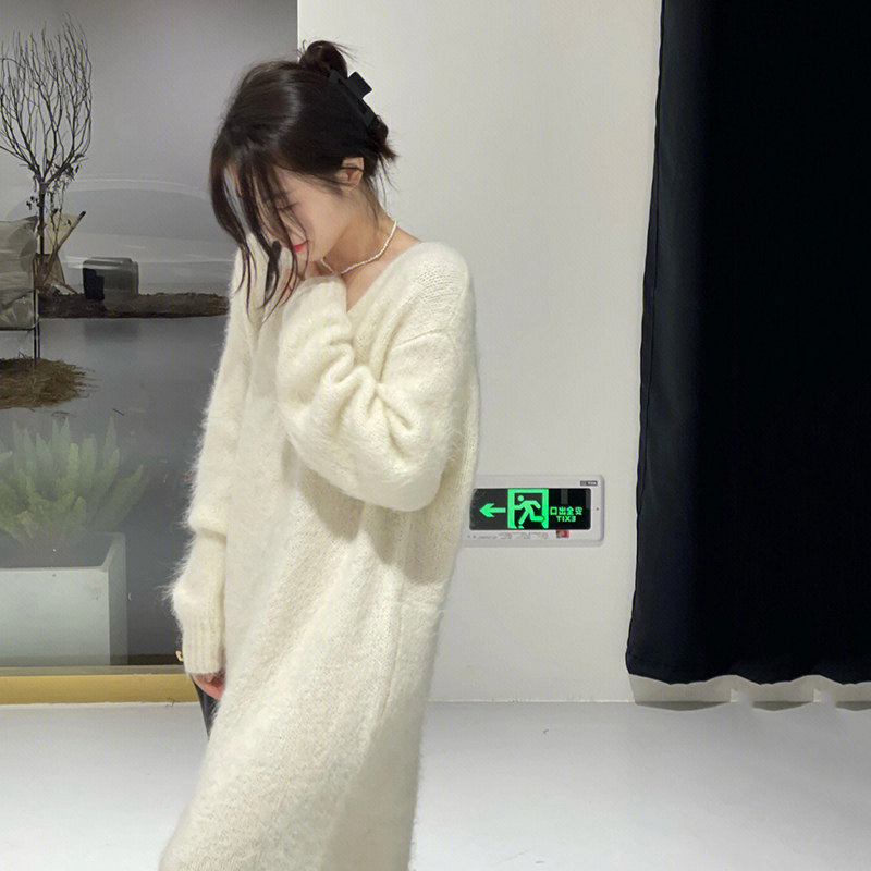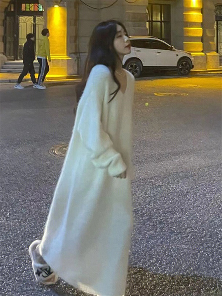 Белый цветной свитер, мягкое трикотажное платье, базовая длинная юбка, французский стиль