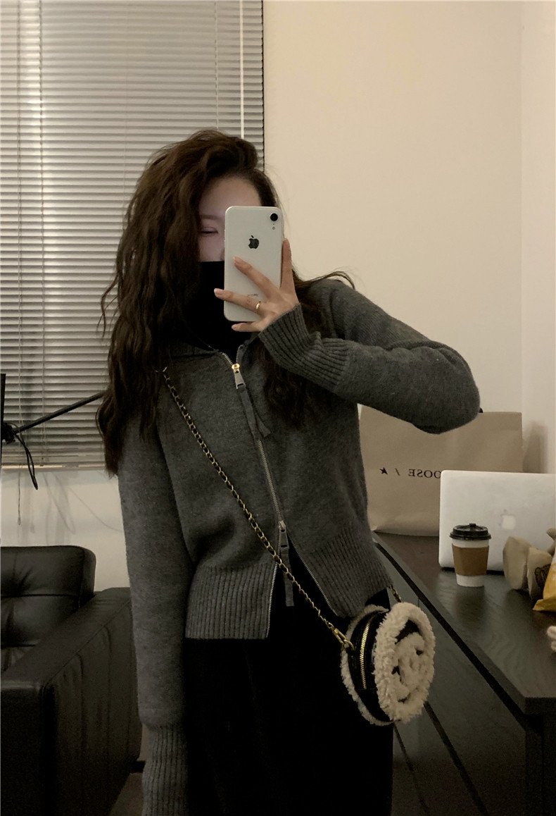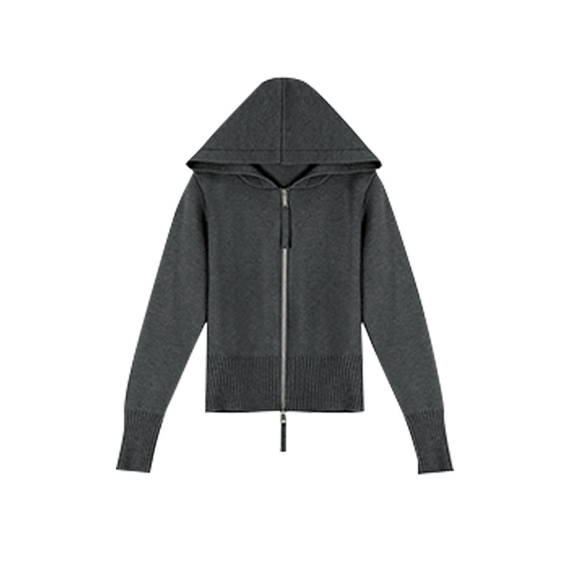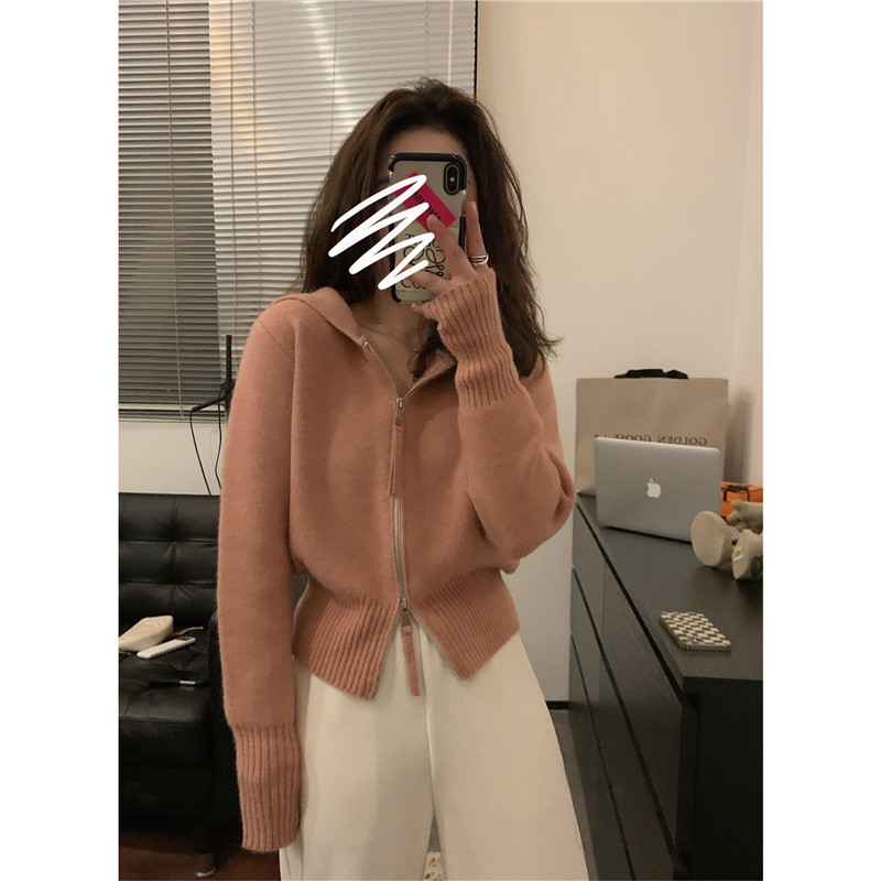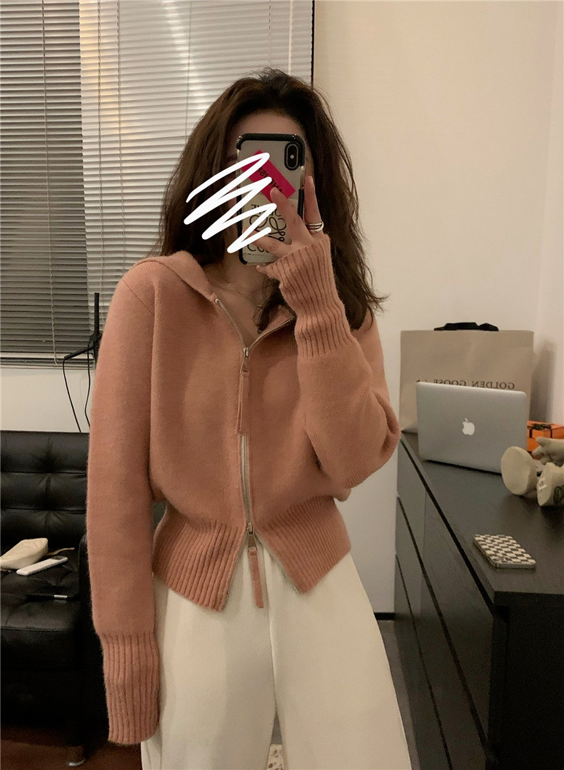 Короткий демисезонный свитер с молнией, трикотажная толстовка с капюшоном, кардиган