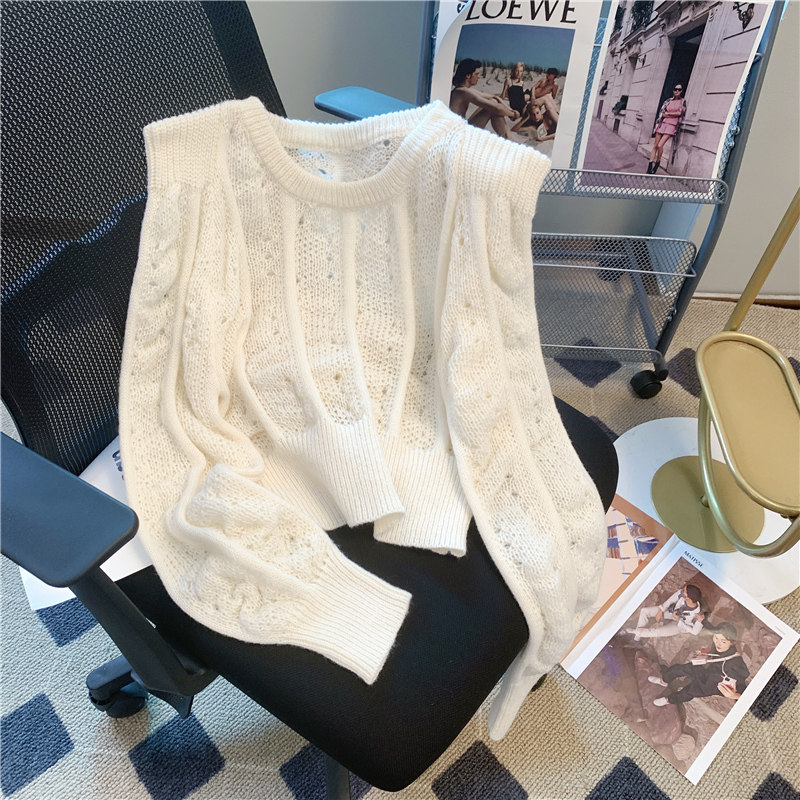 Белый дизайнерский свитер, демисезонное термобелье, короткие наплечники, трикотажный лонгслив, тренд сезона, свободный крой, подходит для подростков