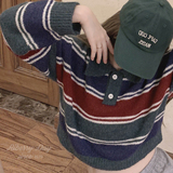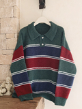 Шерстяной японский ретро свитер, воротник поло, свободный крой