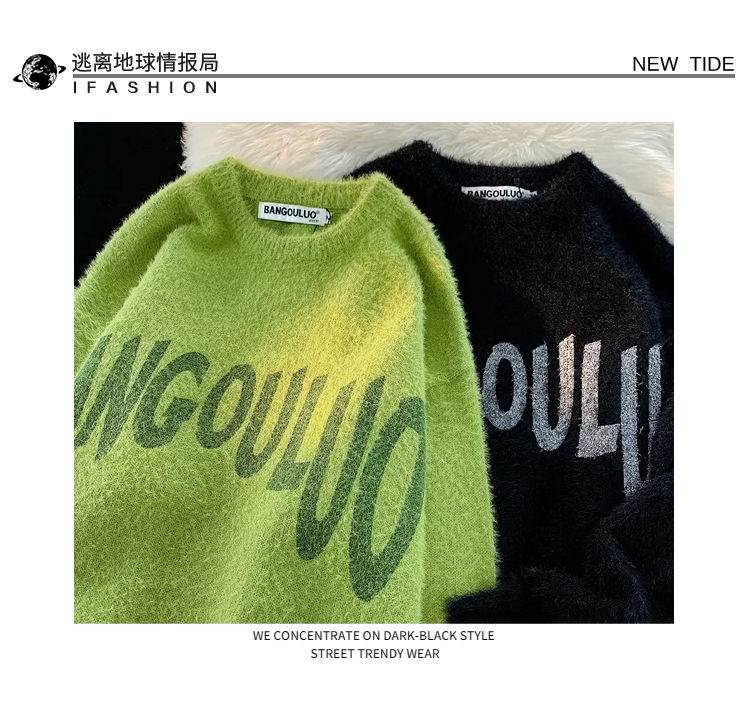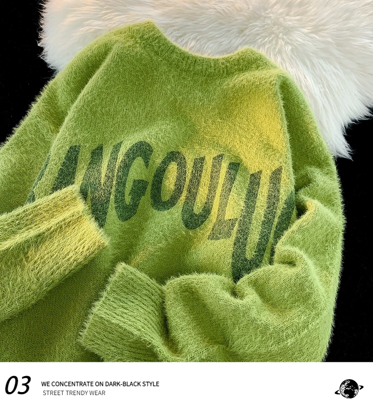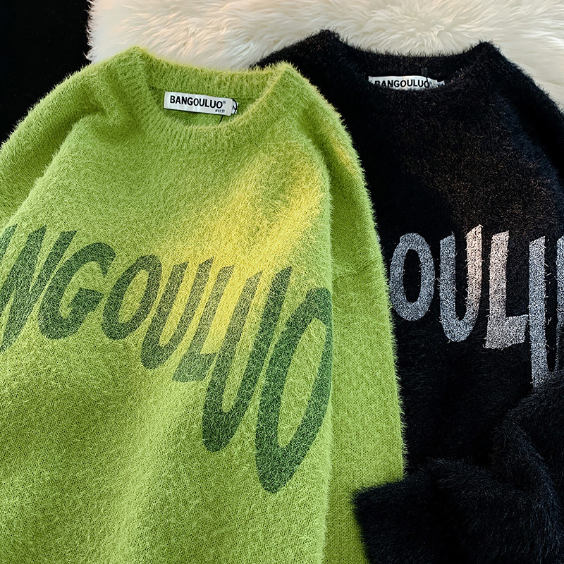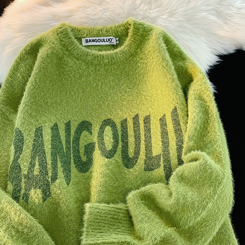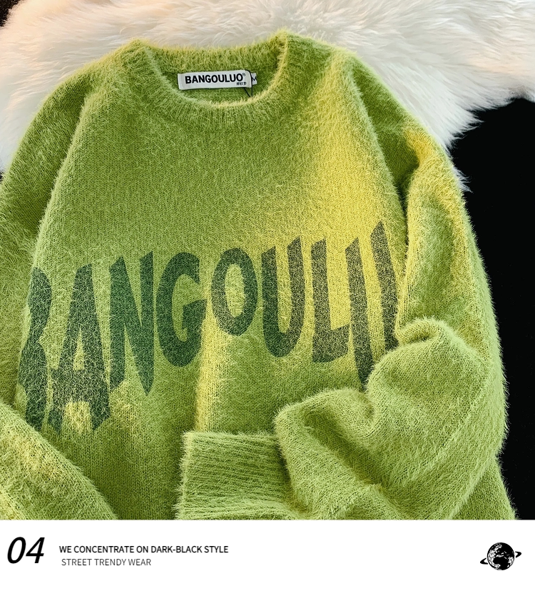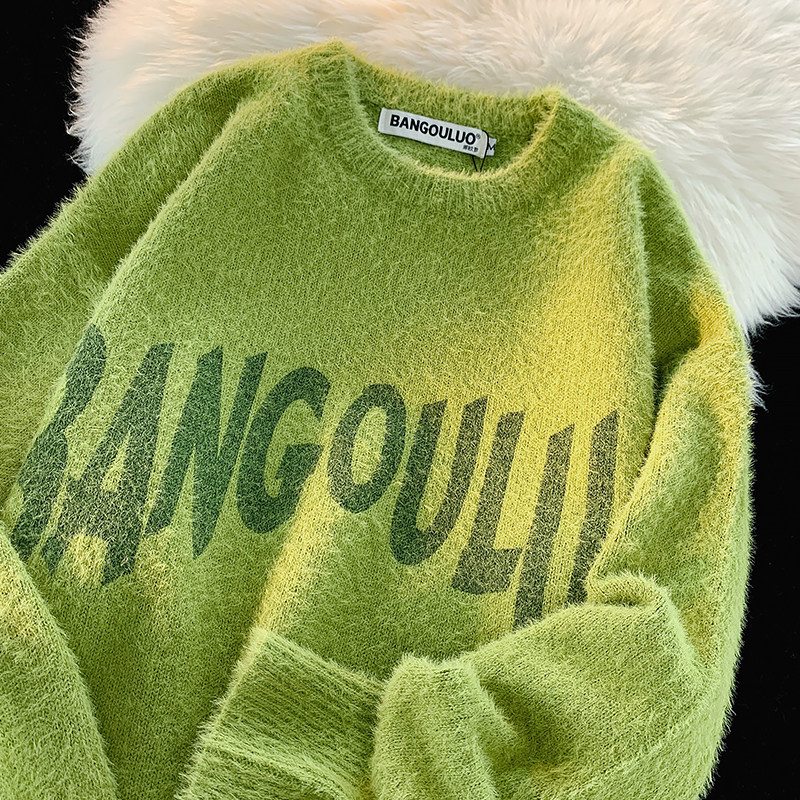 Японский ретро демисезонный трикотажный свитер, оверсайз, для влюбленных
