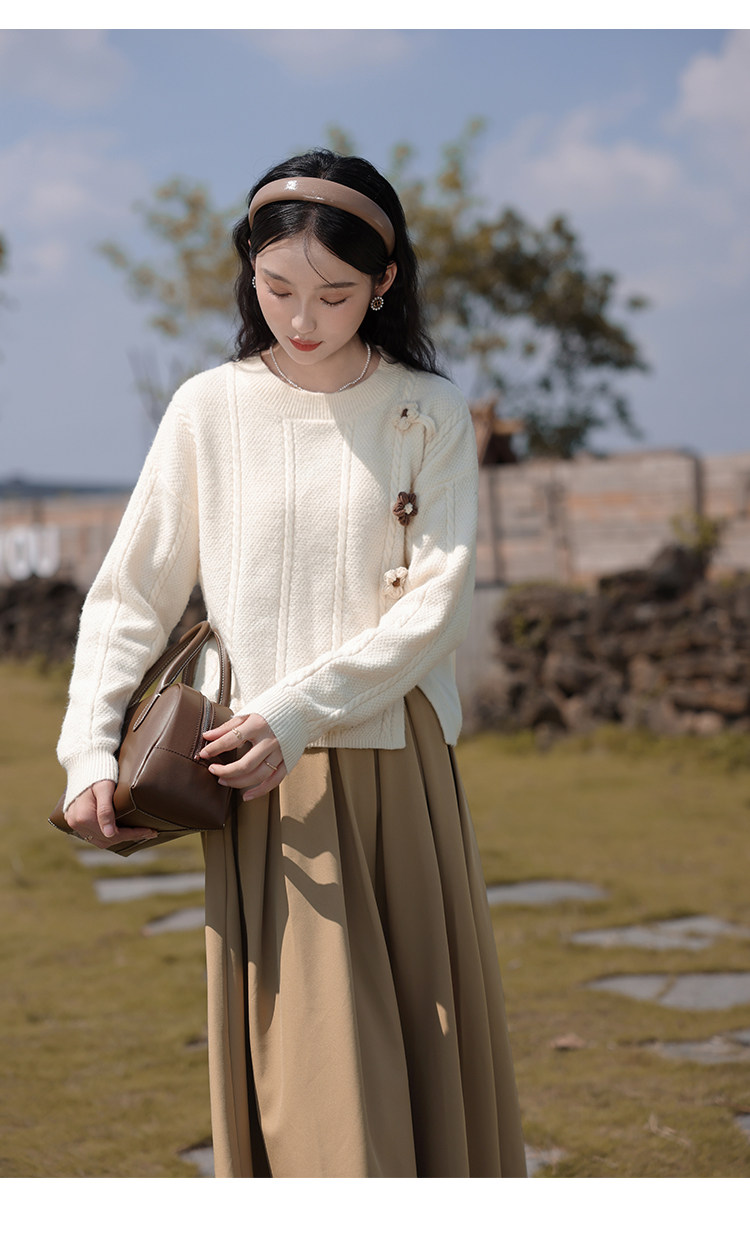 Осенний свитер с круглым воротником, коллекция 2023, облегающий крой