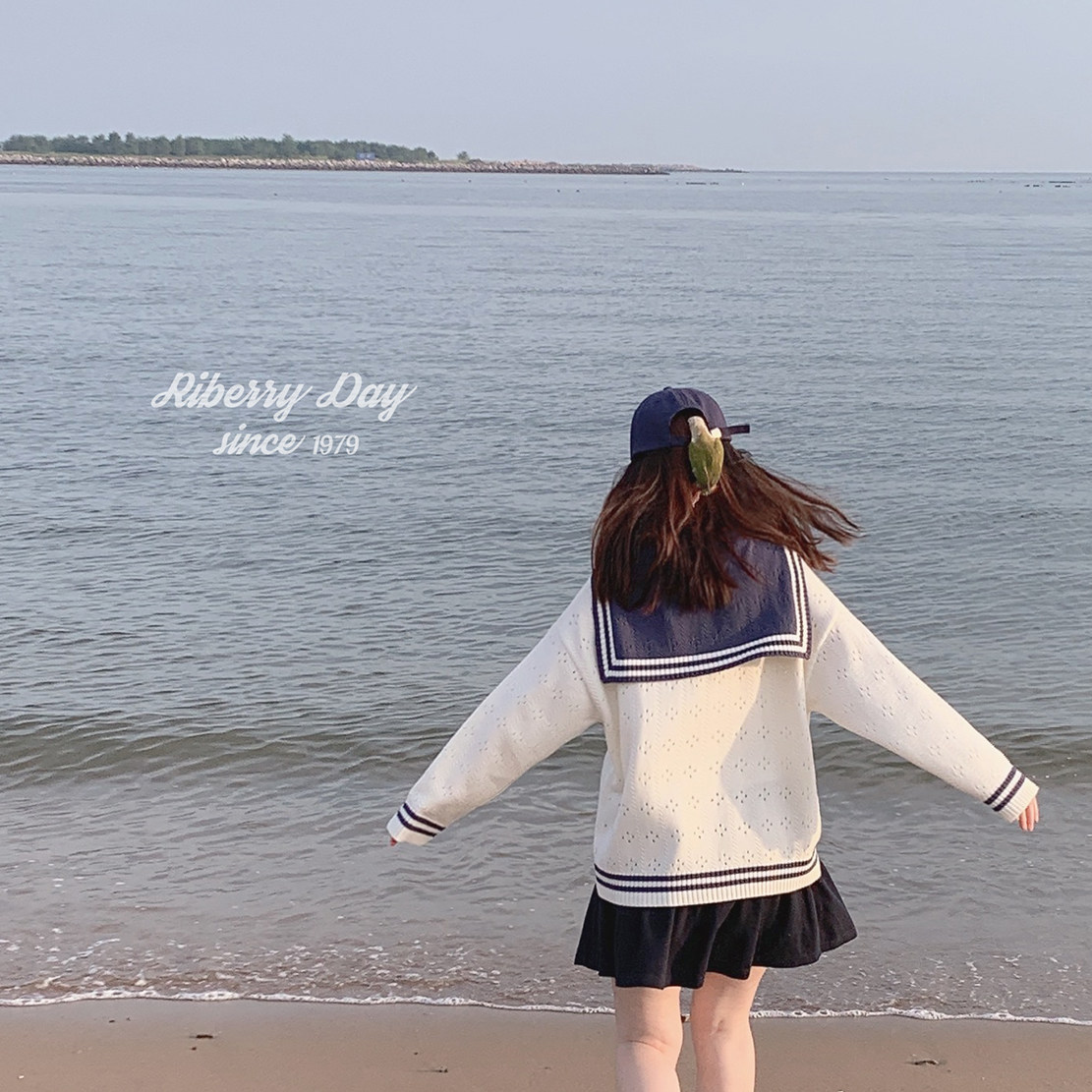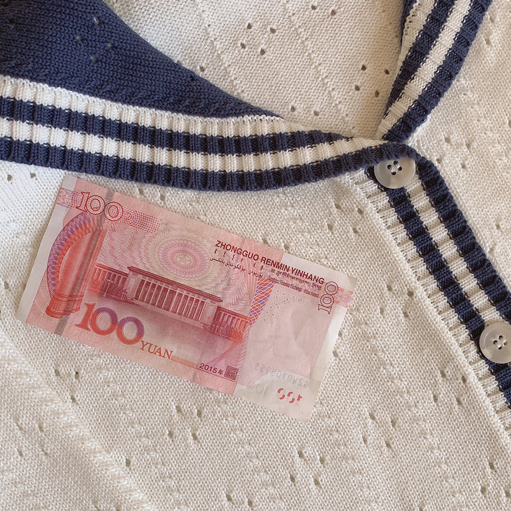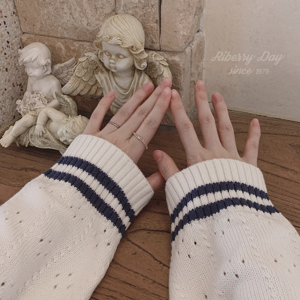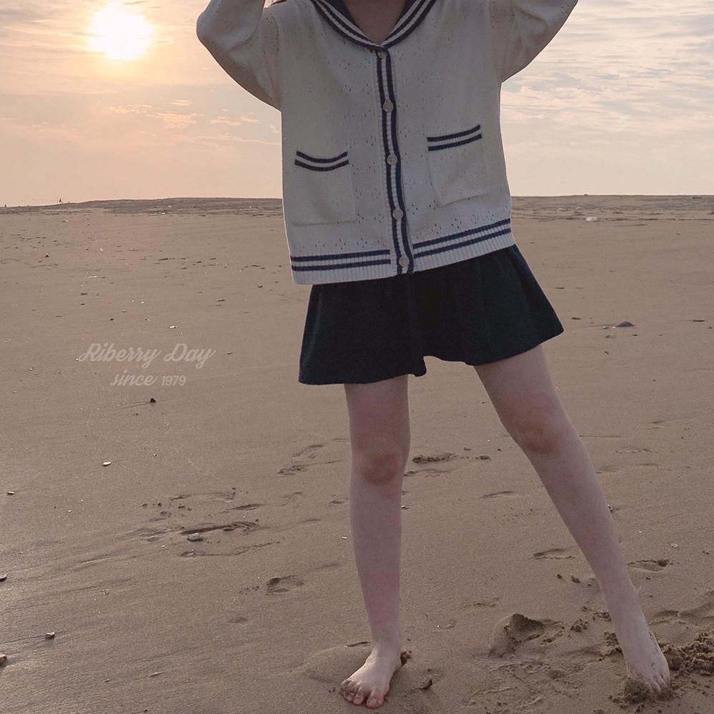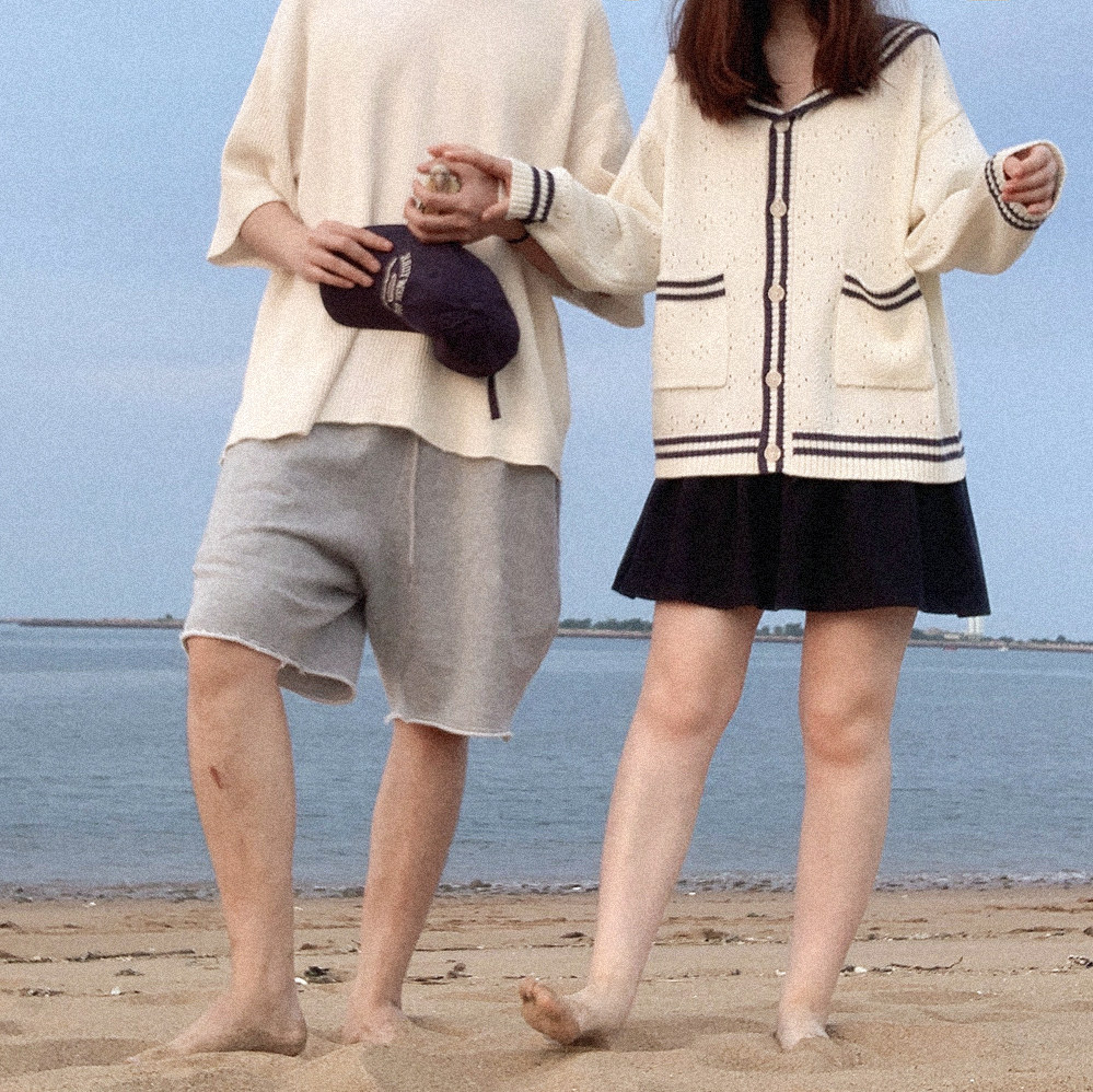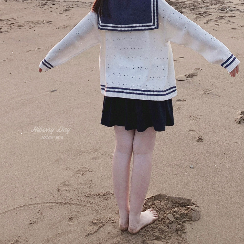 Ретро военно-морской белый трикотажный кардиган, свободный крой