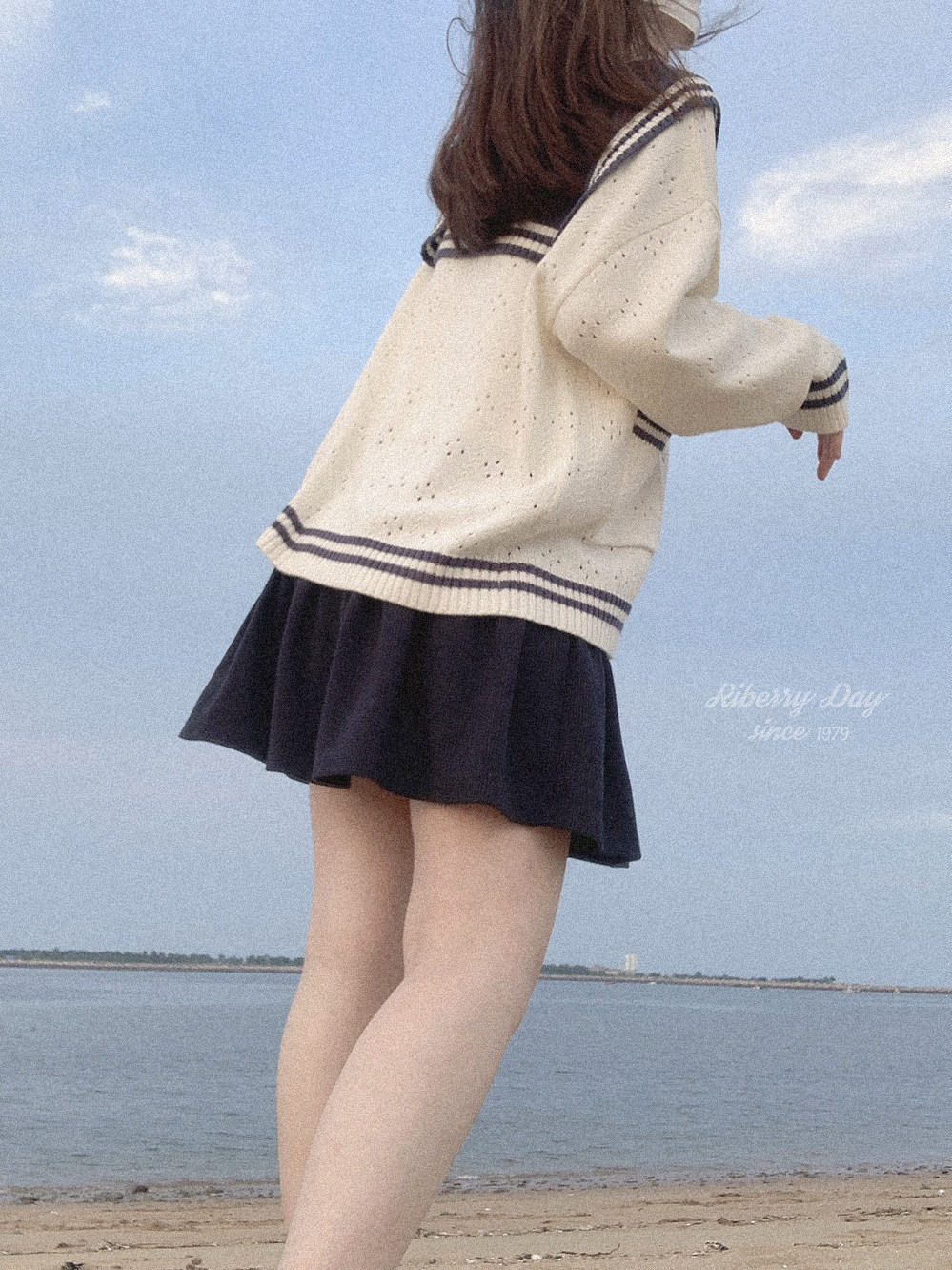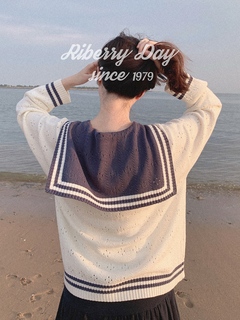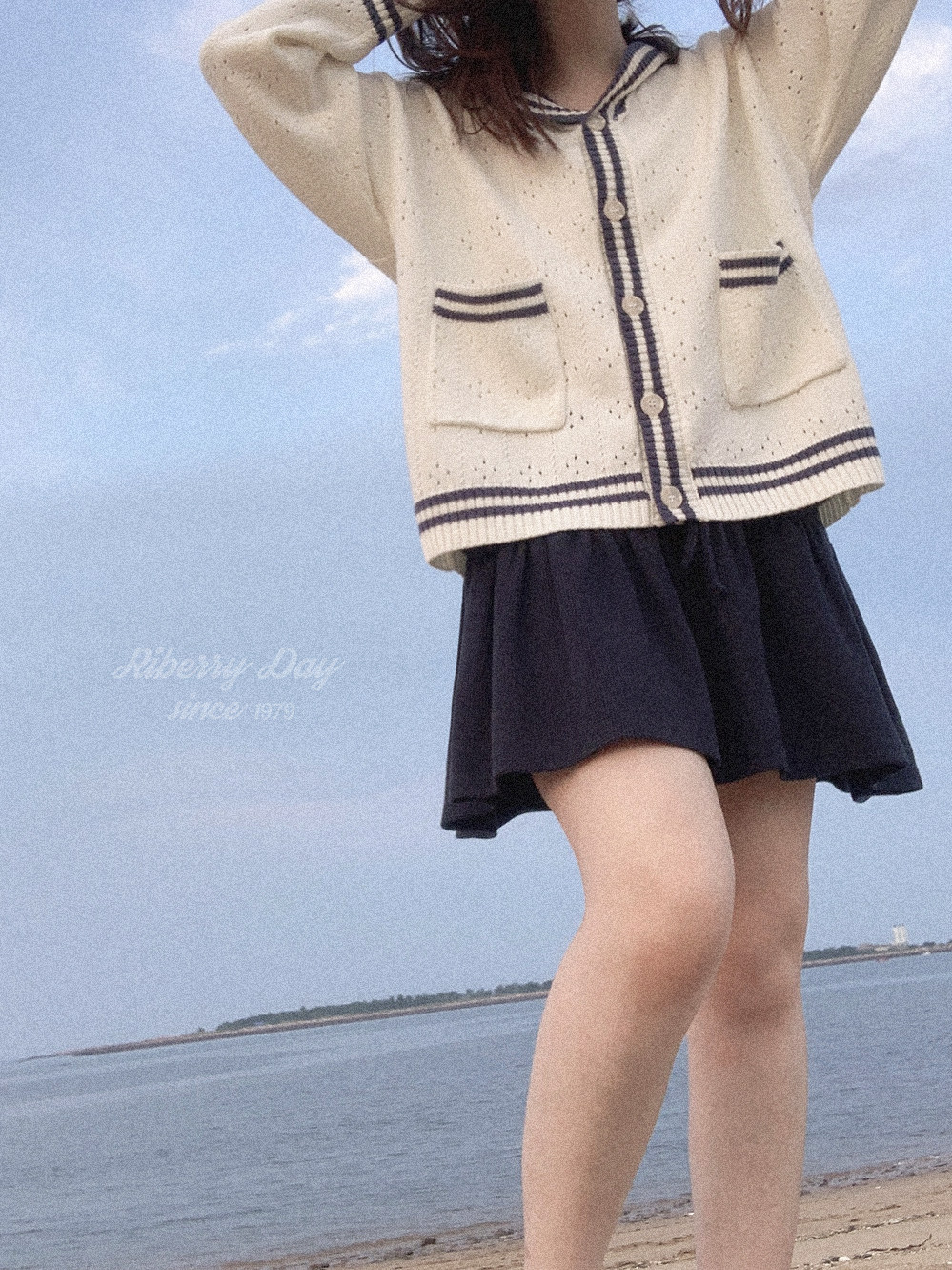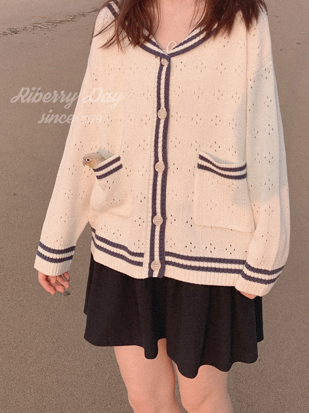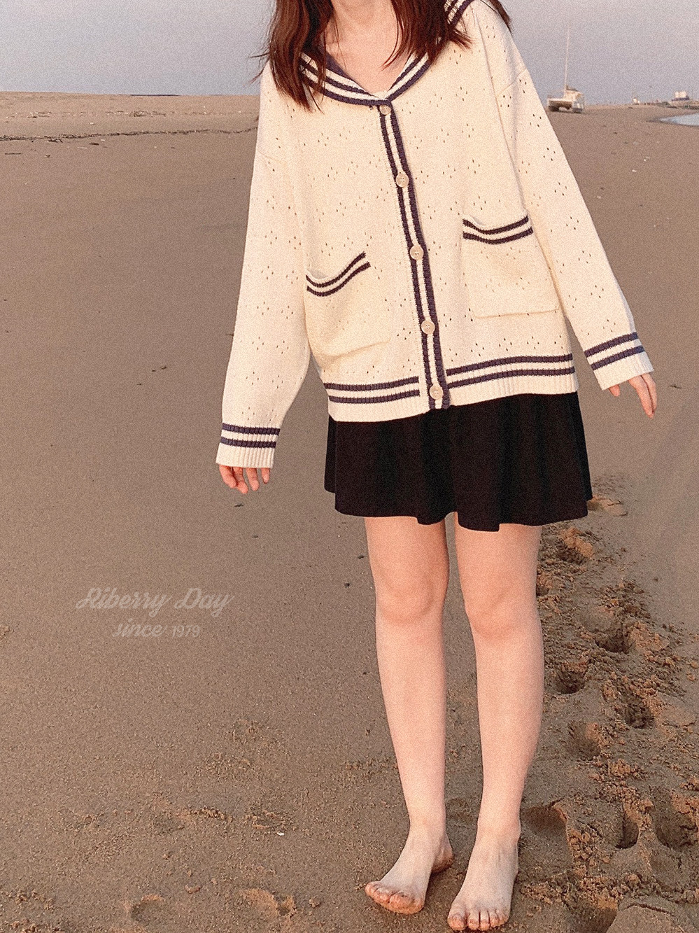 Ретро военно-морской белый трикотажный кардиган, свободный крой