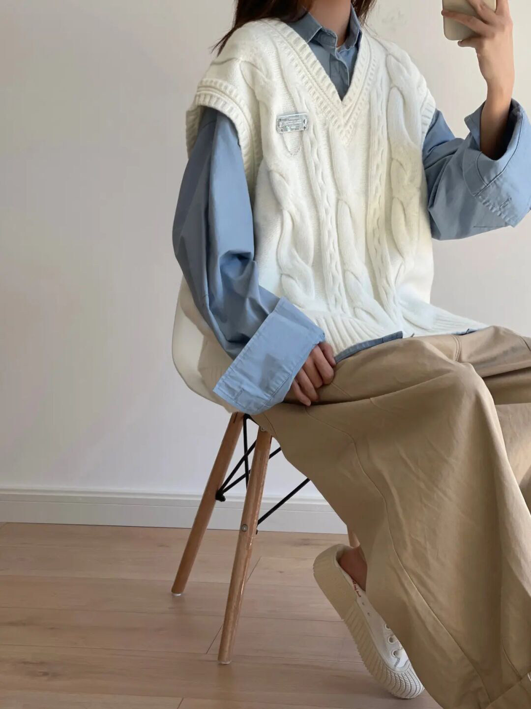 Трикотажный осенний жилет, тонкая небольшая майка топ, дизайнерская футболка без рукавов, V-образный вырез, изысканный стиль