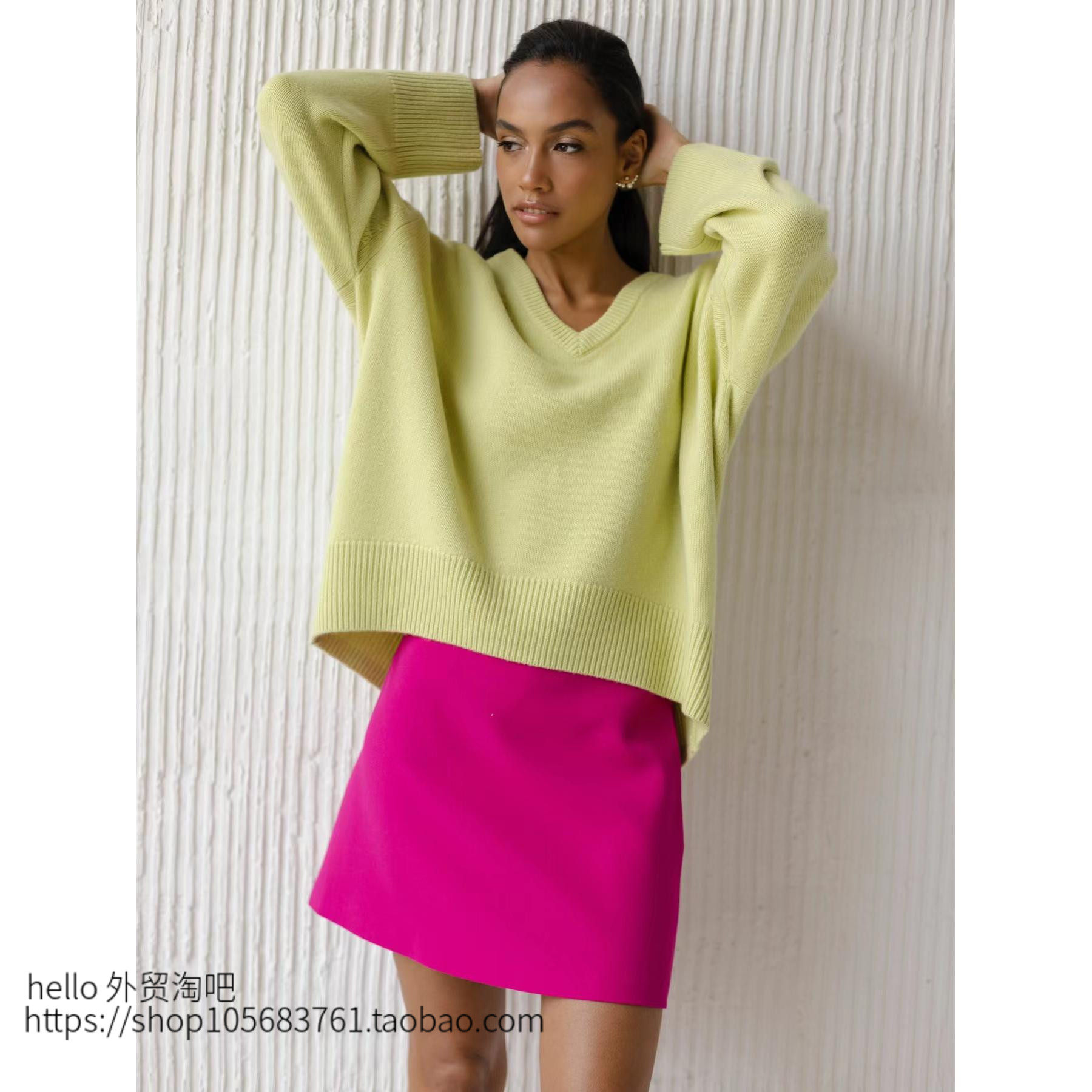 Осень и зима INS Интернет-знаменитость V-образный выстрел свободный свитер с длинными рукавами.