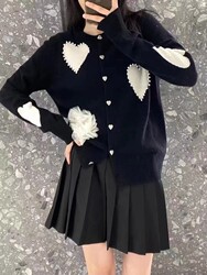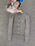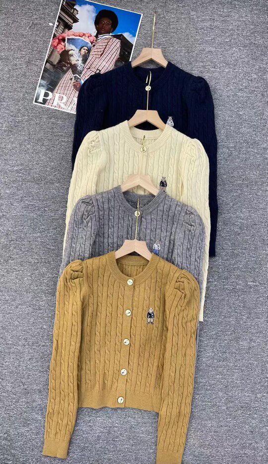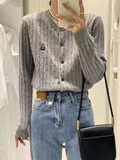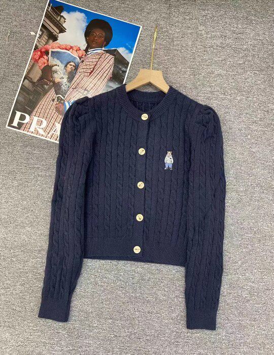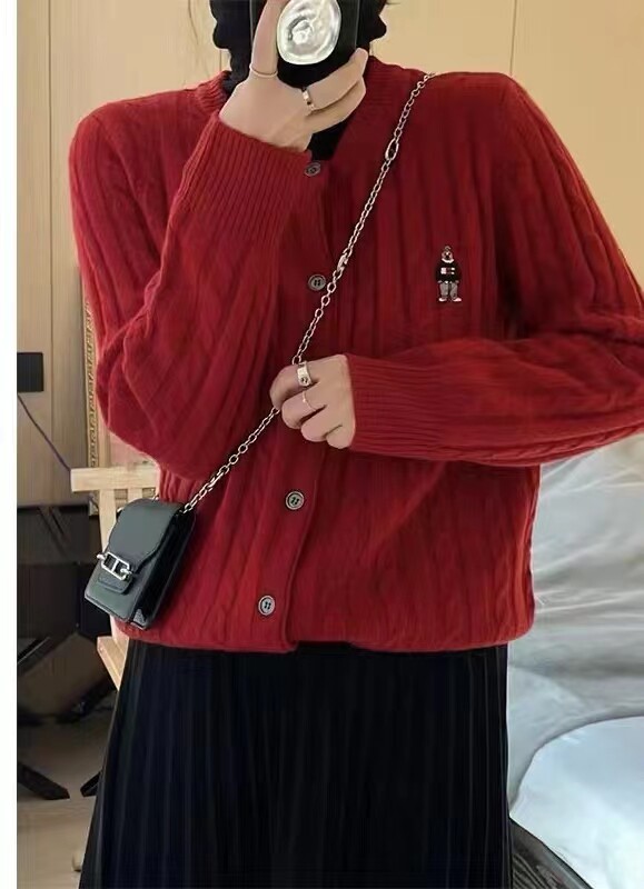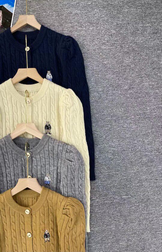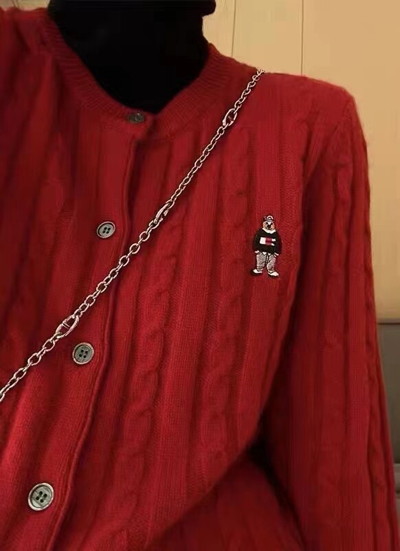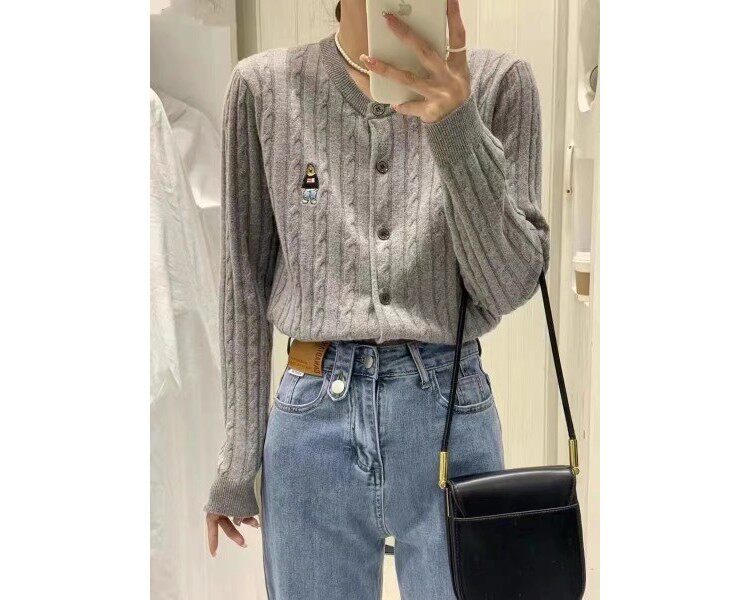 Модный трикотажный демисезонный кардиган с круглым воротником, европейский стиль, с медвежатами, с вышивкой, оверсайз
