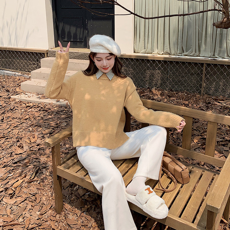 Демисезонный трикотажный свитер, в корейском стиле, свободный крой