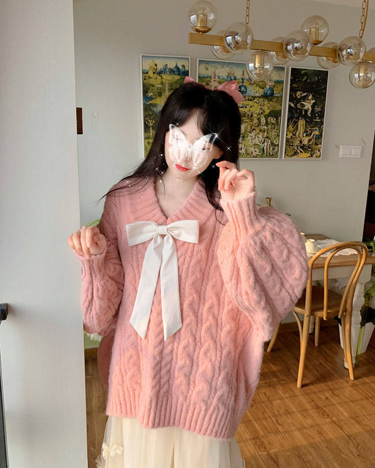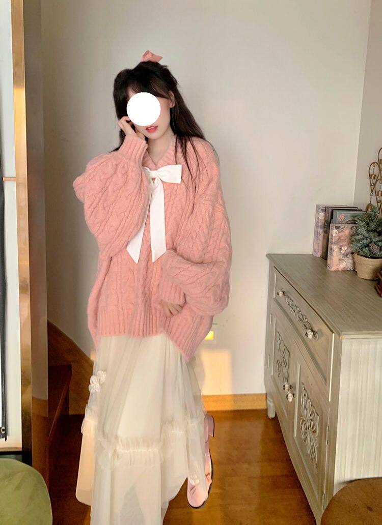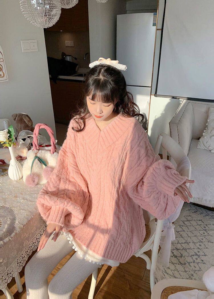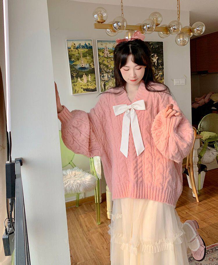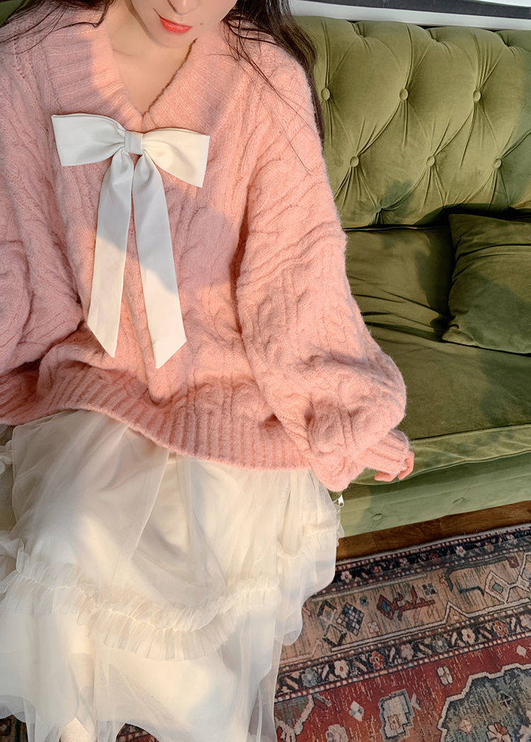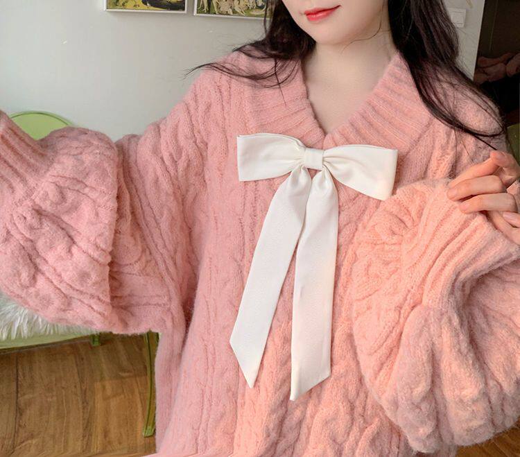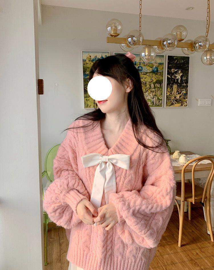 Розовый свитер, демисезонная трикотажная куртка, коллекция 2022, свободный крой, V-образный вырез, изысканный стиль
