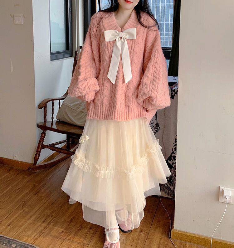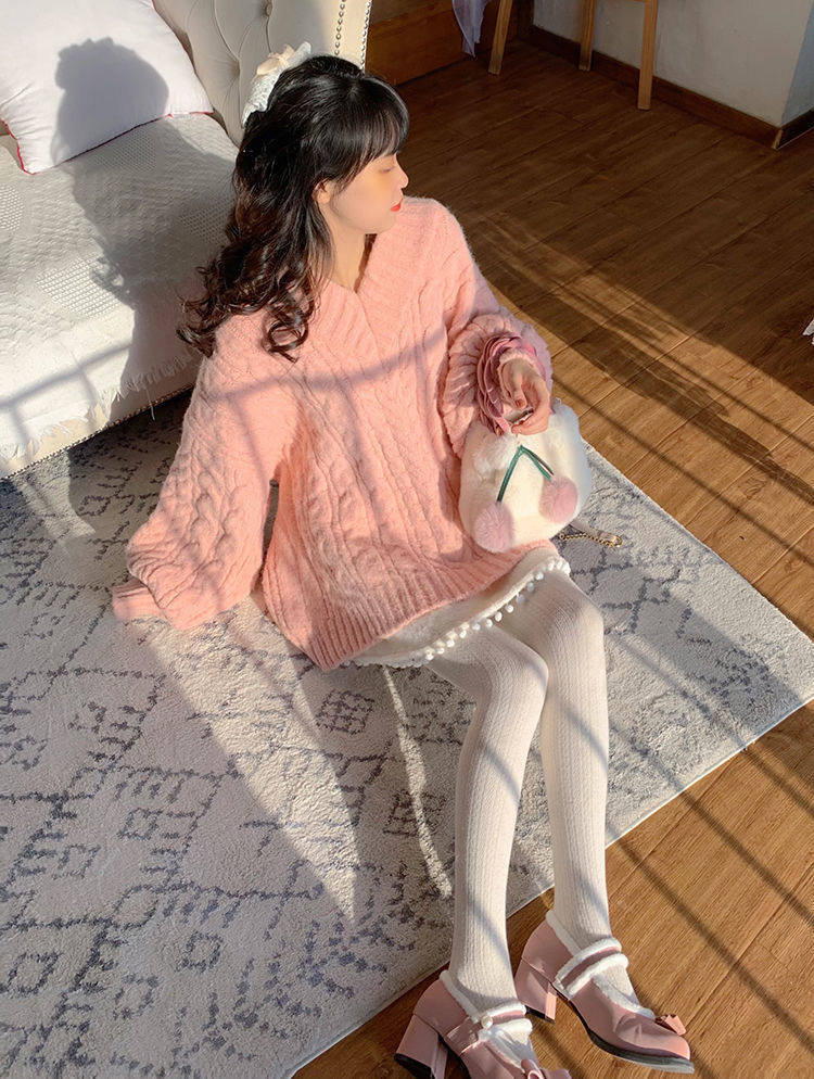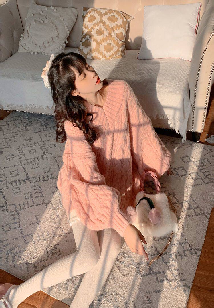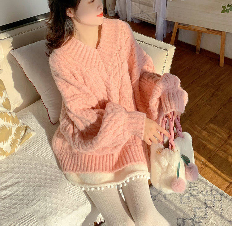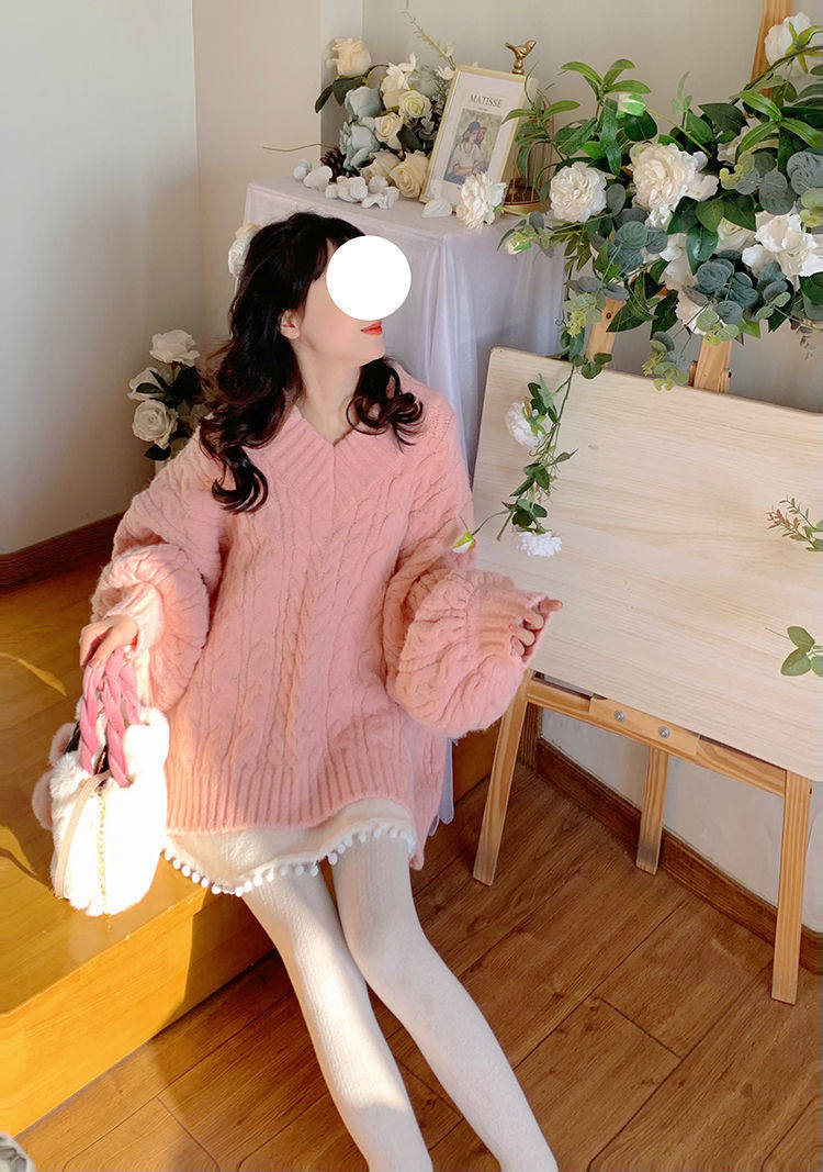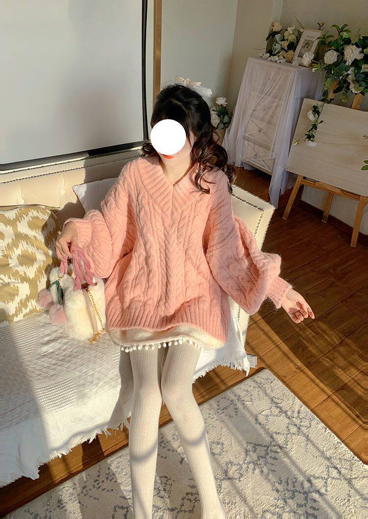 Розовый свитер, демисезонная трикотажная куртка, коллекция 2022, свободный крой, V-образный вырез, изысканный стиль