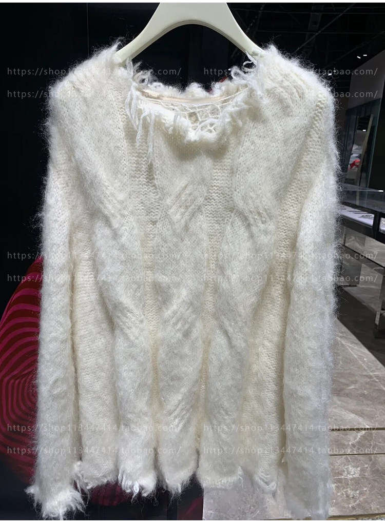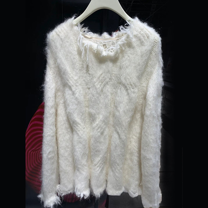Лиманер ниша 24 осень и зима Новый ленивый темперамент нежный стиль белый разорванный сырой свитер мохера