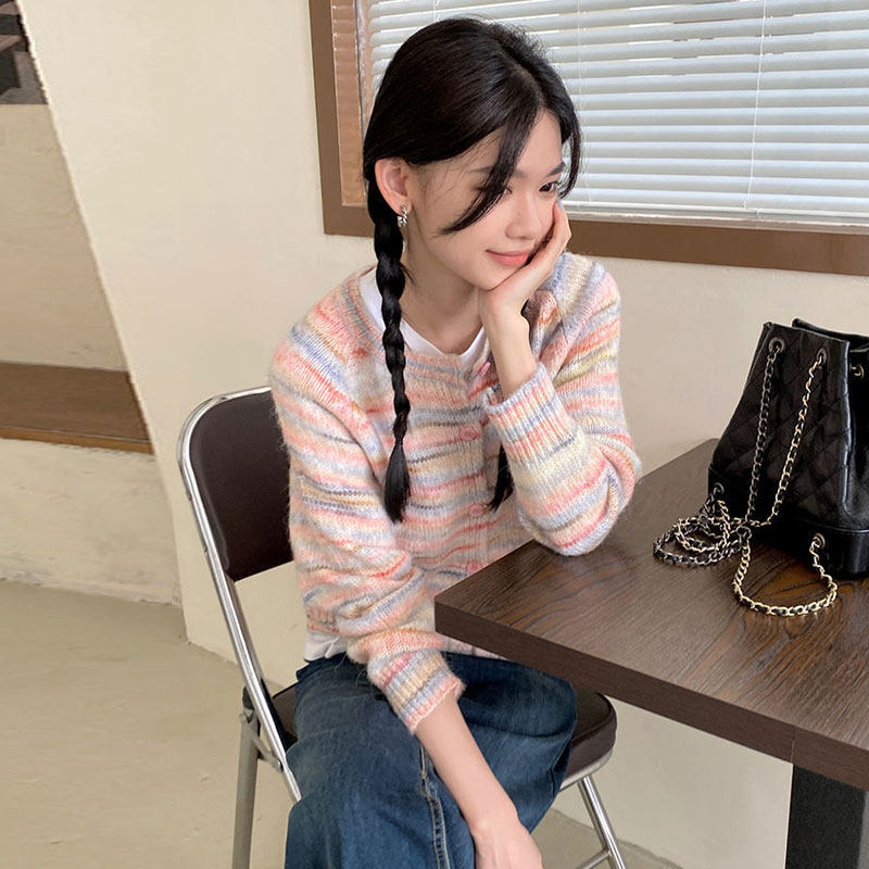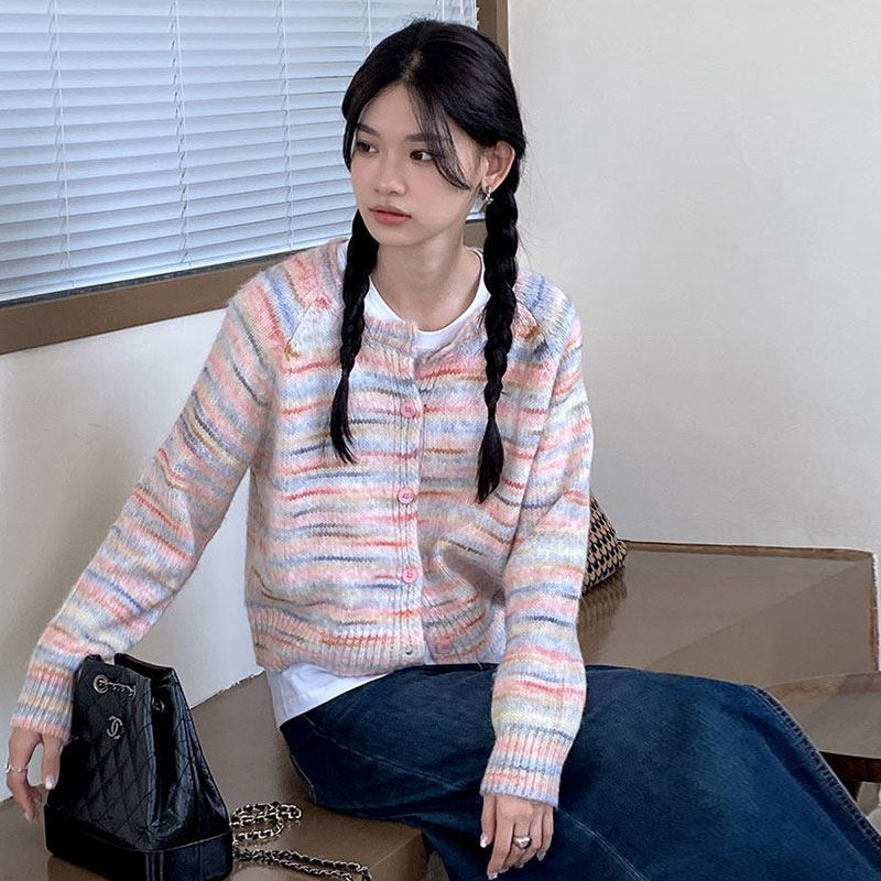 Розовый свитер, дизайнерский трикотажный кардиган с круглым воротником, тренд сезона, свободный крой