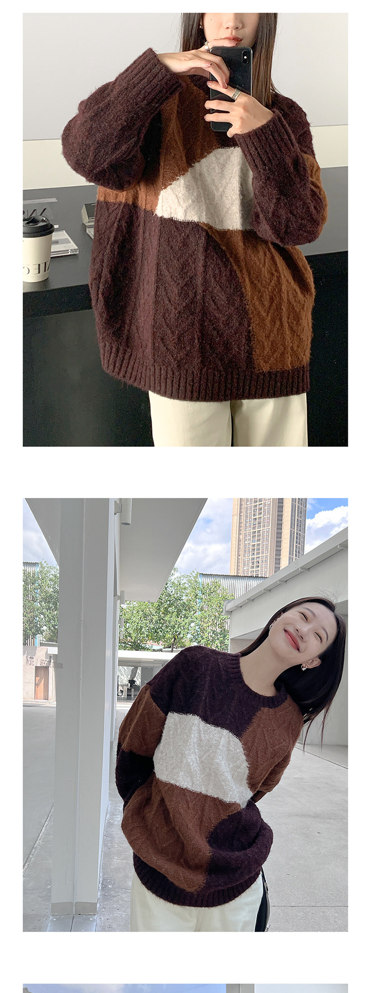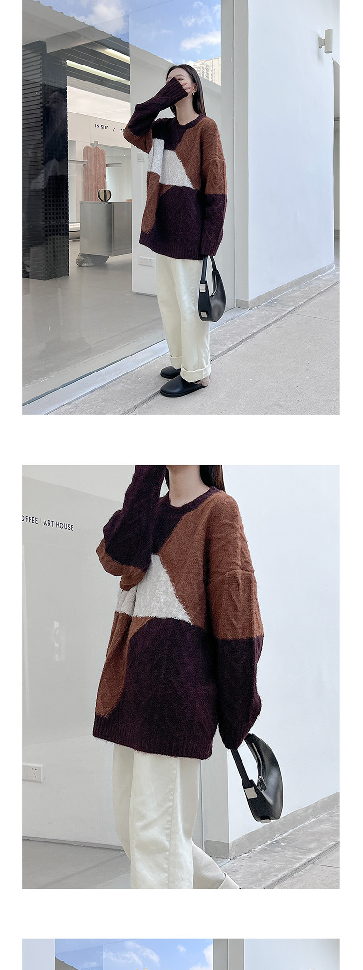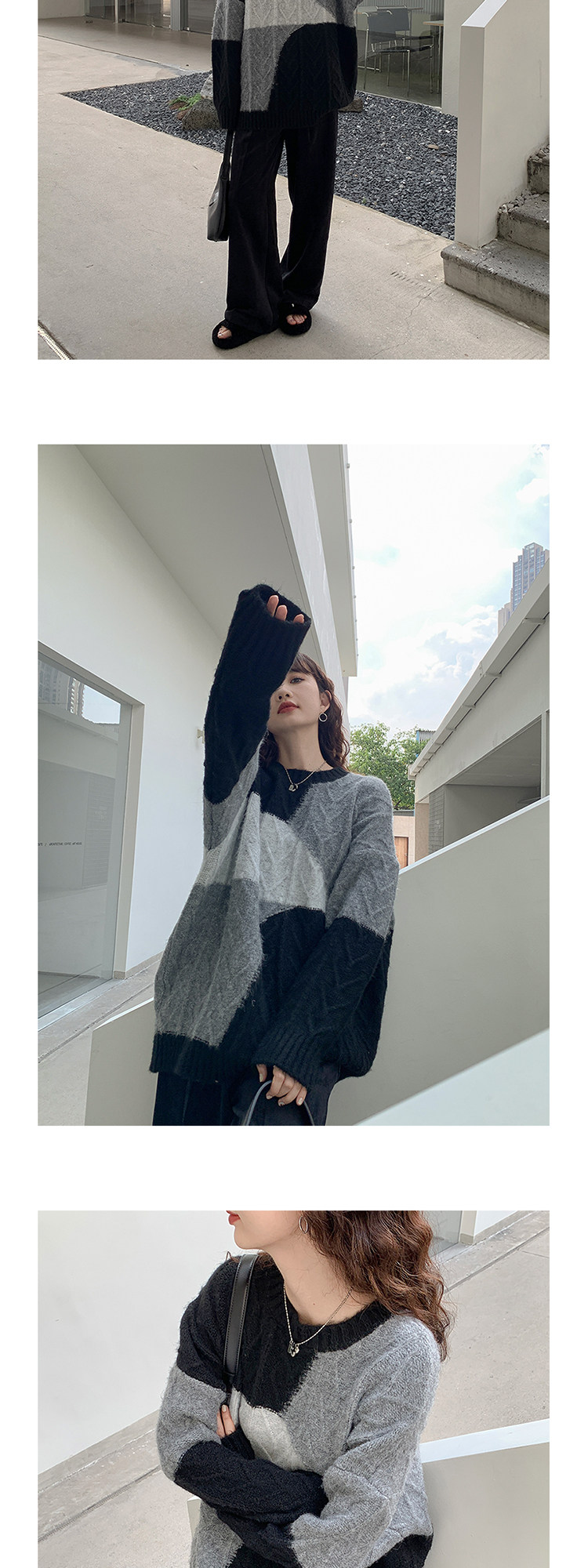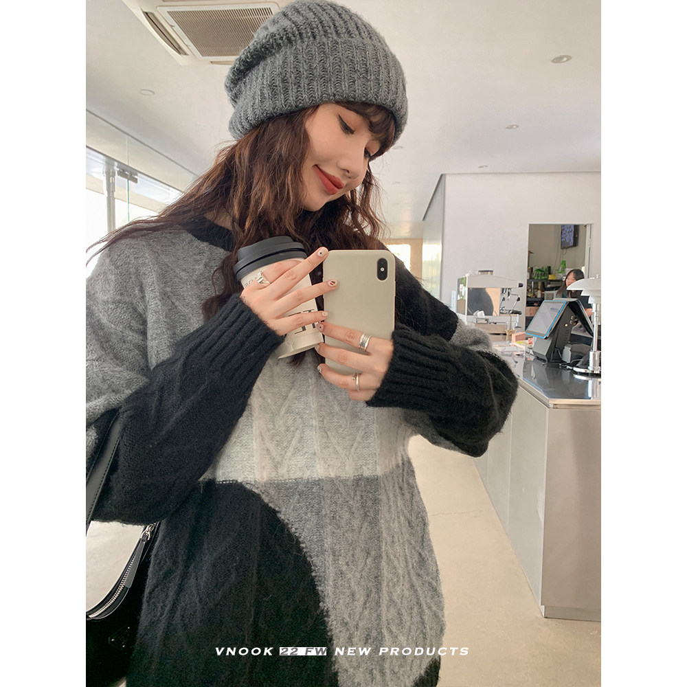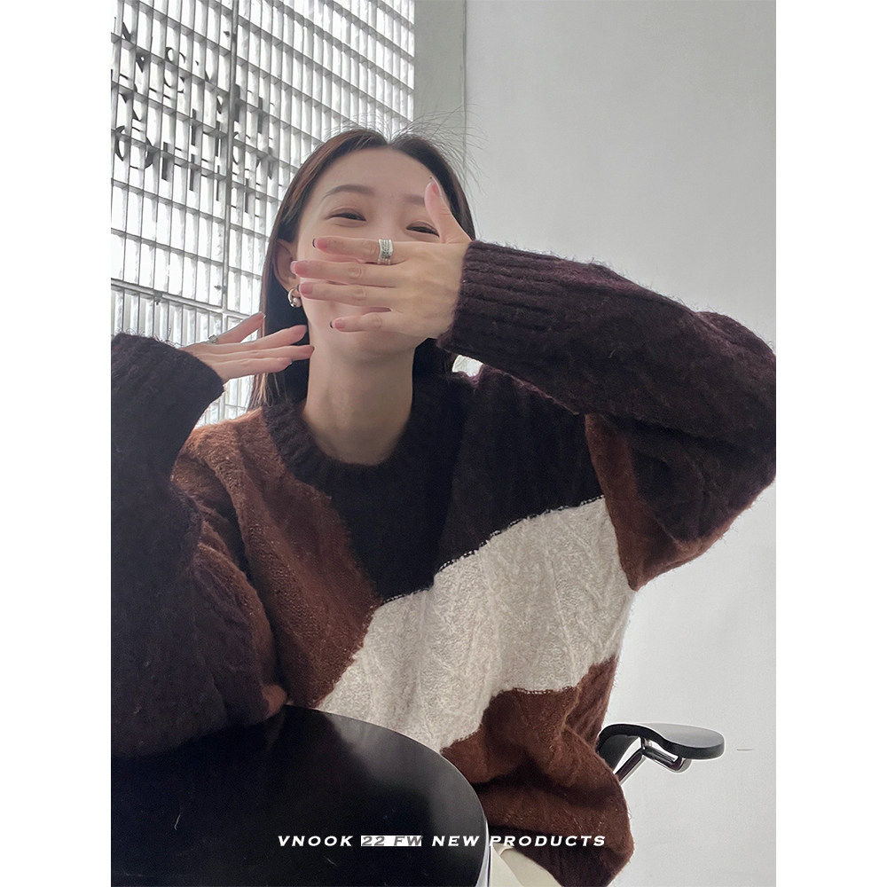 VNOOK нерегулярный свитер контрастного цвета, женский новый ленивый стильный дизайн, свободный нежный топ с круглым вырезом, осень и зима