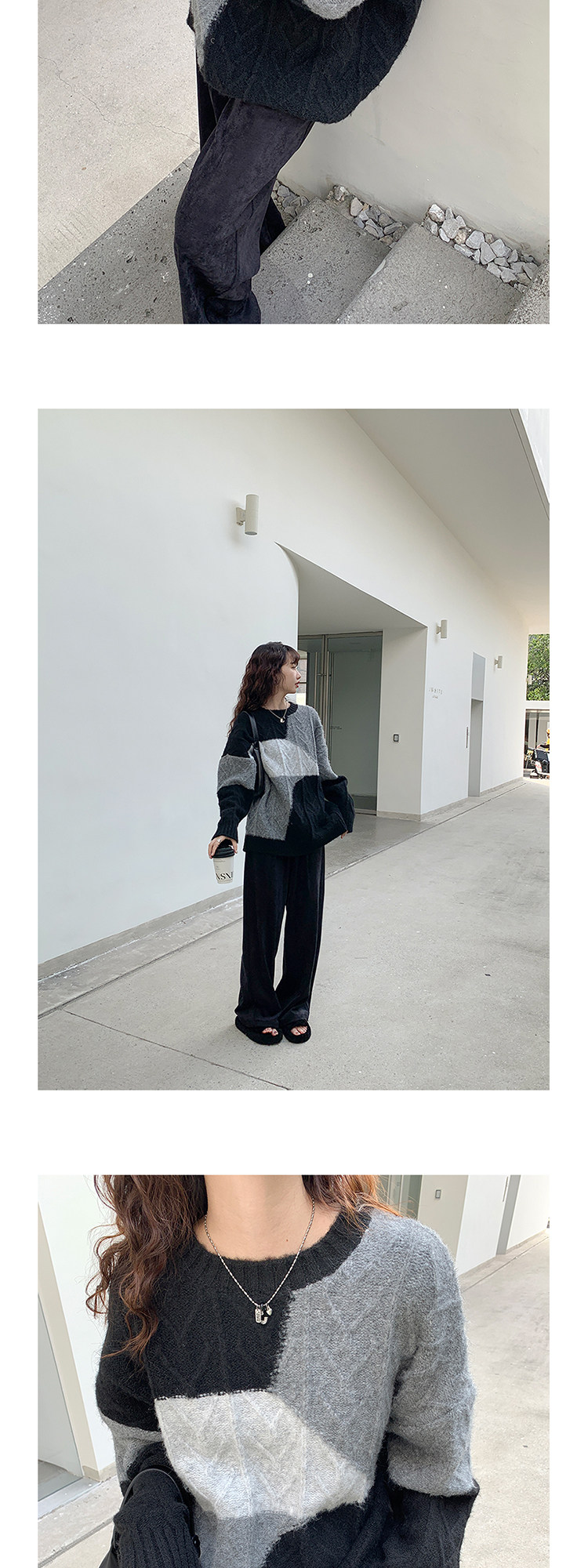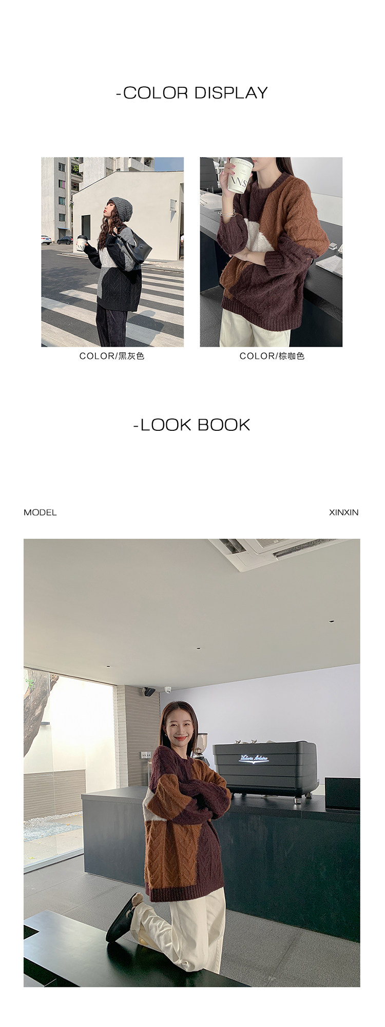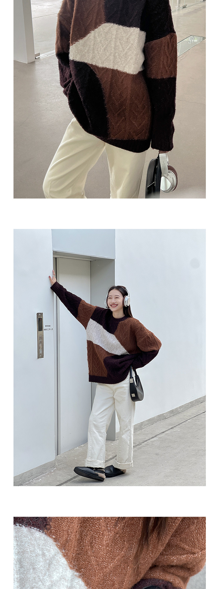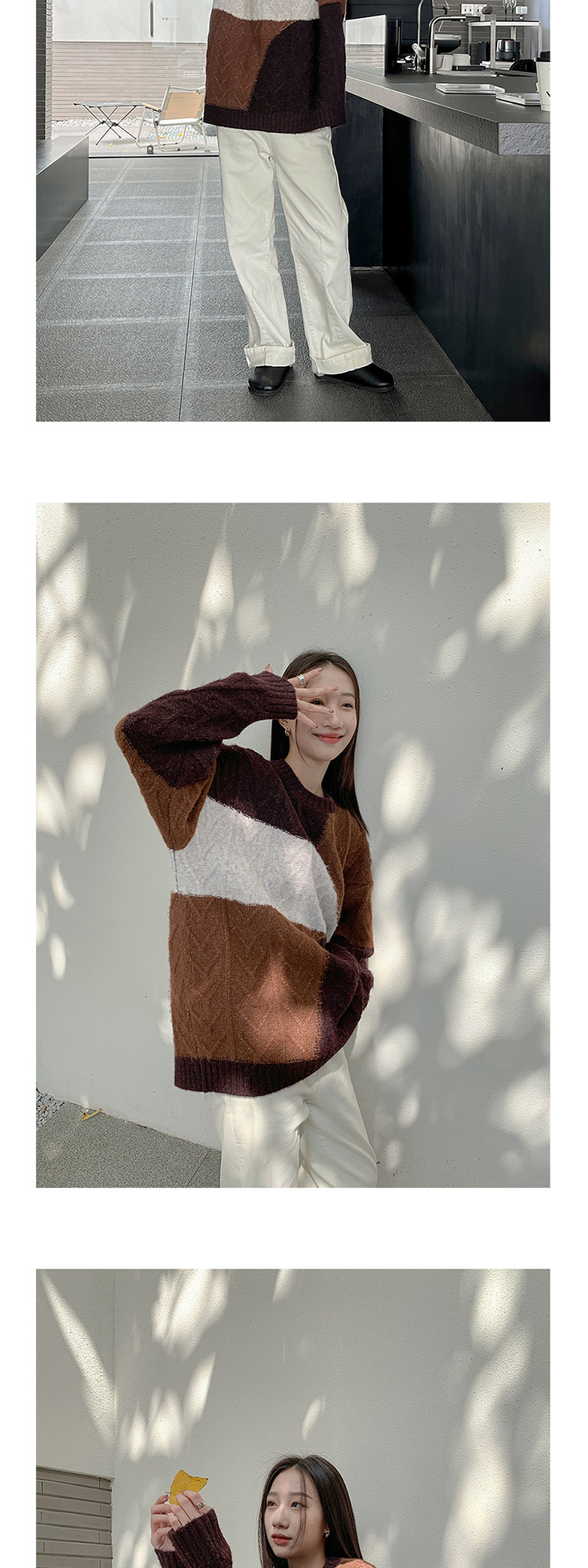 VNOOK нерегулярный свитер контрастного цвета, женский новый ленивый стильный дизайн, свободный нежный топ с круглым вырезом, осень и зима