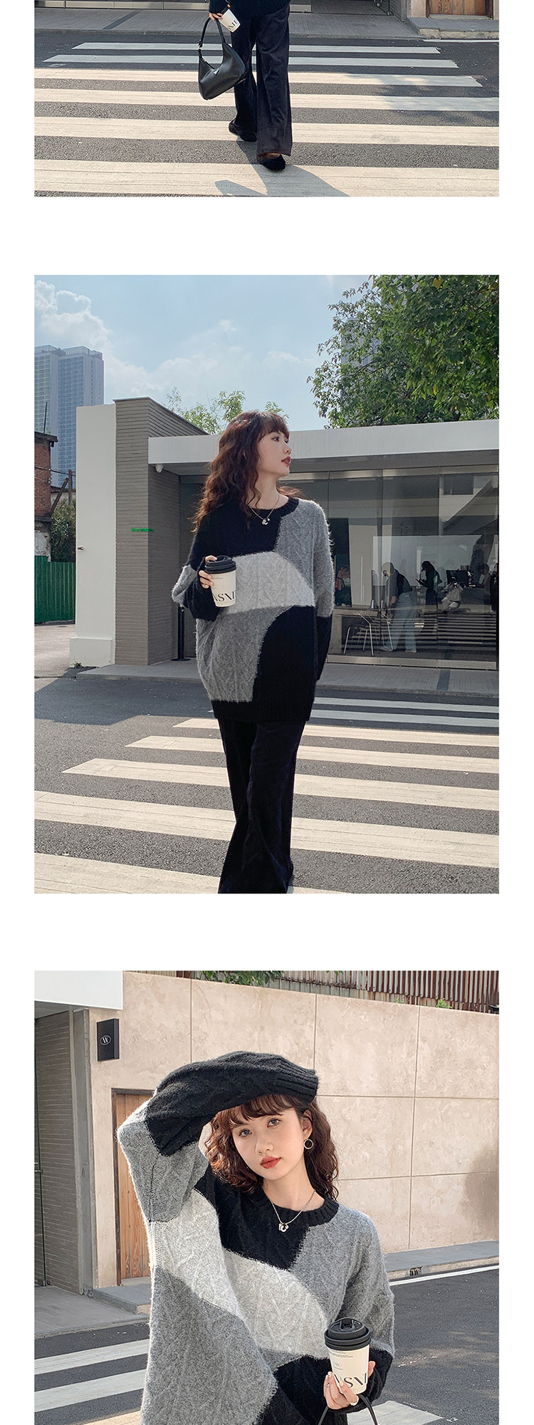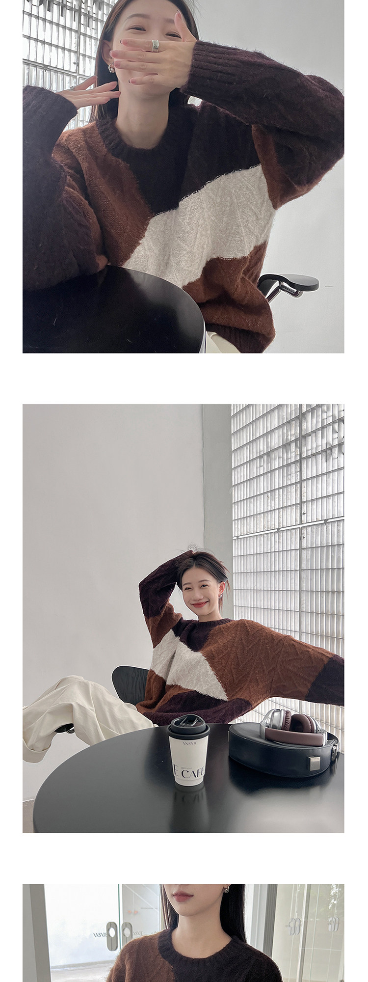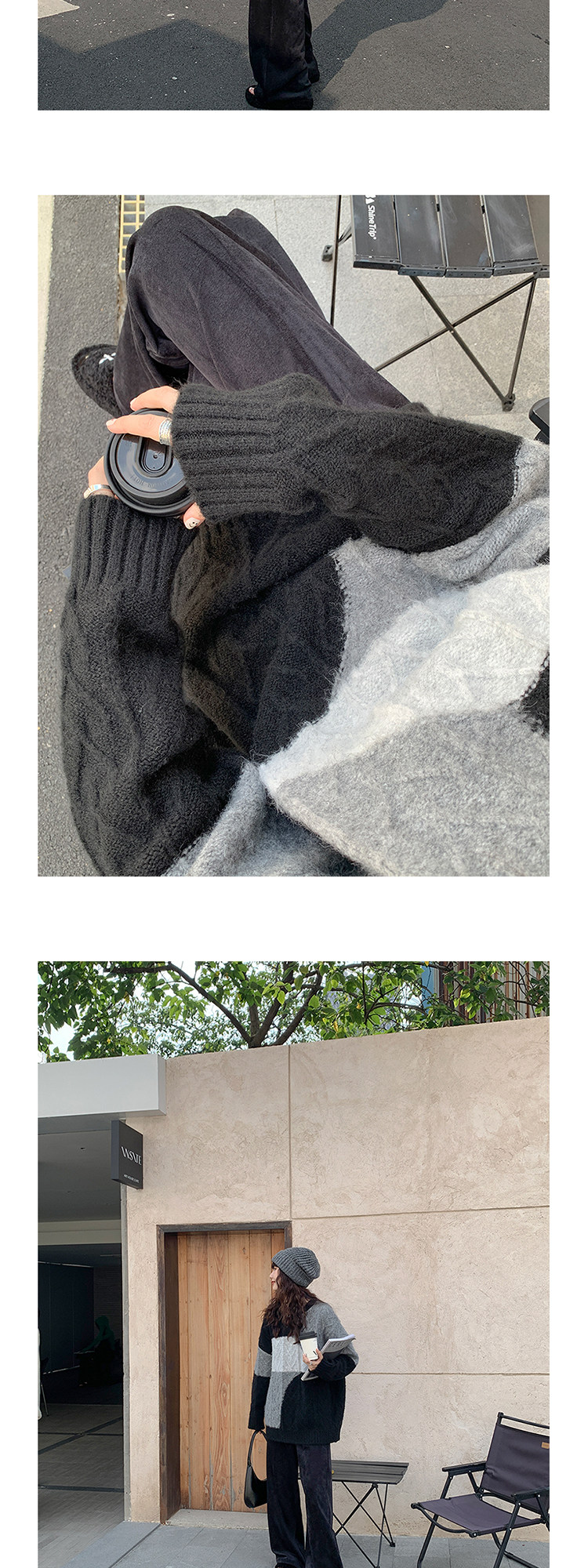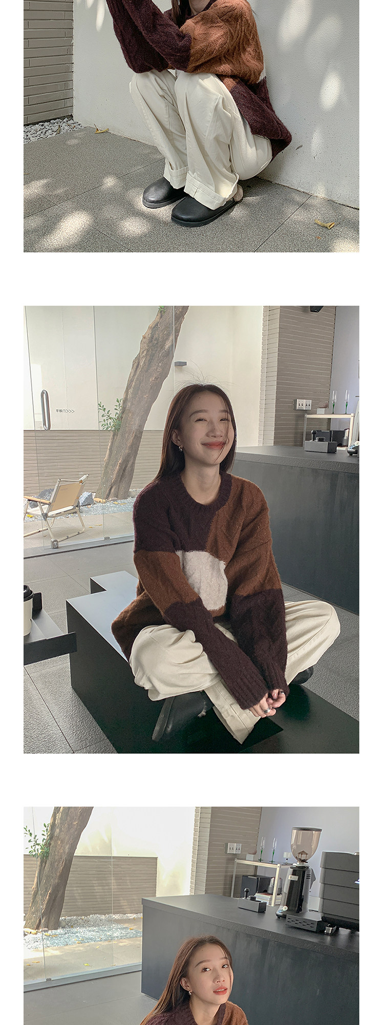 VNOOK нерегулярный свитер контрастного цвета, женский новый ленивый стильный дизайн, свободный нежный топ с круглым вырезом, осень и зима