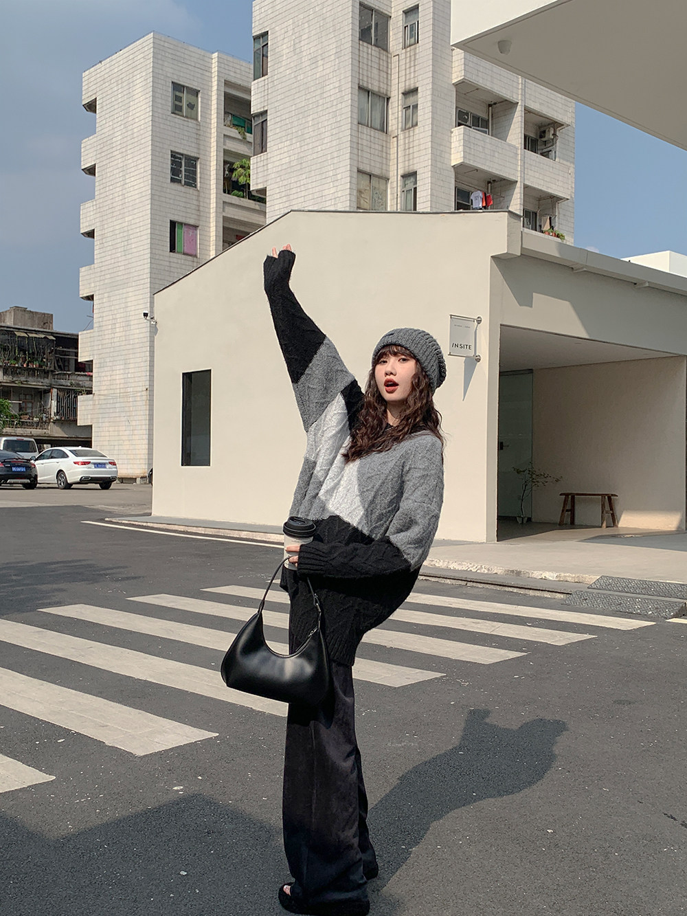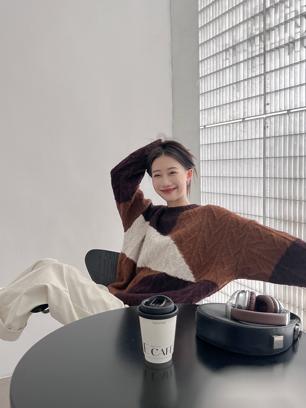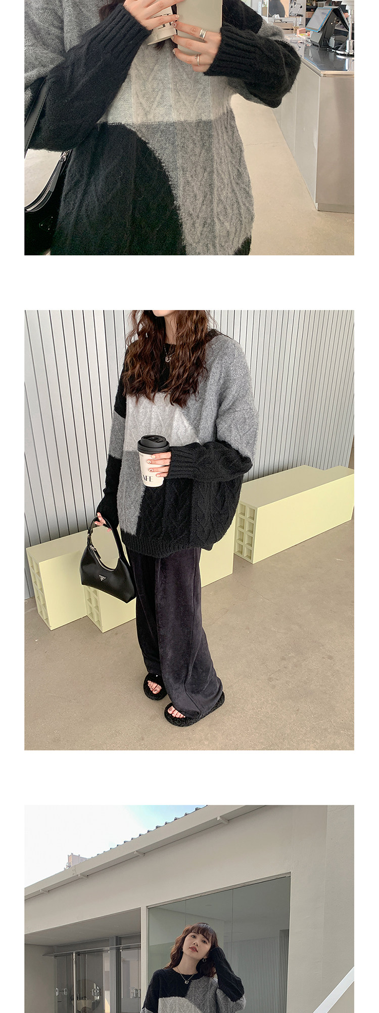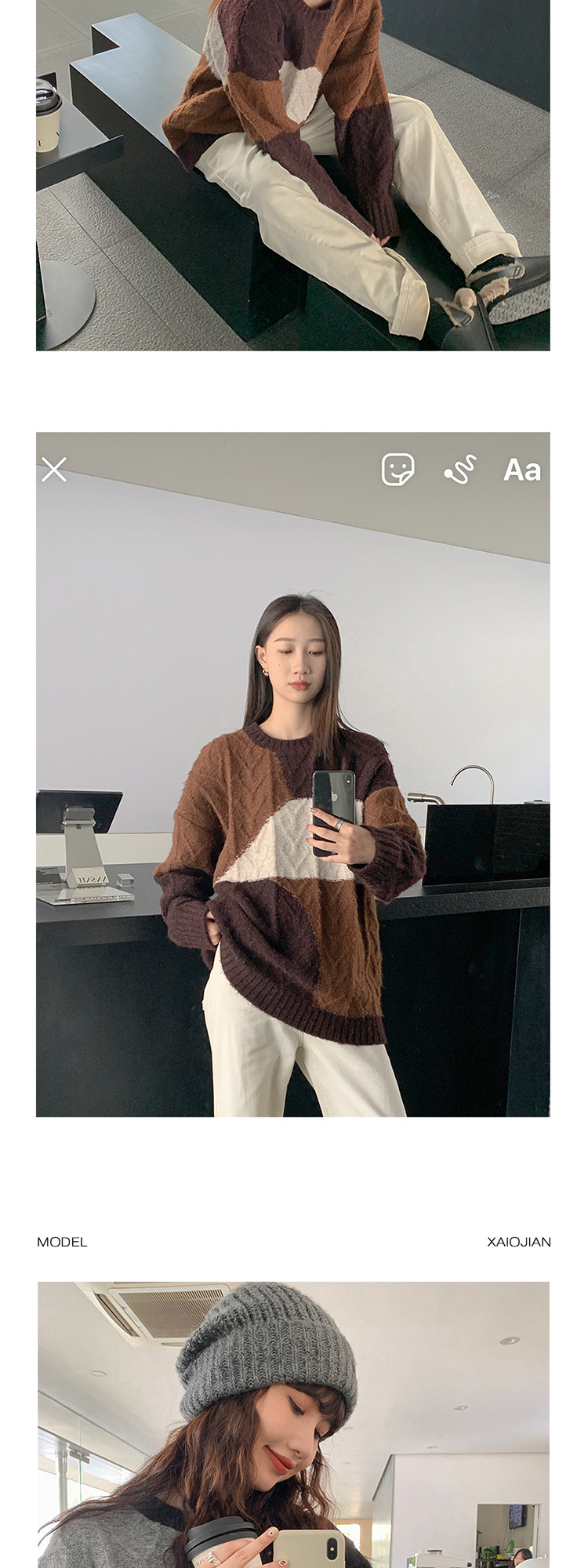 VNOOK нерегулярный свитер контрастного цвета, женский новый ленивый стильный дизайн, свободный нежный топ с круглым вырезом, осень и зима