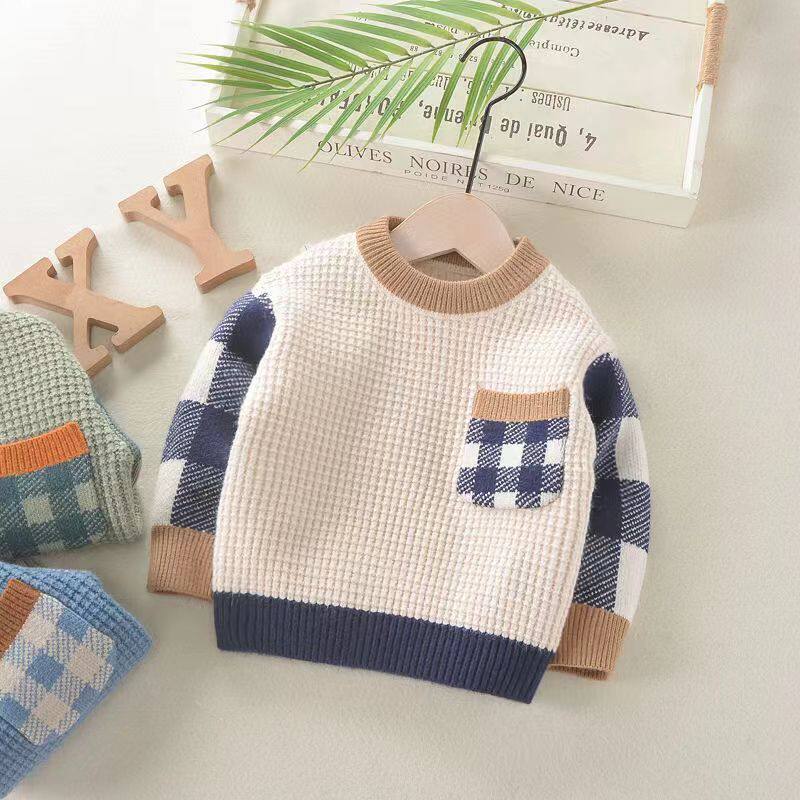 Демисезонный трикотажный детский свитер для мальчиков, коллекция 2023, в западном стиле, в корейском стиле