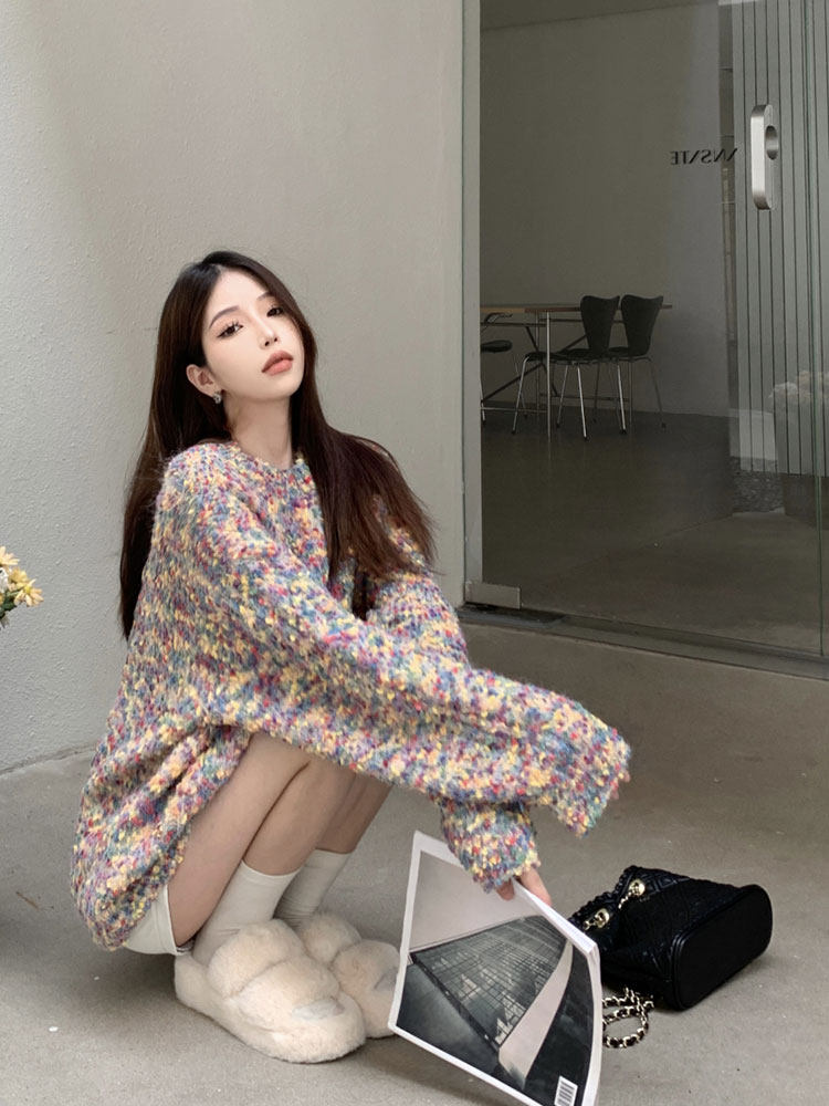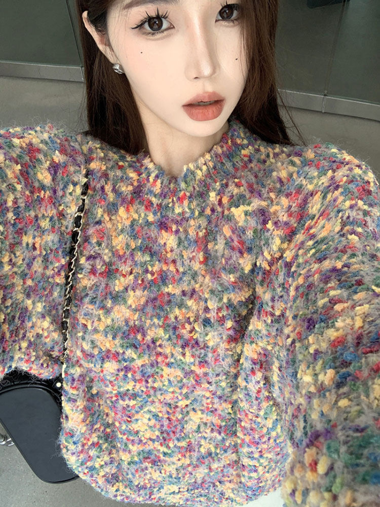 Ретро демисезонный свитер, дизайнерский трикотажный лонгслив, свободный крой, тренд сезона
