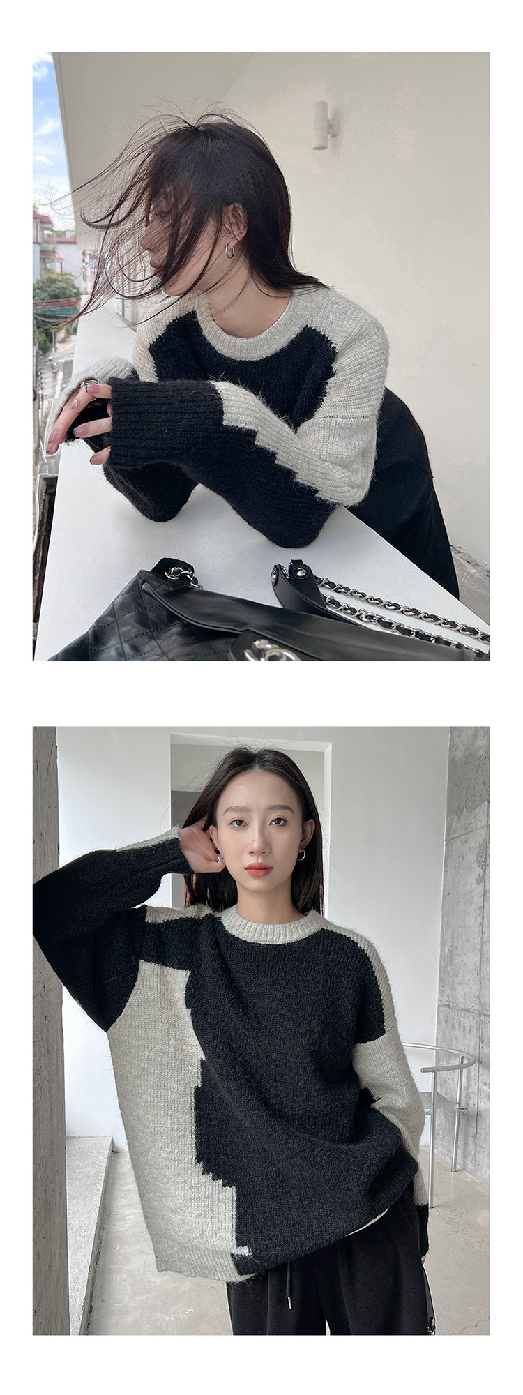 Цветной демисезонный небольшой дизайнерский шерстяной свитер, увеличенная толщина, тренд сезона